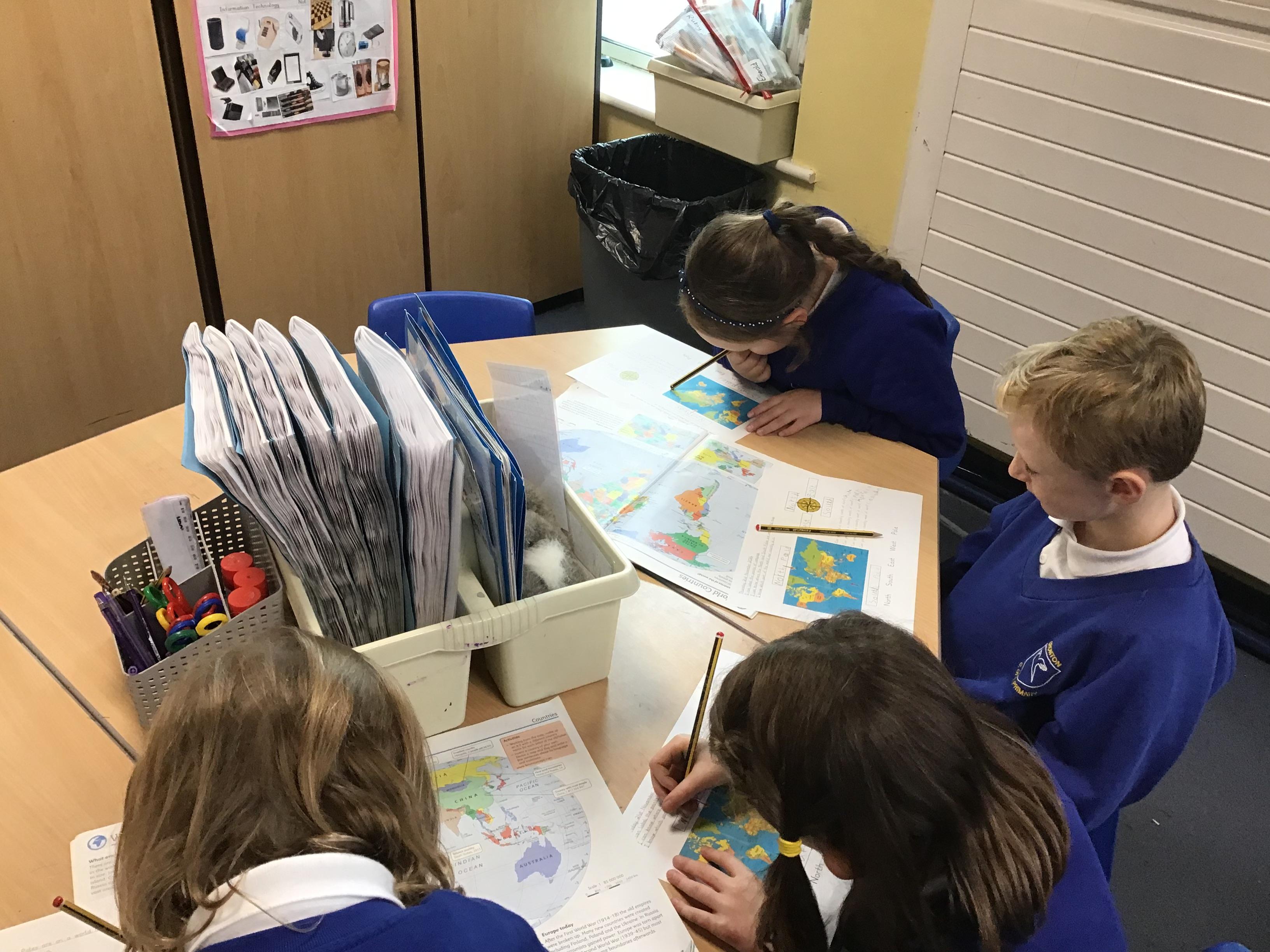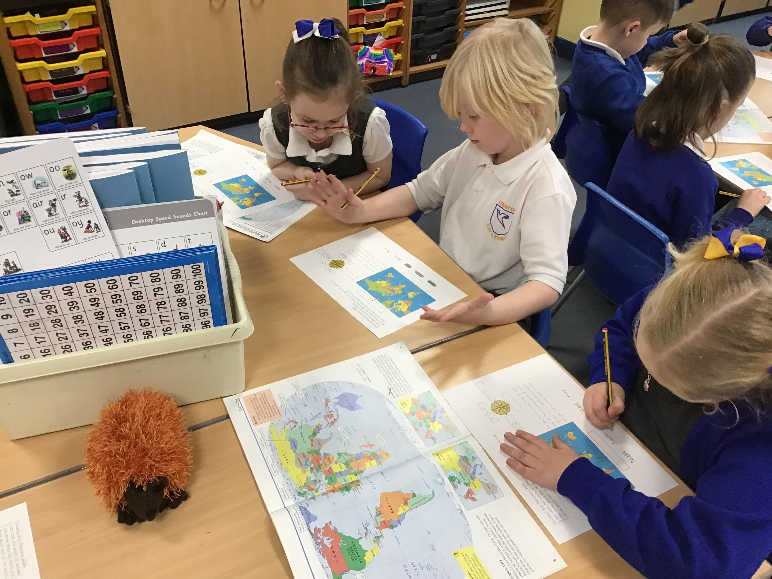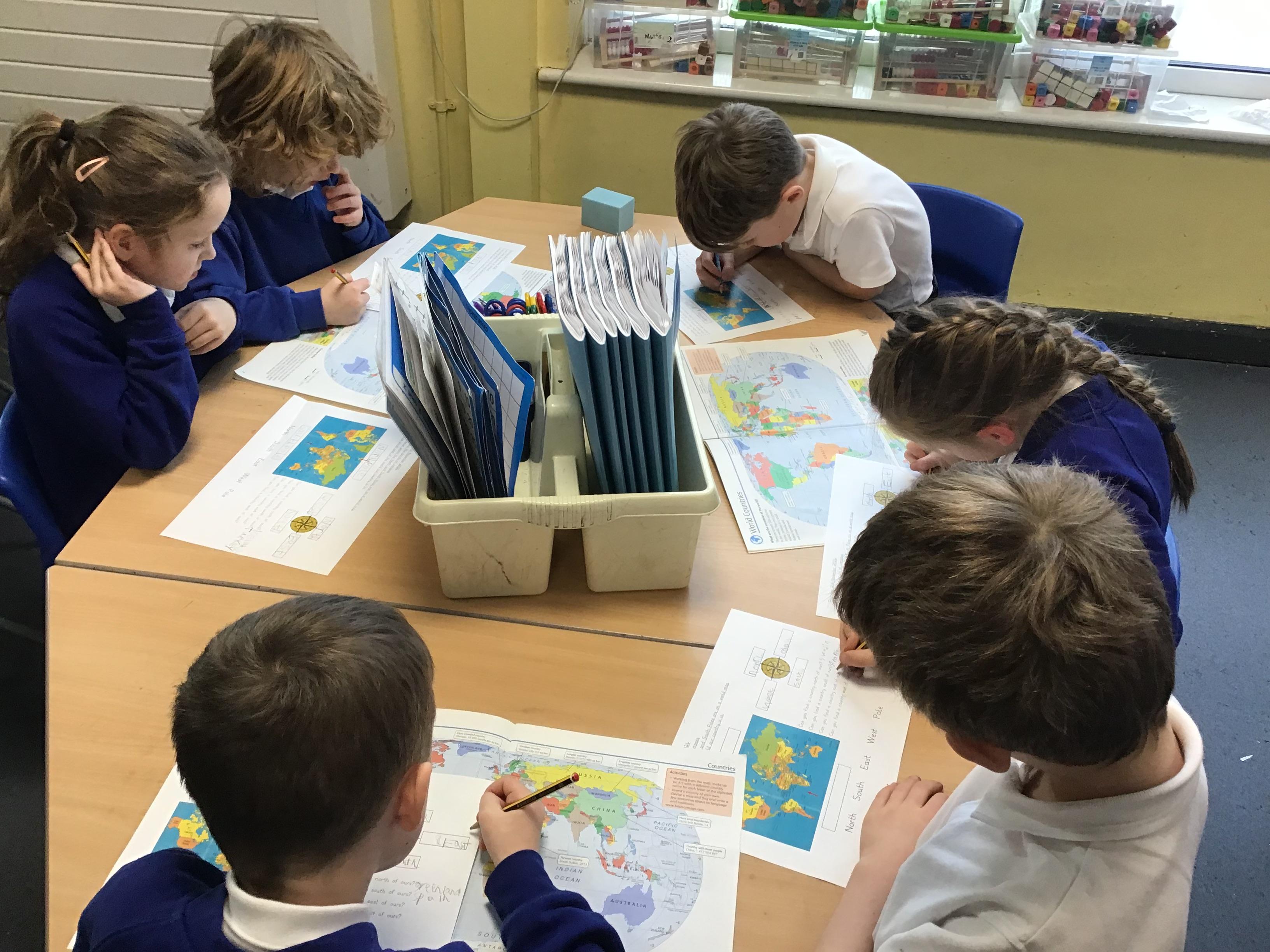 We started our geography unit this week by learning about compasses, what they are used for and the four different points. We then used an atlas to locate our own country and then a country to the North, South, East and West of us.