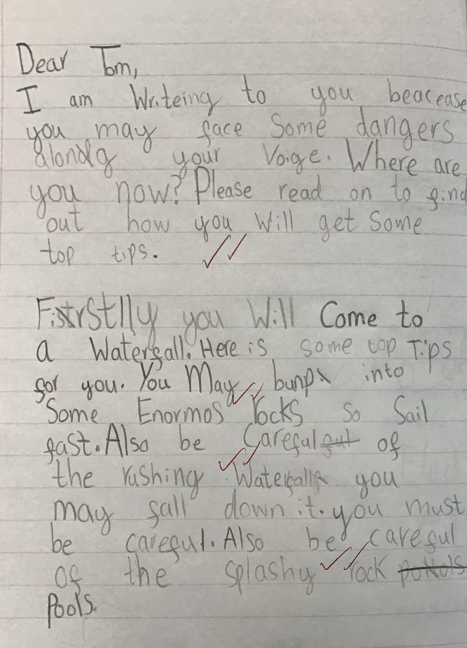 In our English this week we began to write our letters to Tom to warn him of the dangers he might face on his voyage and give him some helpful tips to keep himself safe!
