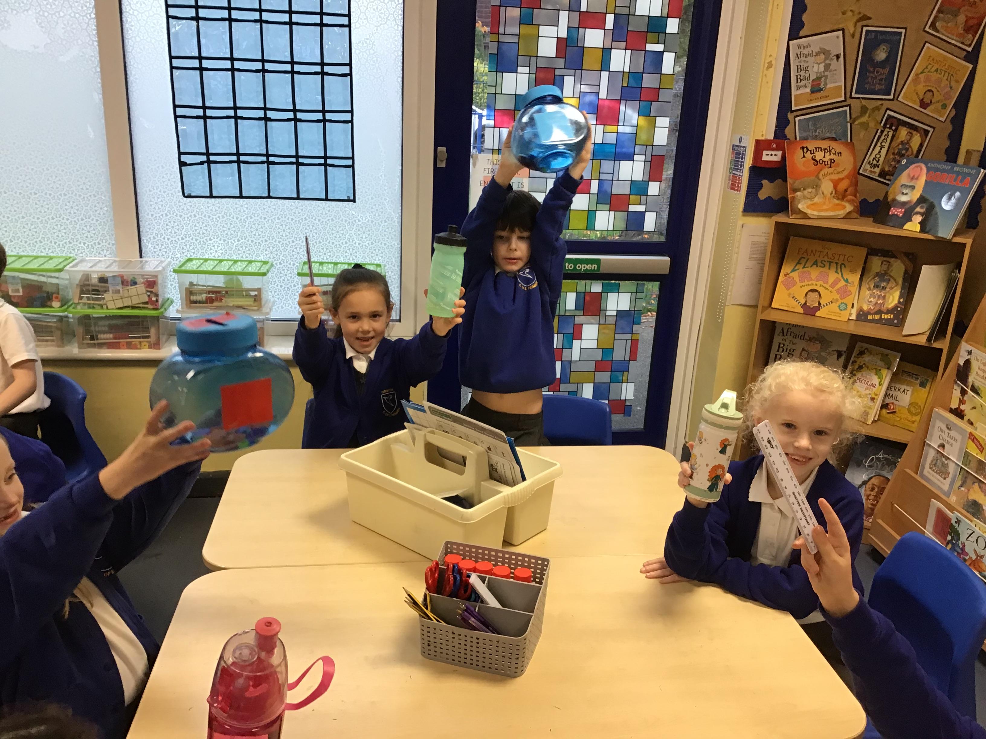 We have been very busy over the last two weeks with lots of different learning! in our maths we have continued to learn more about measures by investigating grams and kilograms and millilitres and litres. We have started to learn how to read different scales and compare quantities.
