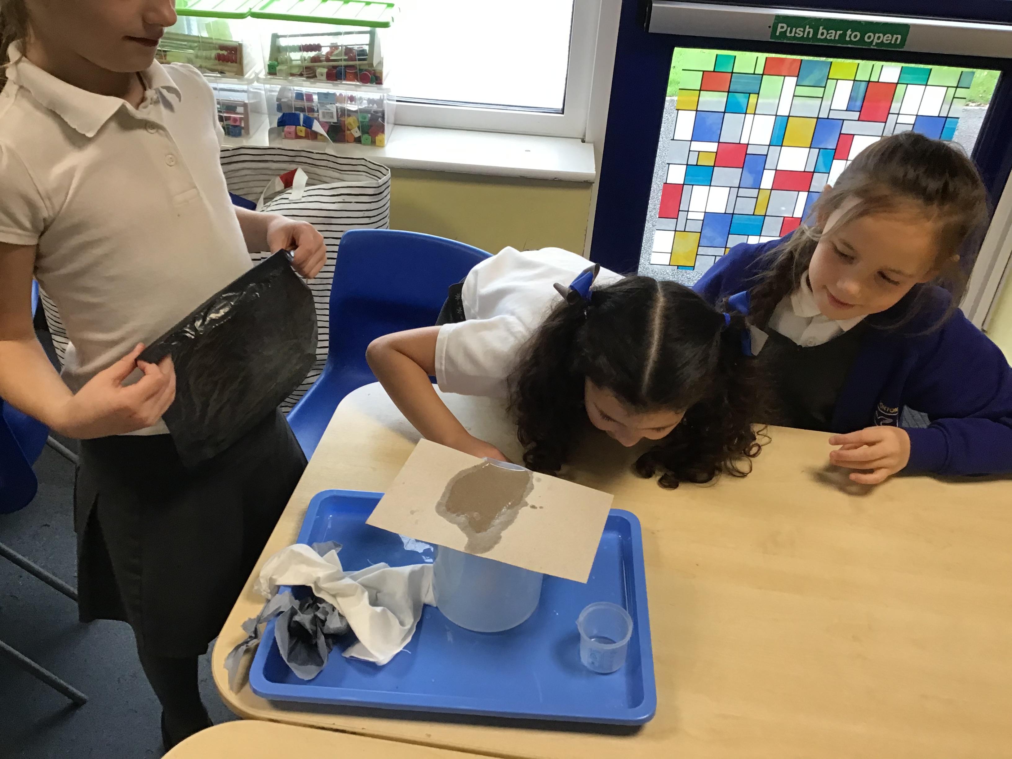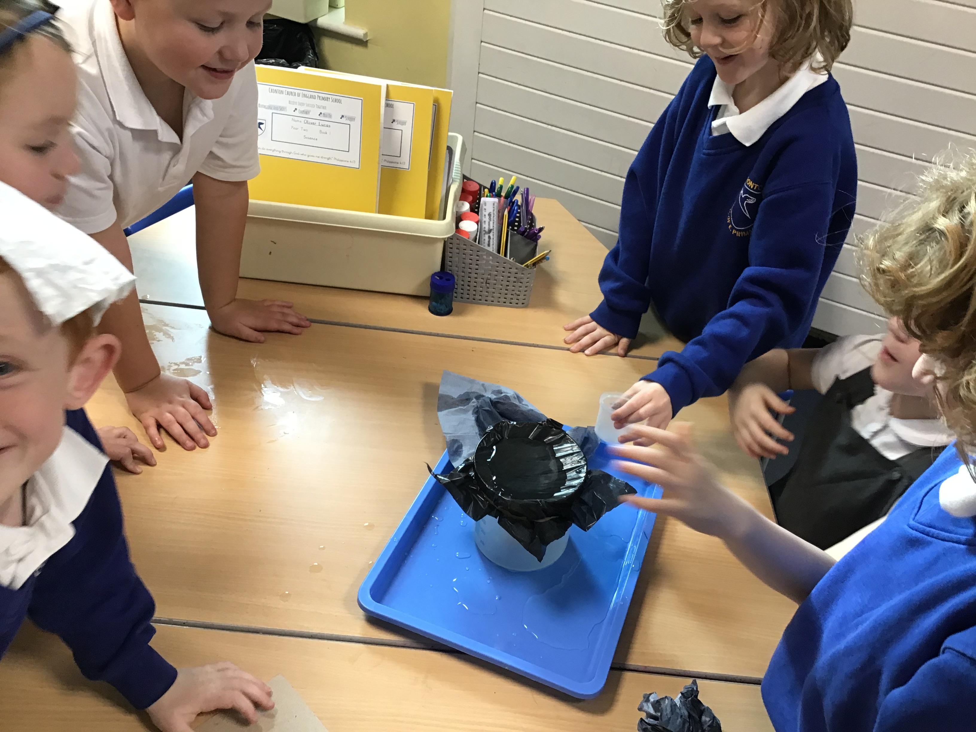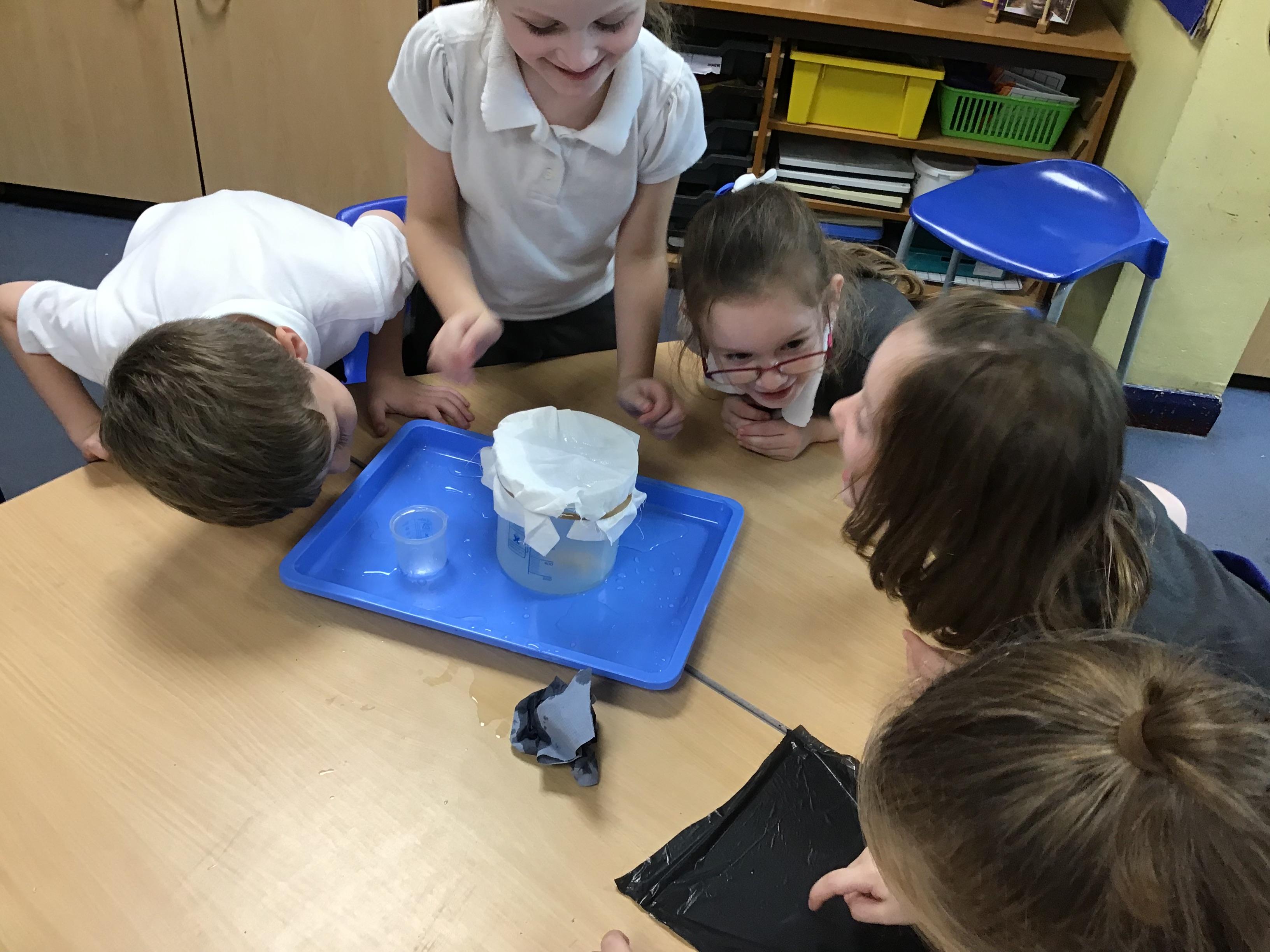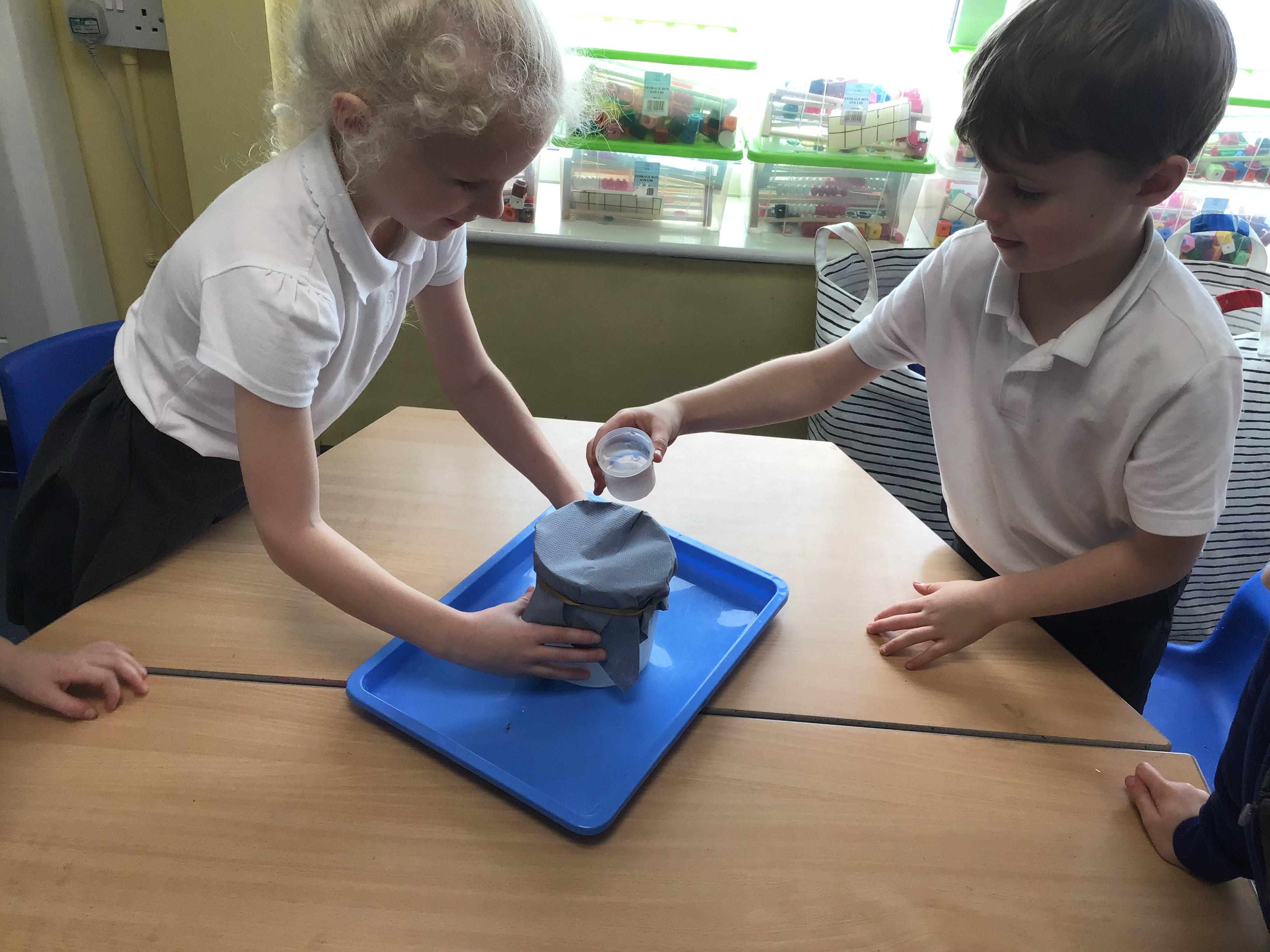 We finished our science block on materials by investigating which material out of plastic, cardboard, fabric and paper towels would help Teddy stay dry in the rain. We had lots of fun and there wasn't TOO much spillage!