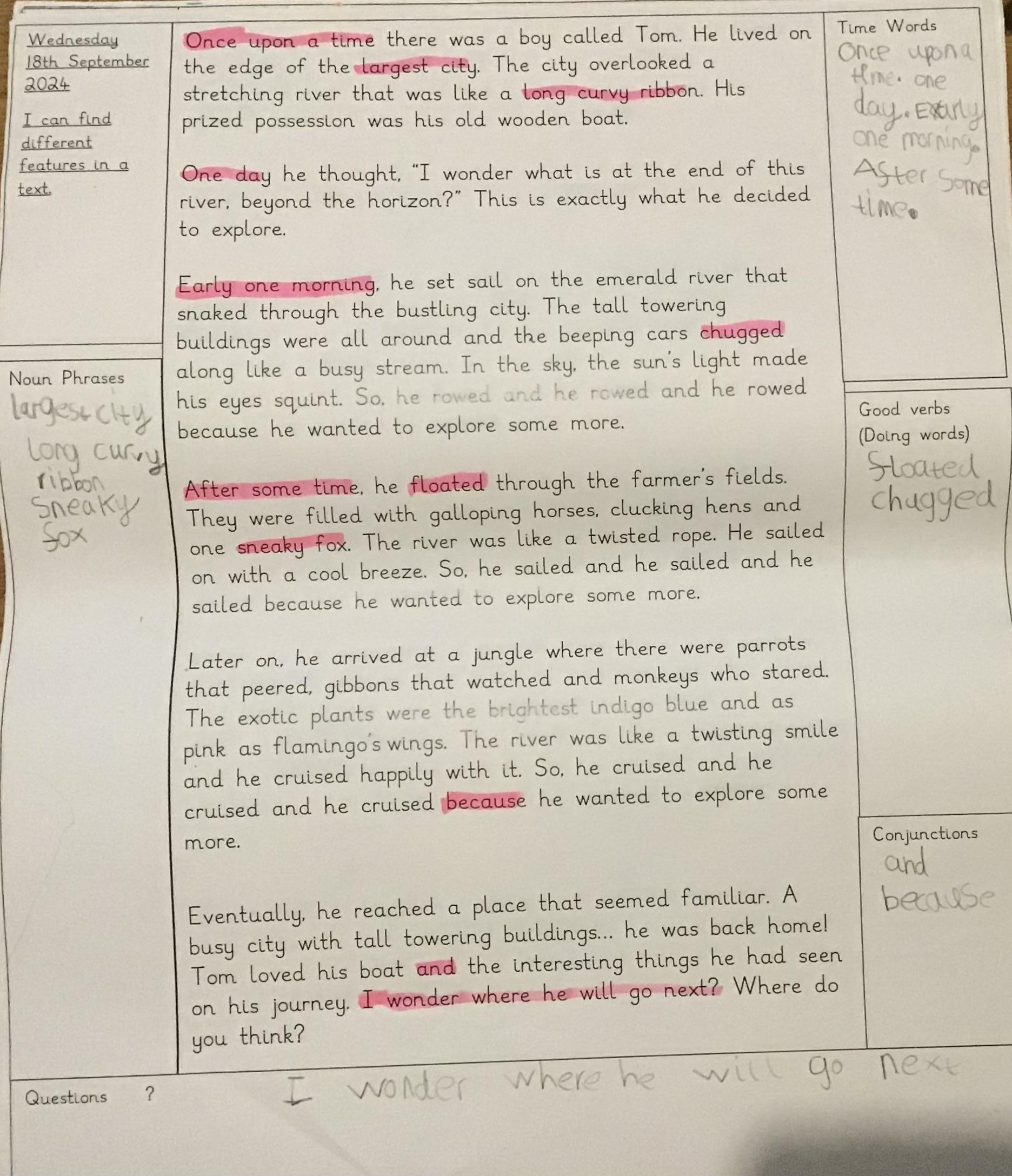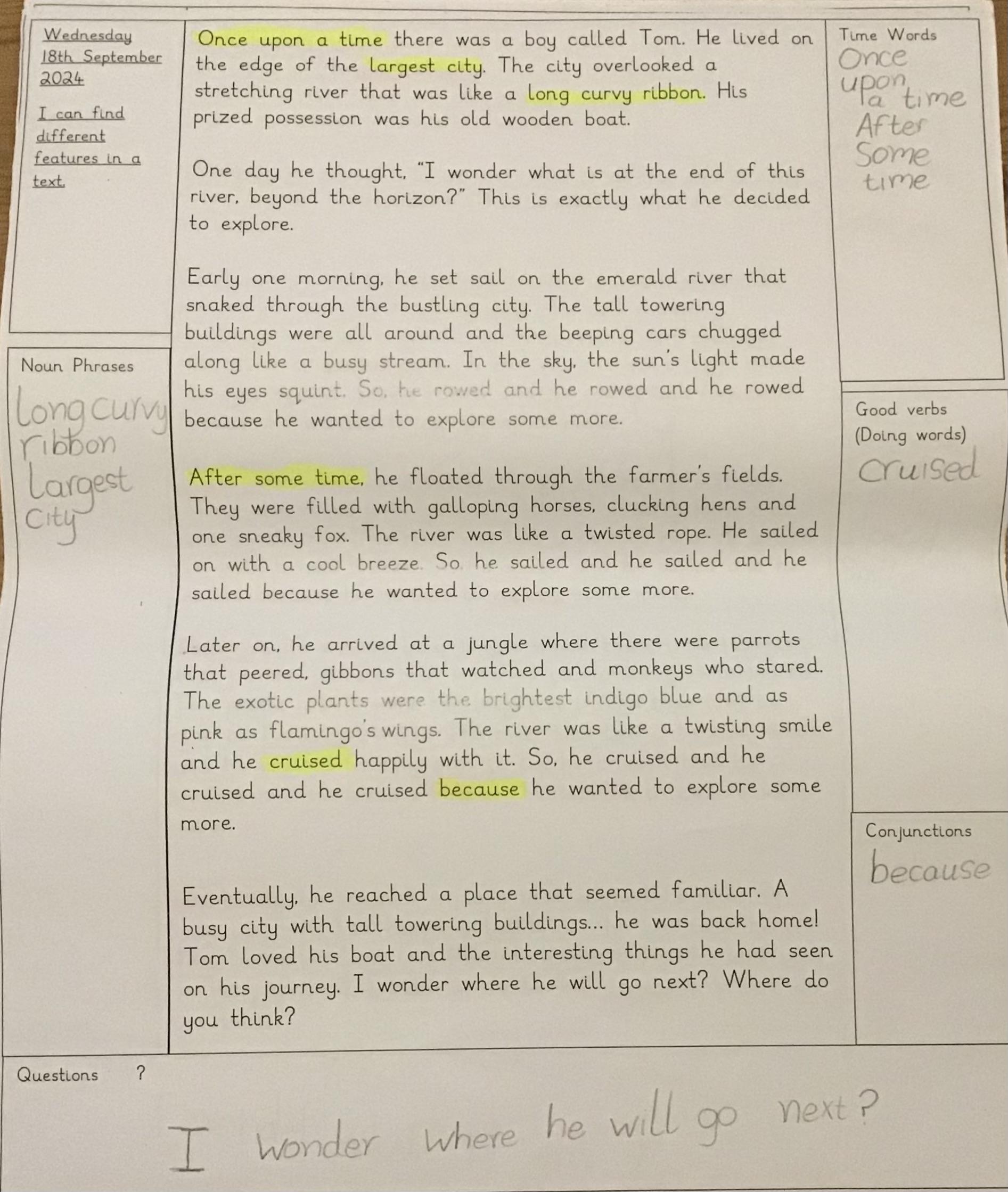 In English we have read another circular story based on our story. A circular text is one that starts and ends in the same place. We have started to analyse What a Good One Looks Like (WAGOLL) as we are preparing to write our very own circular stories.