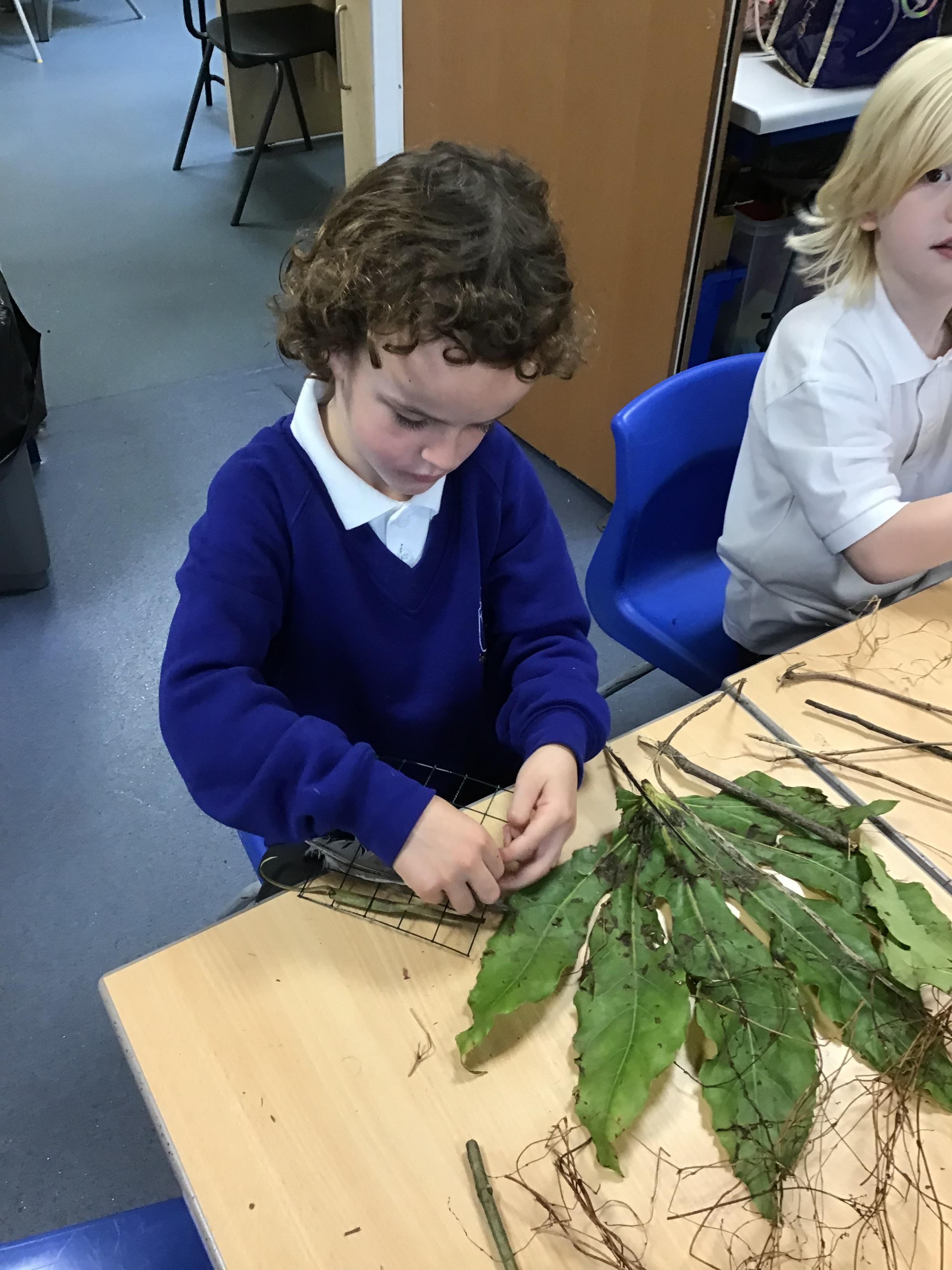 In Art and Design this week we went and collected lots of natural materials and experimented by weaving with them on a different type of loom. We had a lot of fun!