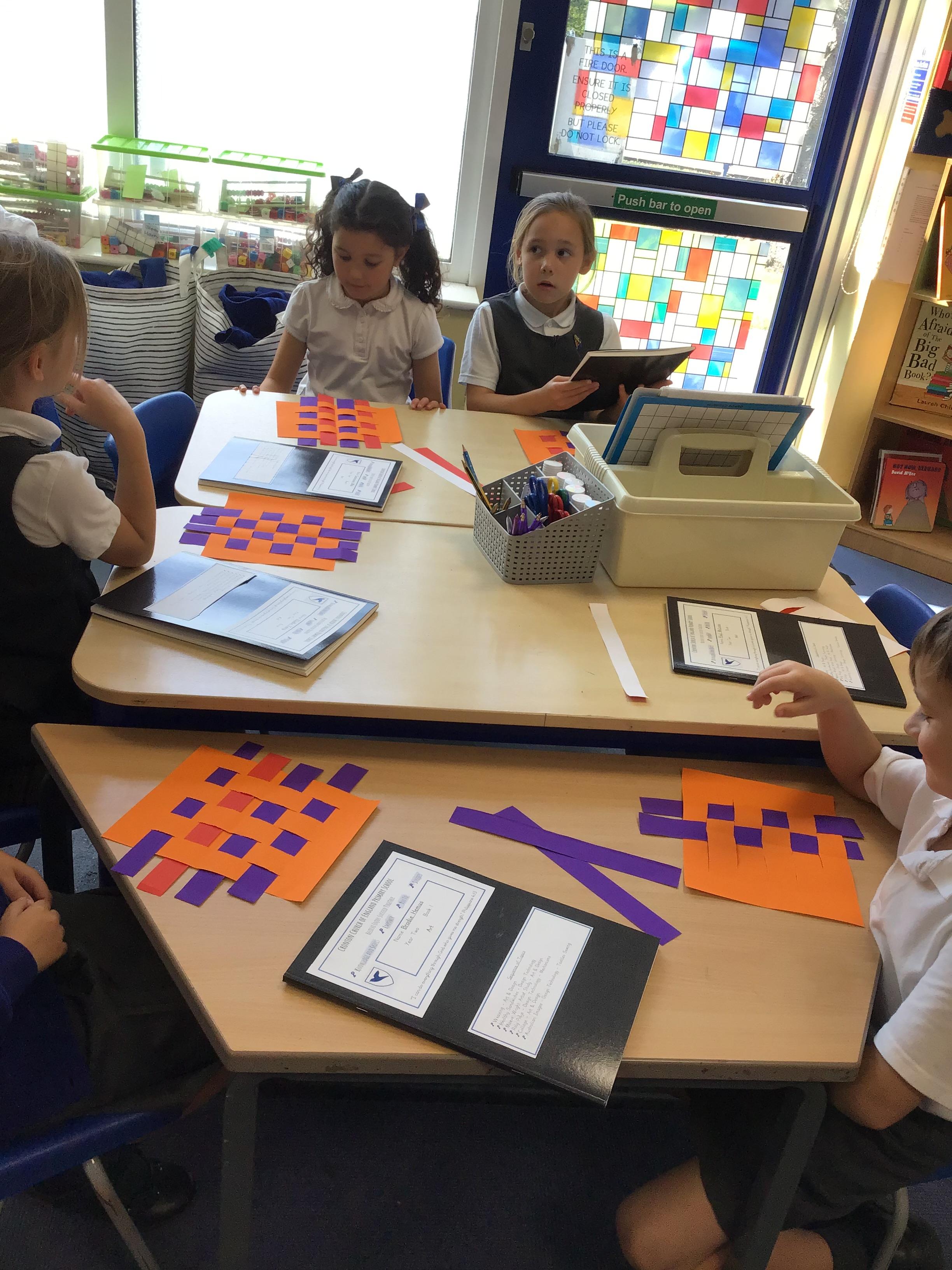 In art and design this week, we learned a simple weaving technique using paper looms and strips of paper. They made a great pattern!
