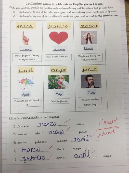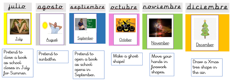 This week, we learnt how to say the first six months of the year in Spanish. To help us remember them, we learnt an action for each month.