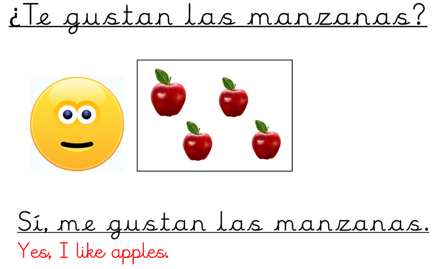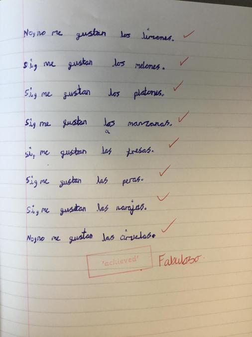 Today in Spanish, we have been learning how to say whether we like or dislike certain fruits.