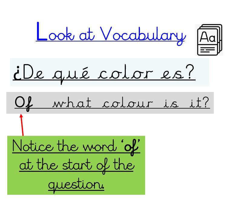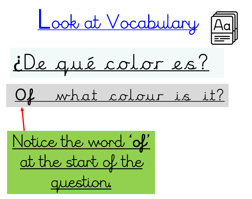 This week, we learnt how to use the colours in Spanish in a question and answer.