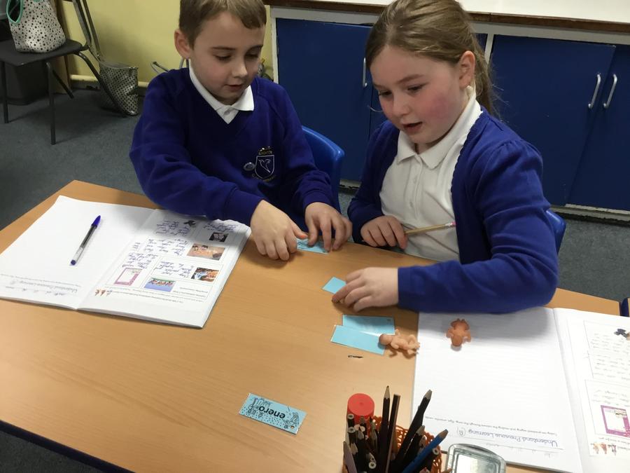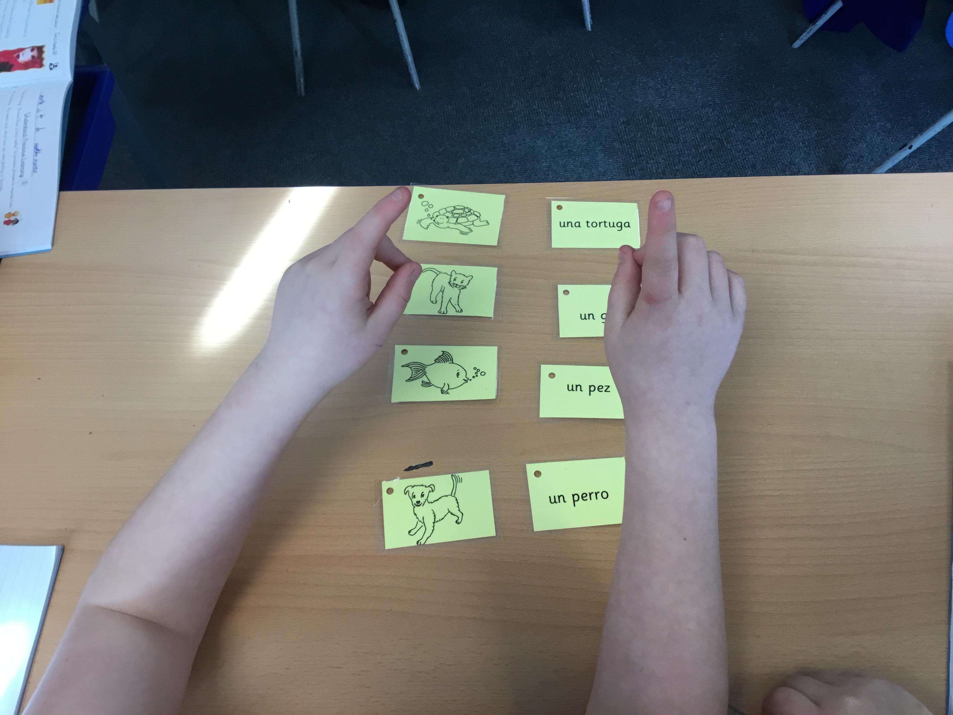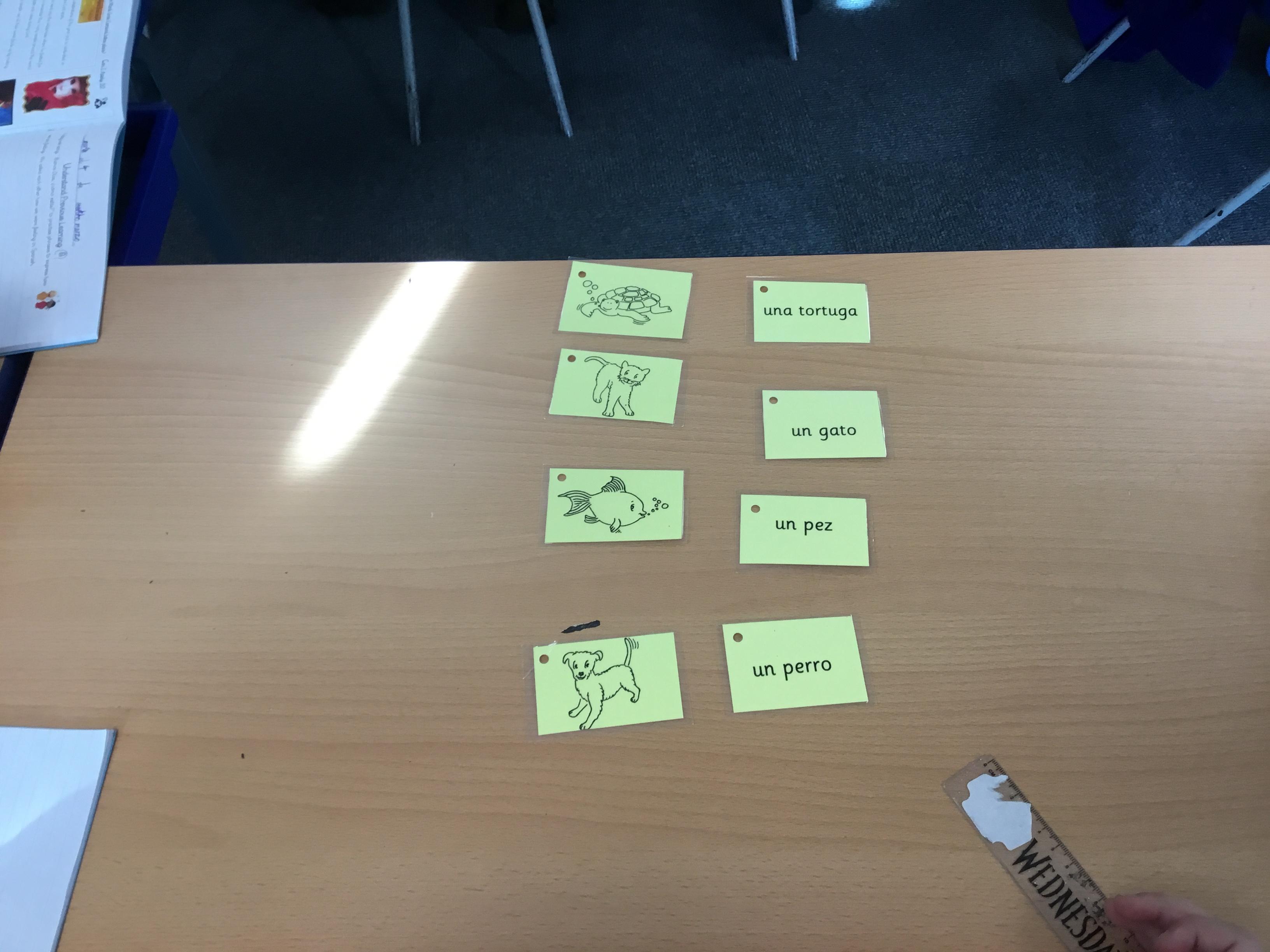 We matched the picture cards to the Spanish words, and we put the cards into sequences as Mrs. Kimmins read the Spanish words out.