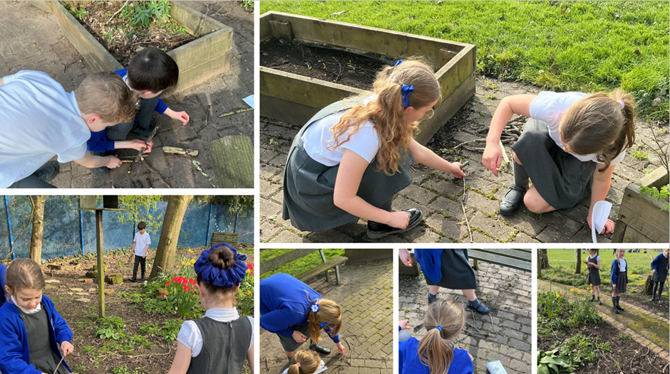 Year 4 have explored basic ideas of anatomy by building model skeletons using twigs. As they arranged the twigs, they labelled parts such as the skull, spine, ribs and limbs, helping them understand the structure of the human body. This activity encouraged the correct use of scientific terminology while also developing their creativity and observation skills. By discussing how each “bone” connected and supported the body, children practised using accurate vocabulary in a meaningful and engaging way.