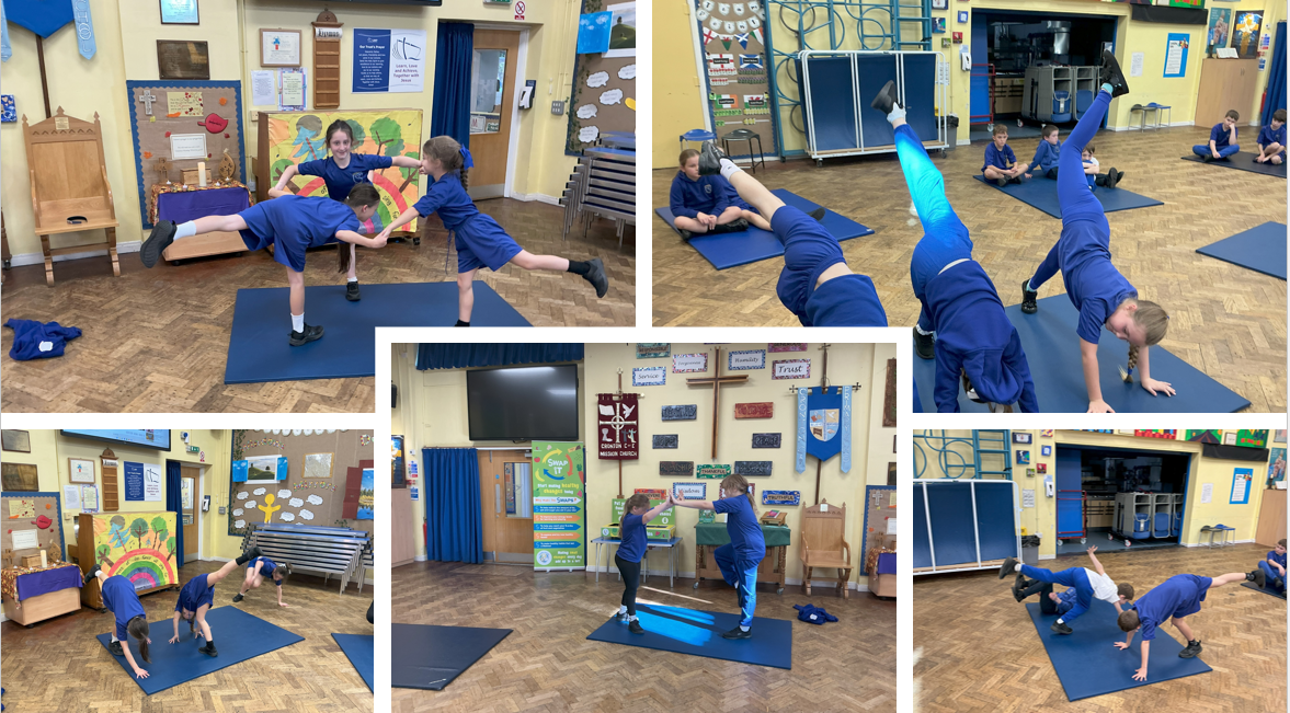 This term, we have been working hard in gymnastics. We have been looking at creating different shapes, using transitions and balances. We also explored using canon and unison movements within our sequences.