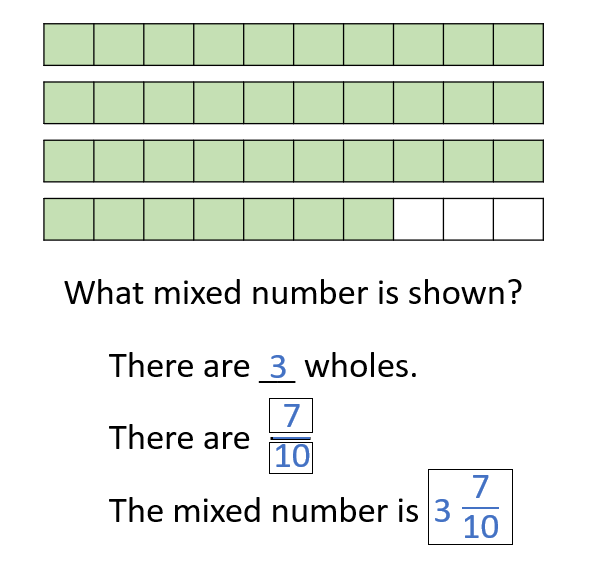 Then, we started to count fractions and write them as mixed numbers. This is with a whole number and a proper fraction.