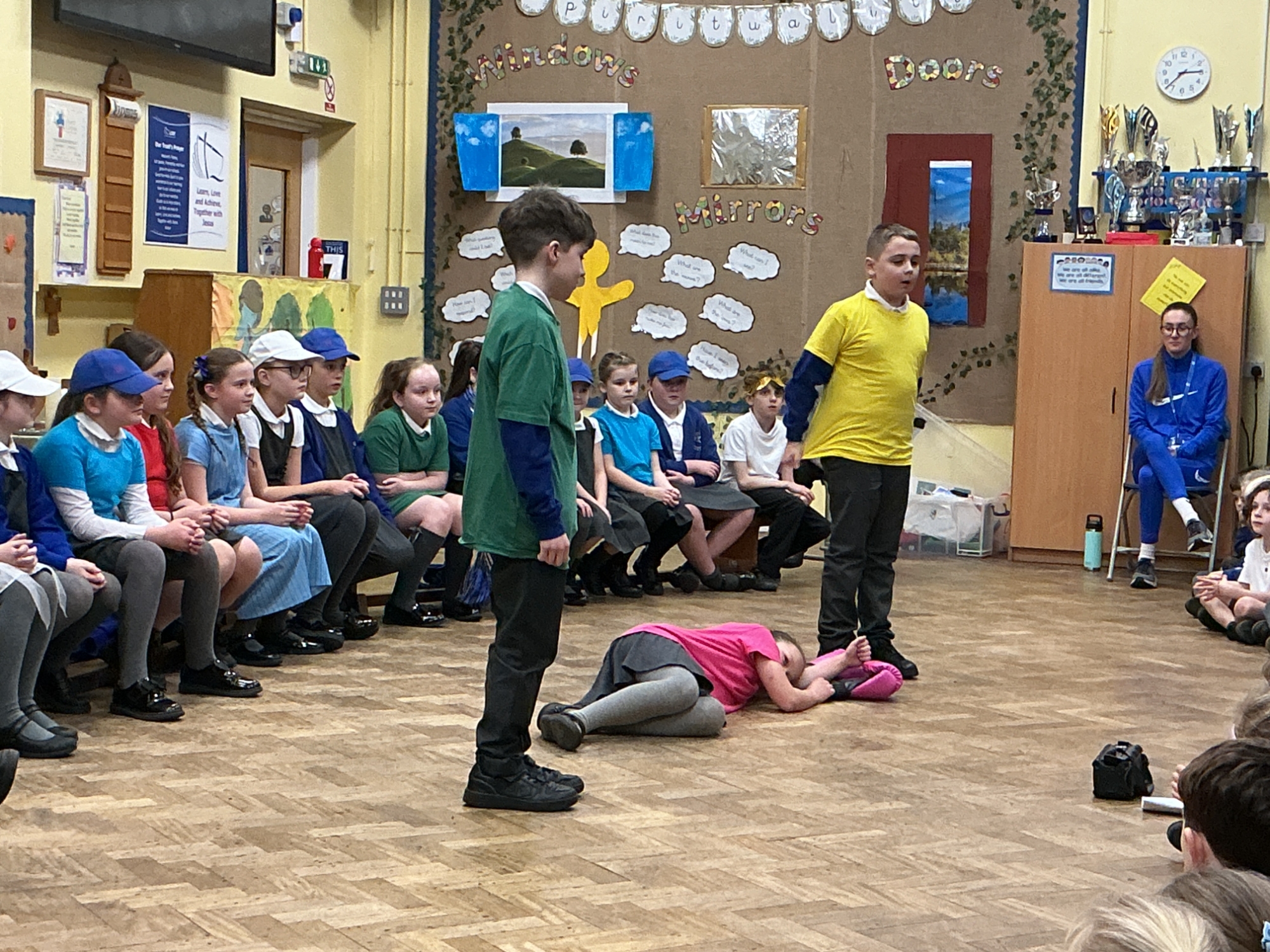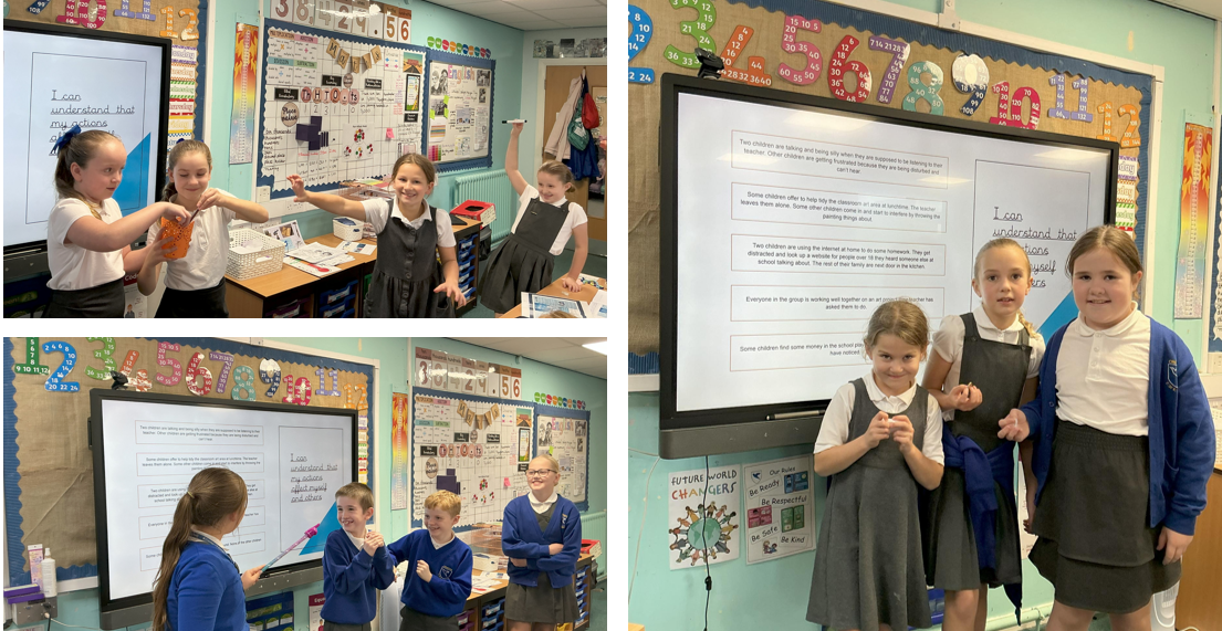 In PSHE, we looked at different scenarios with children being unkind. We acted them out and created solutions that we could use in everyday life.