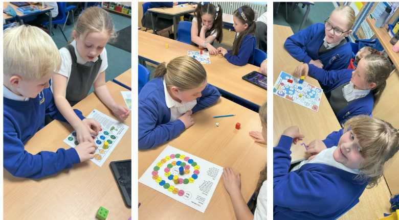 Having fun learning our times tables by playing board games!