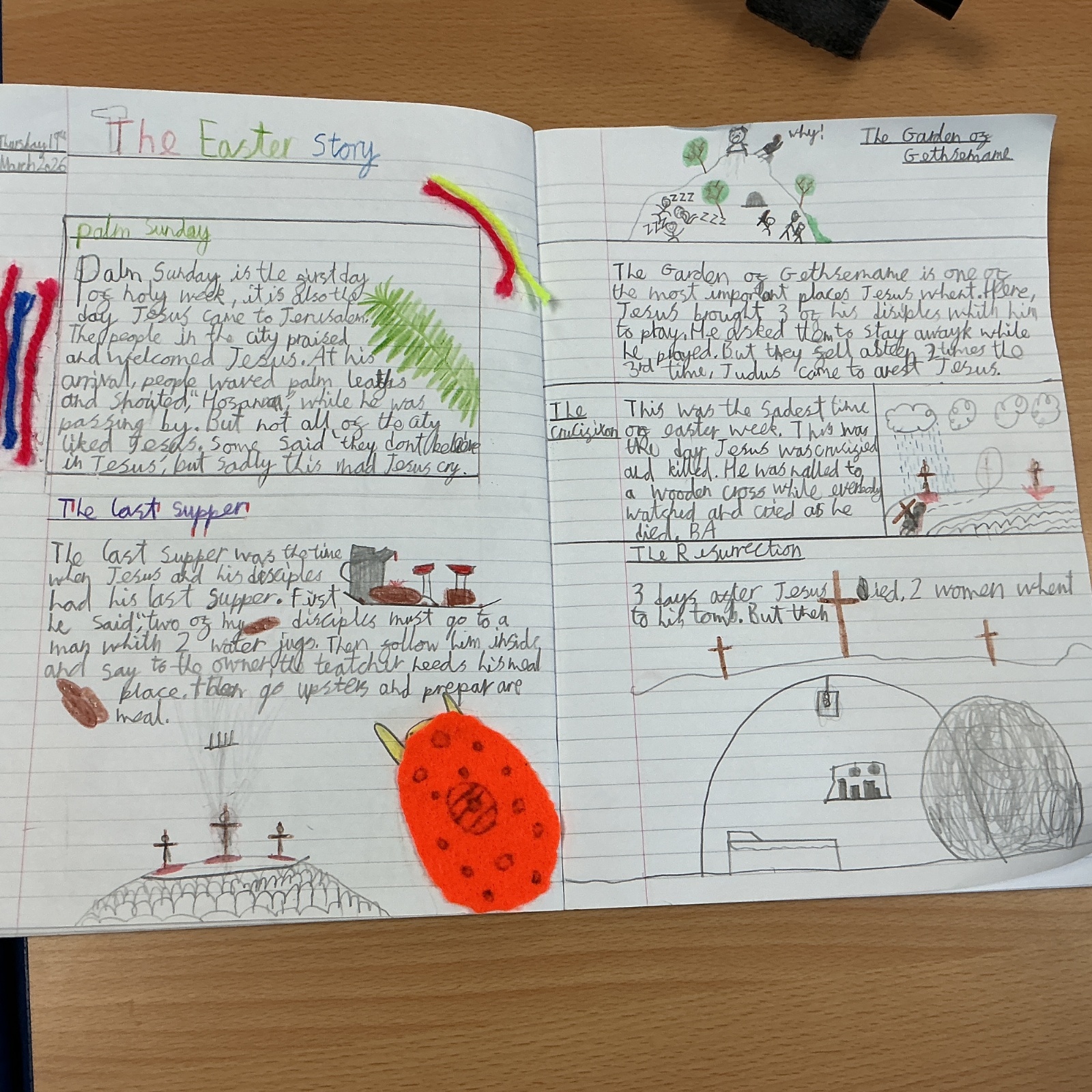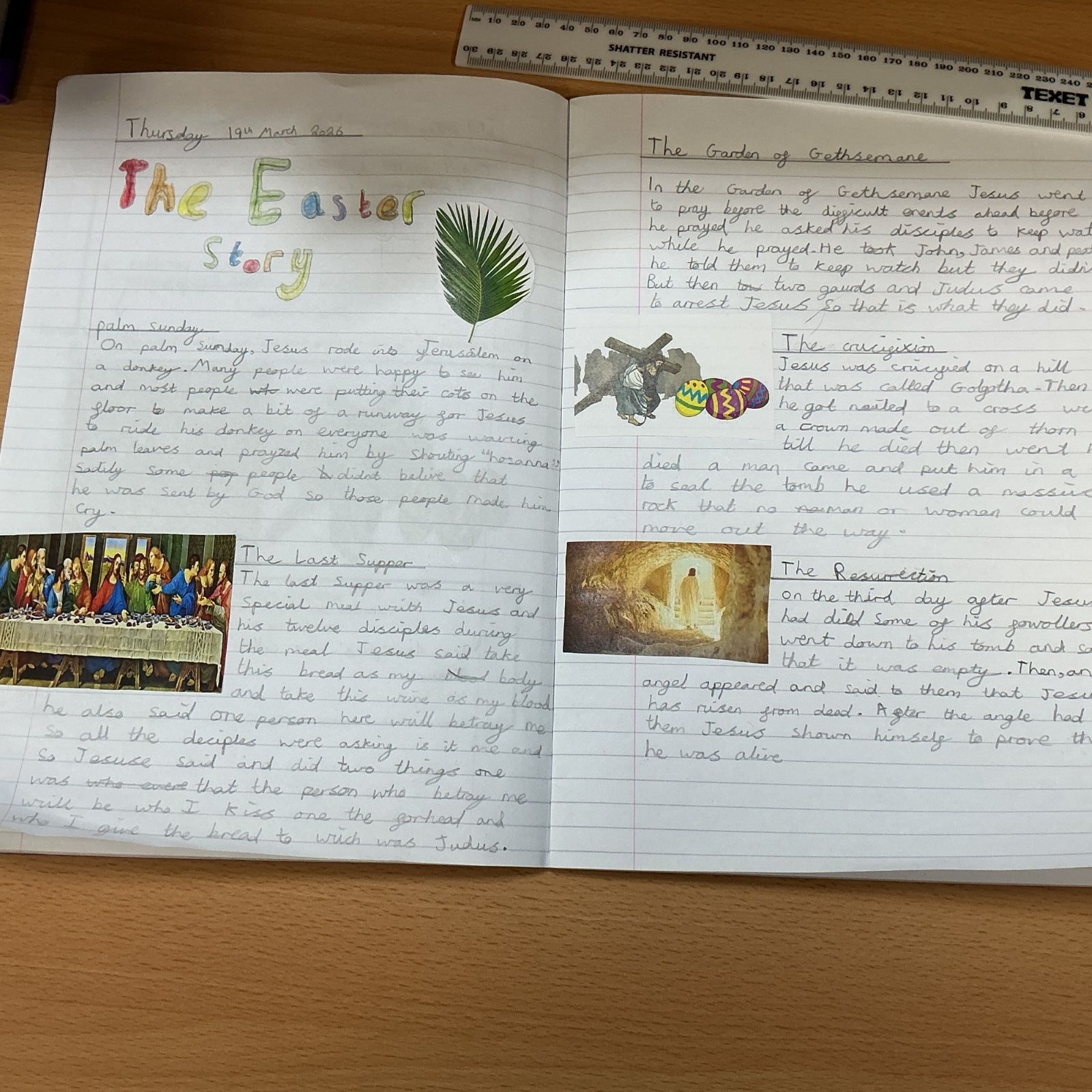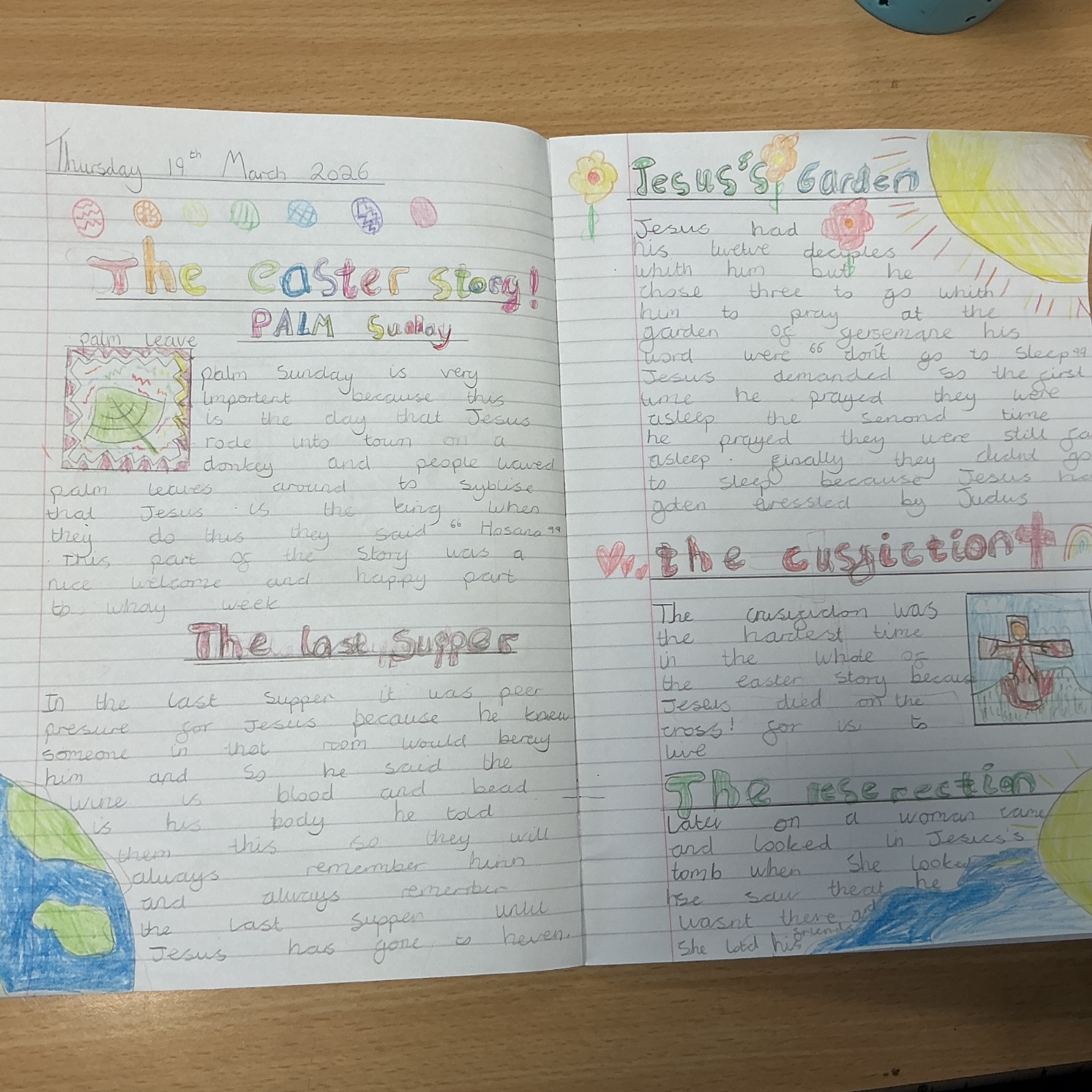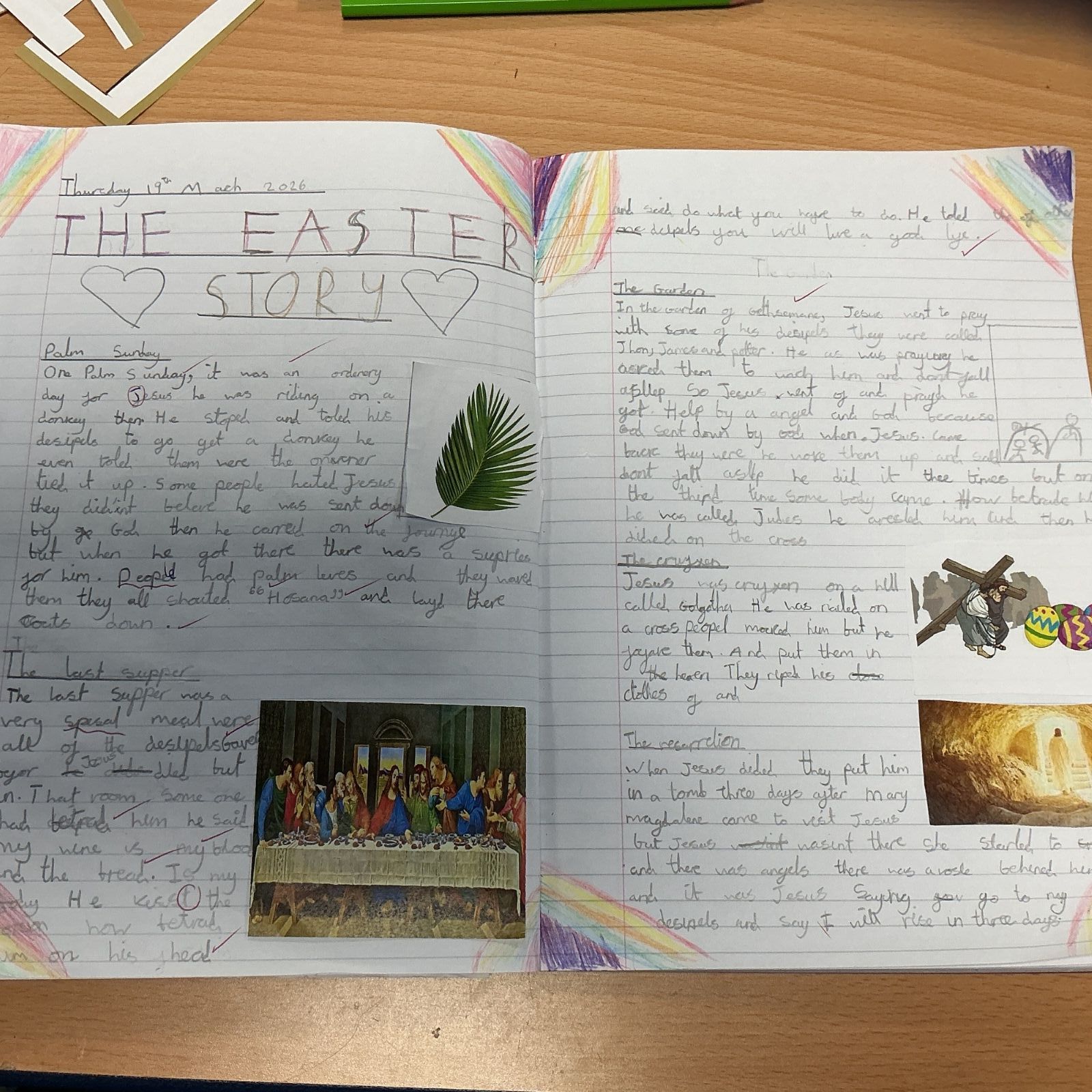 Wow! Take a peek at our Easter Stories that we have retold by using a 2 page spread. The children are extremely proud of their work and they look amazing. Well done, Year 4!