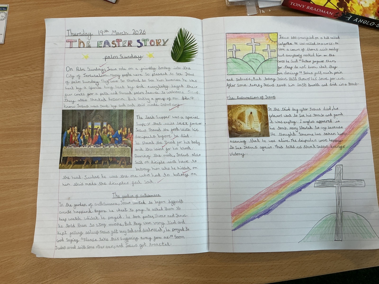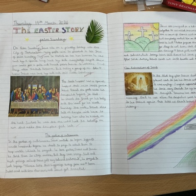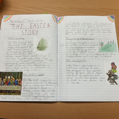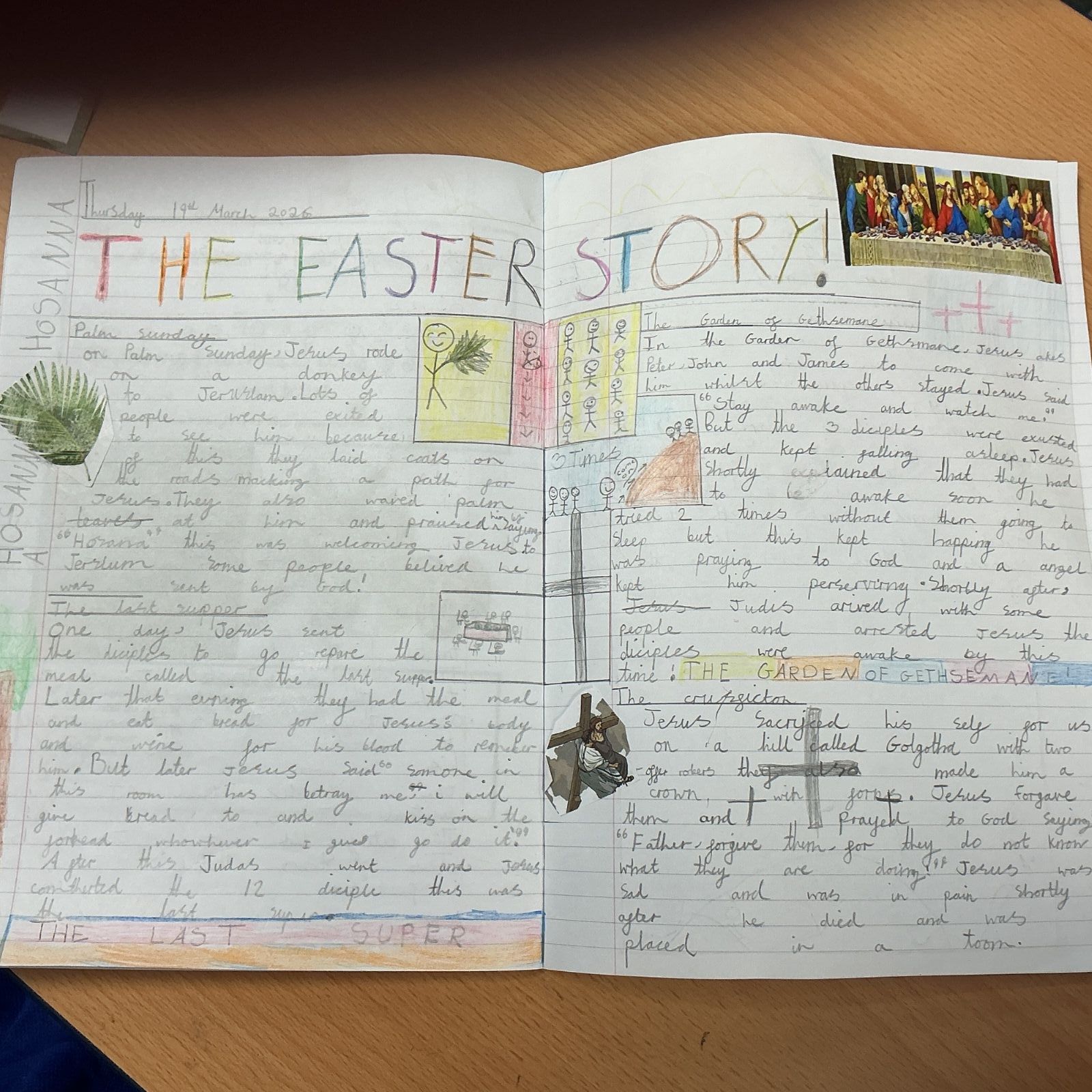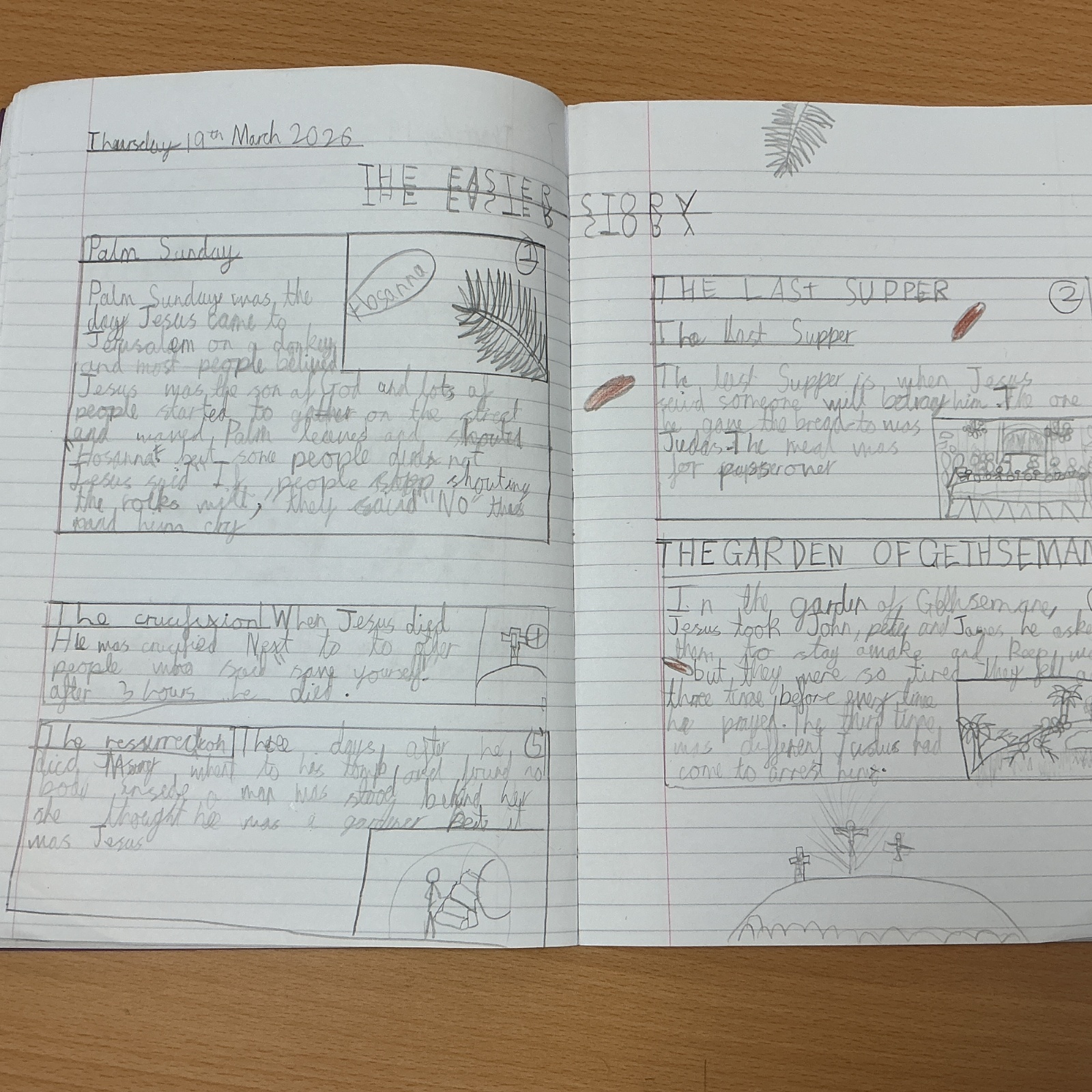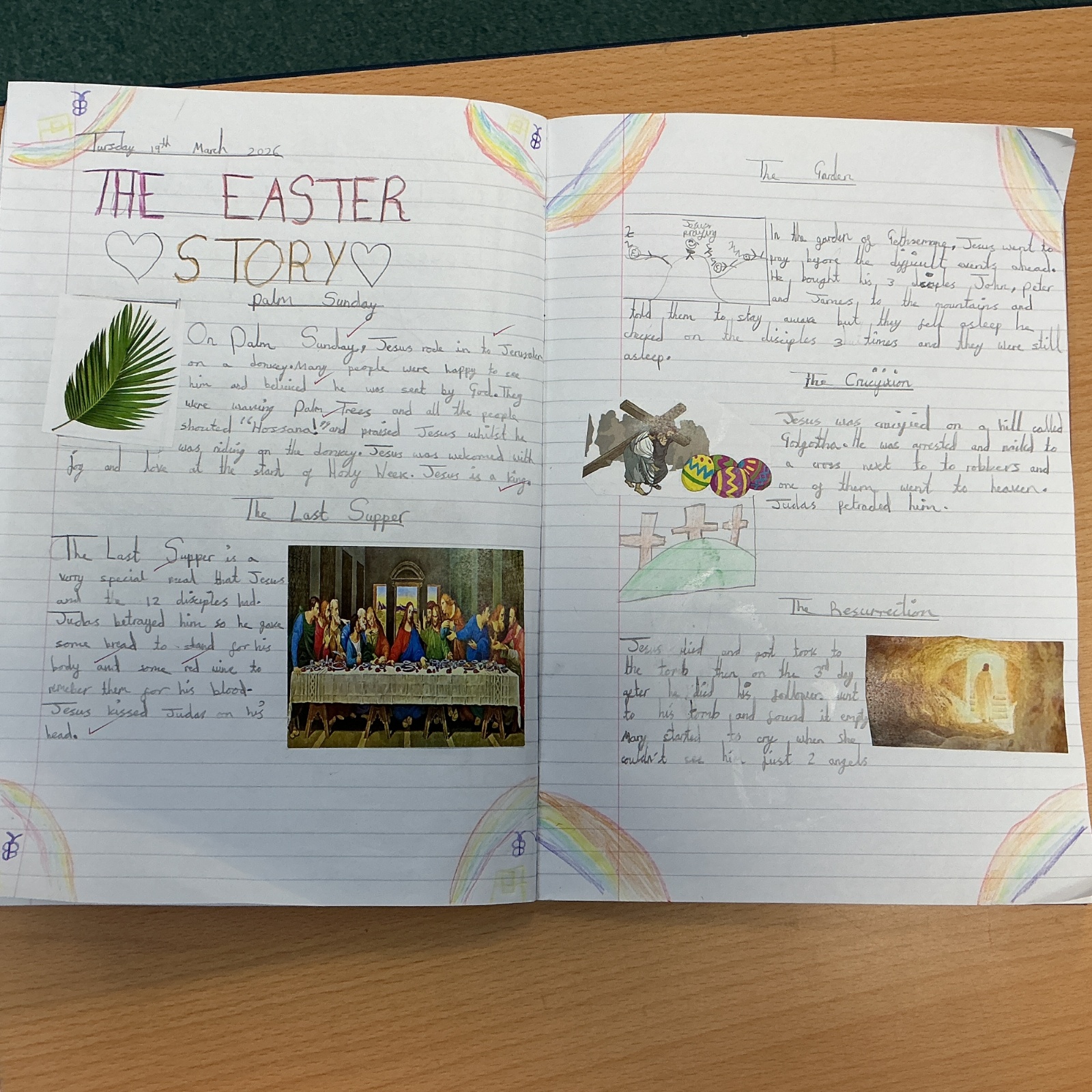 Wow! Take a peek at our Easter Stories that we have retold by using a 2 page spread. The children are extremely proud of their work and they look amazing. Well done, Year 4!