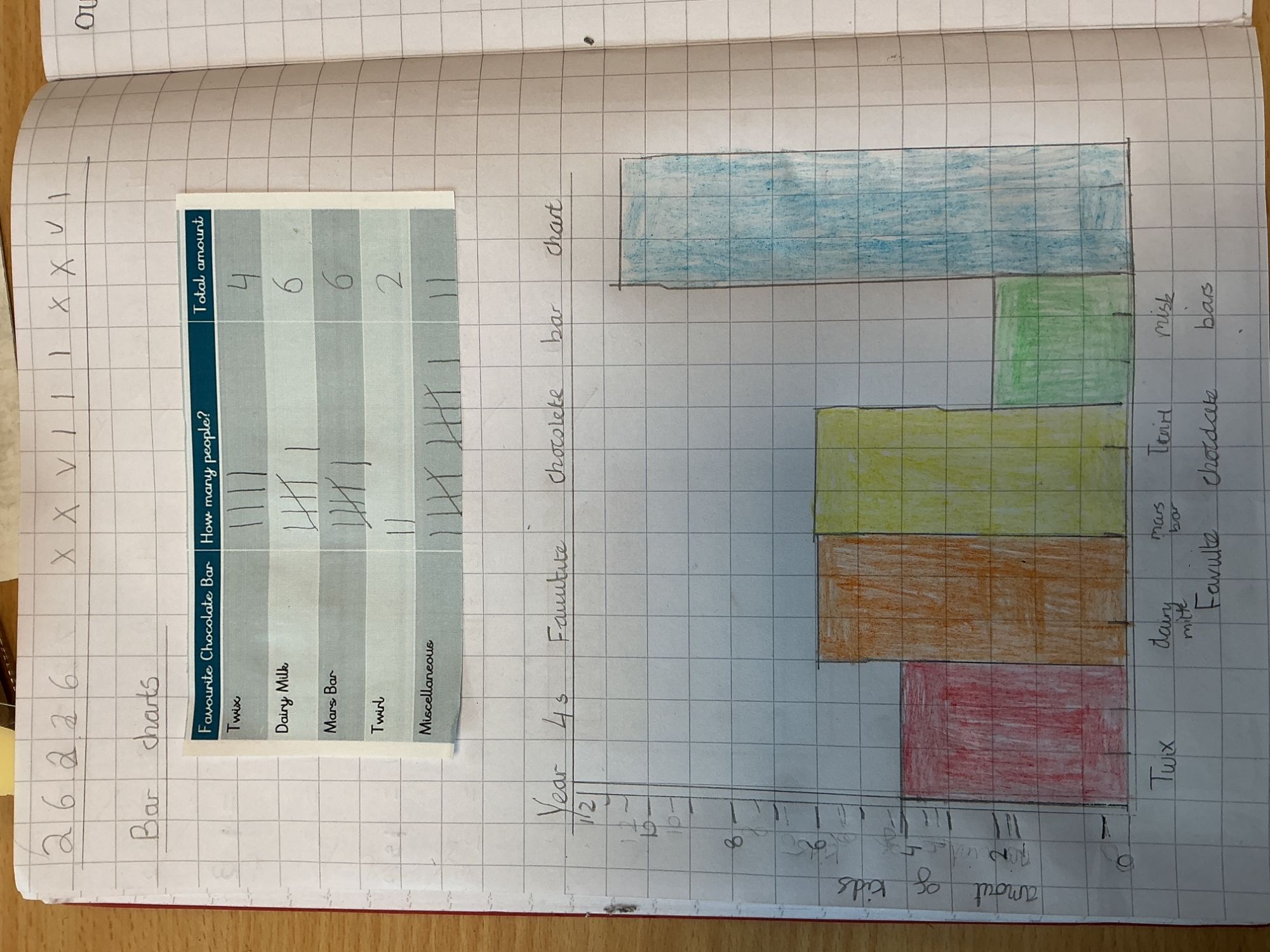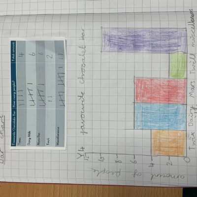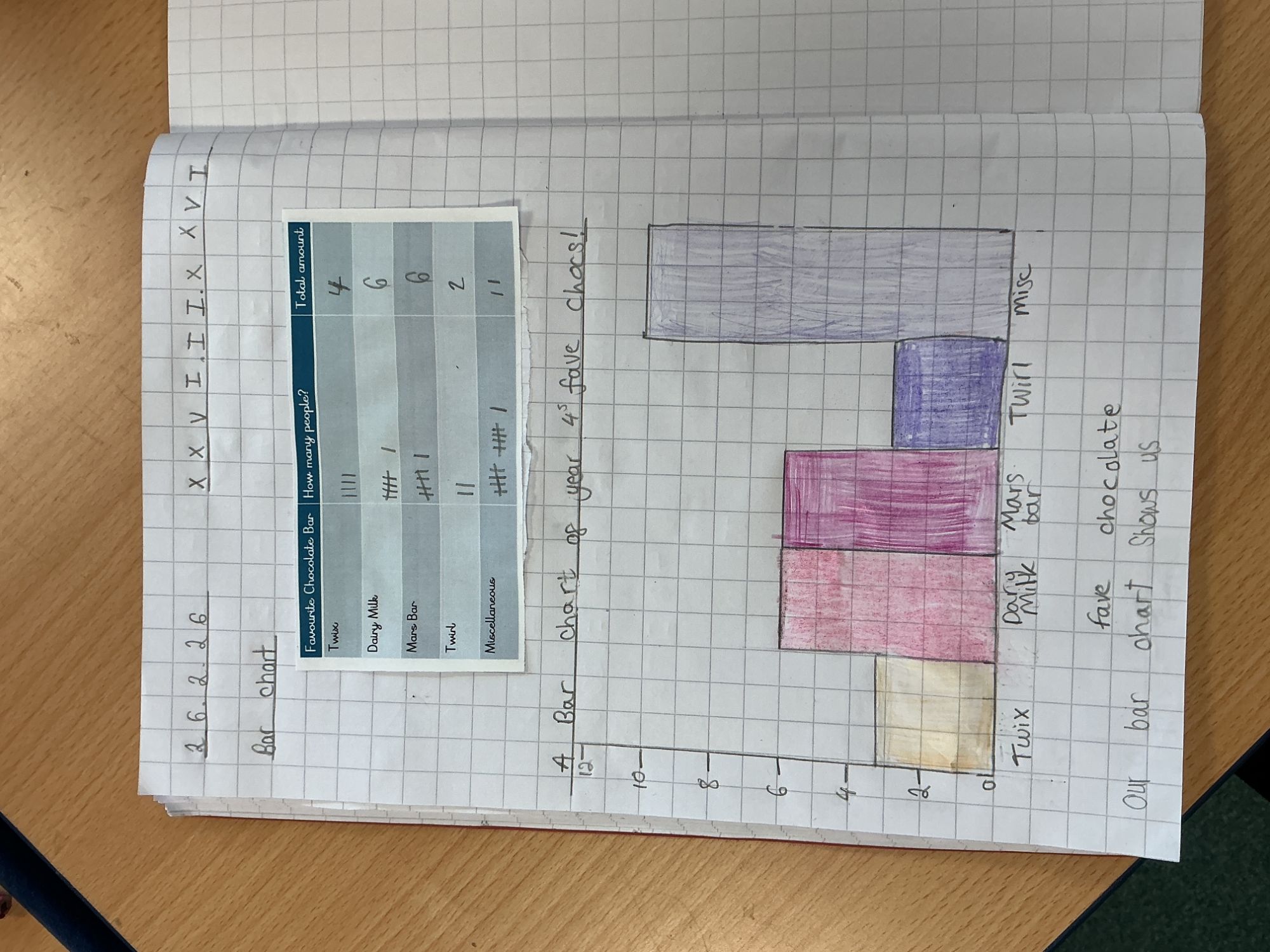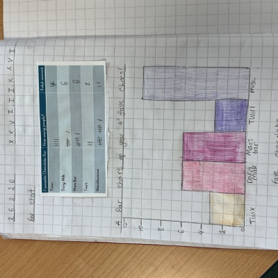 In our arithmetic lesson, we have been using tally charts to create our own bar chats. We discovered Year 4's favourite chocolate bar by using this data to help us.