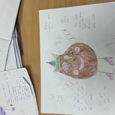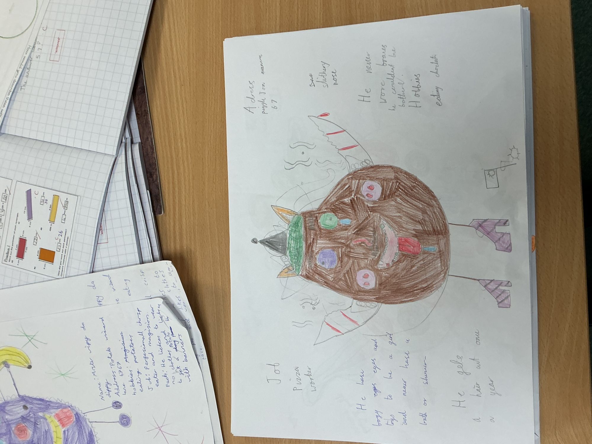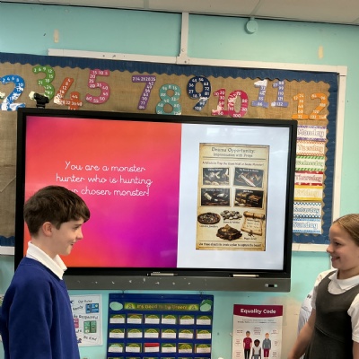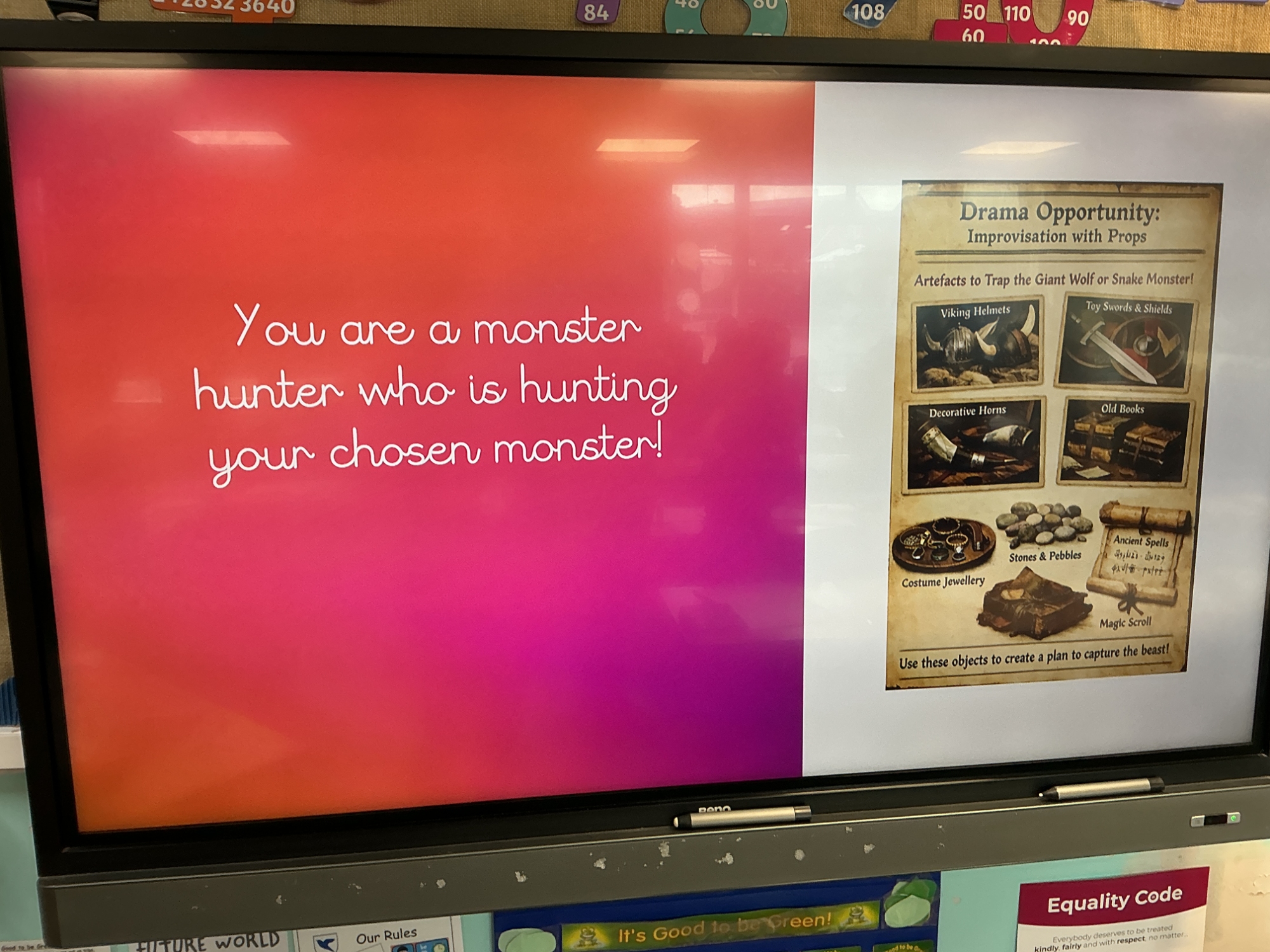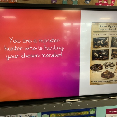 In English, we have also used role play to pretend to be a monster hunter who is hunting one of the monsters we have been looking at.