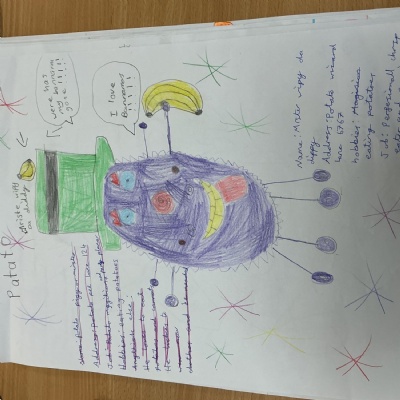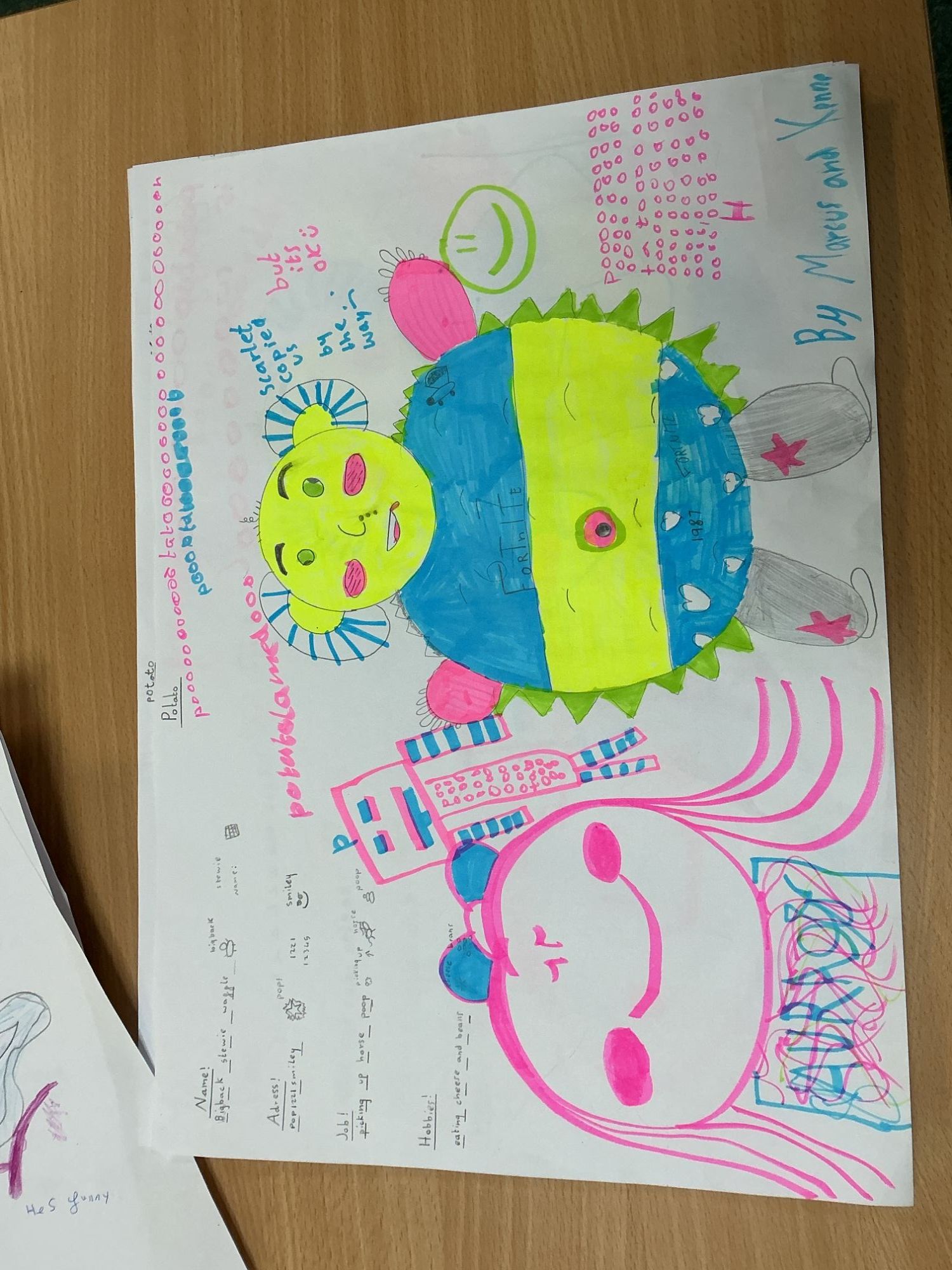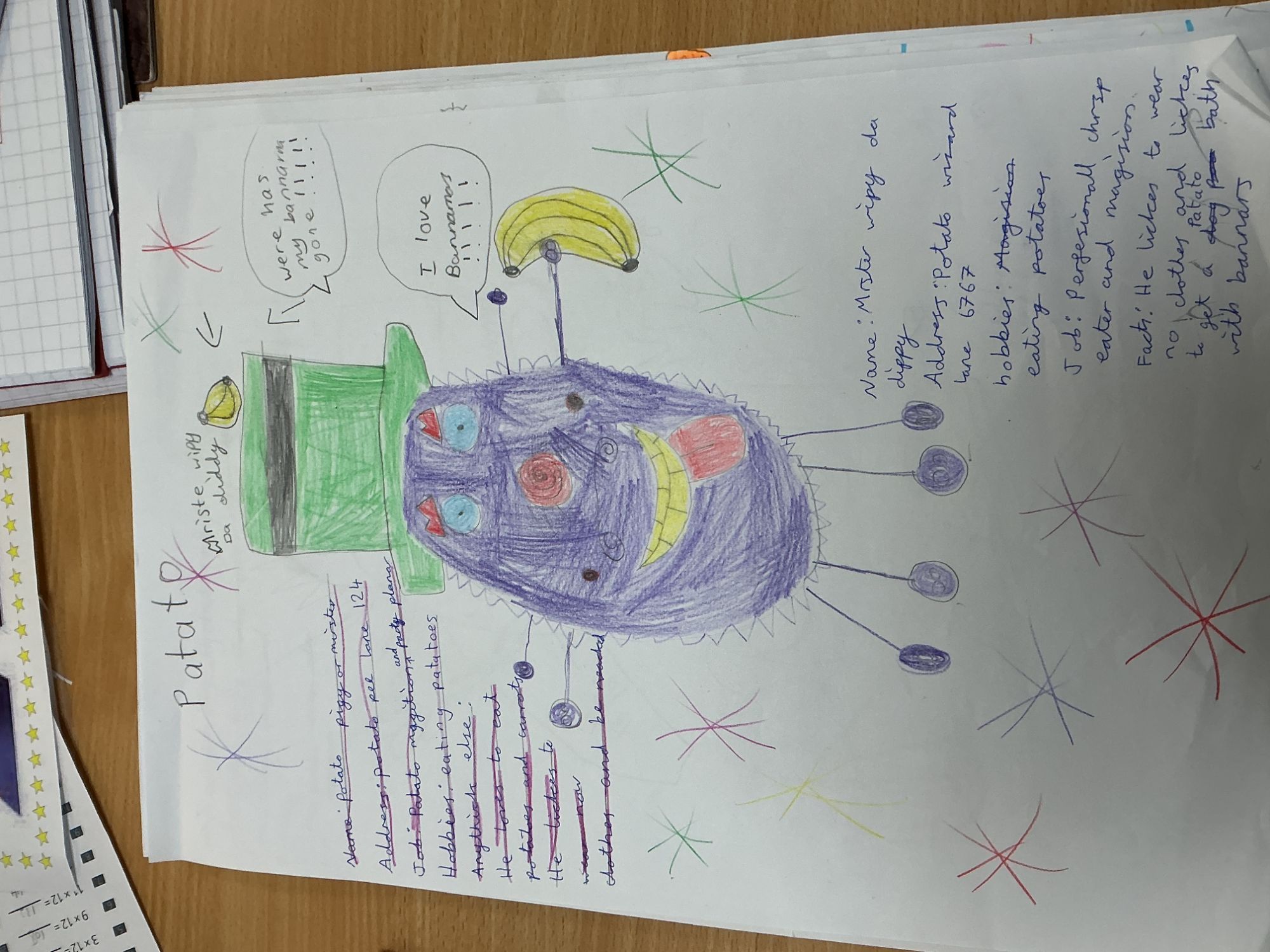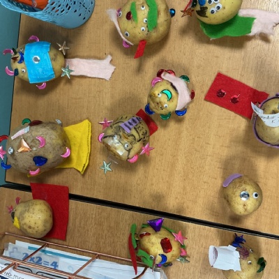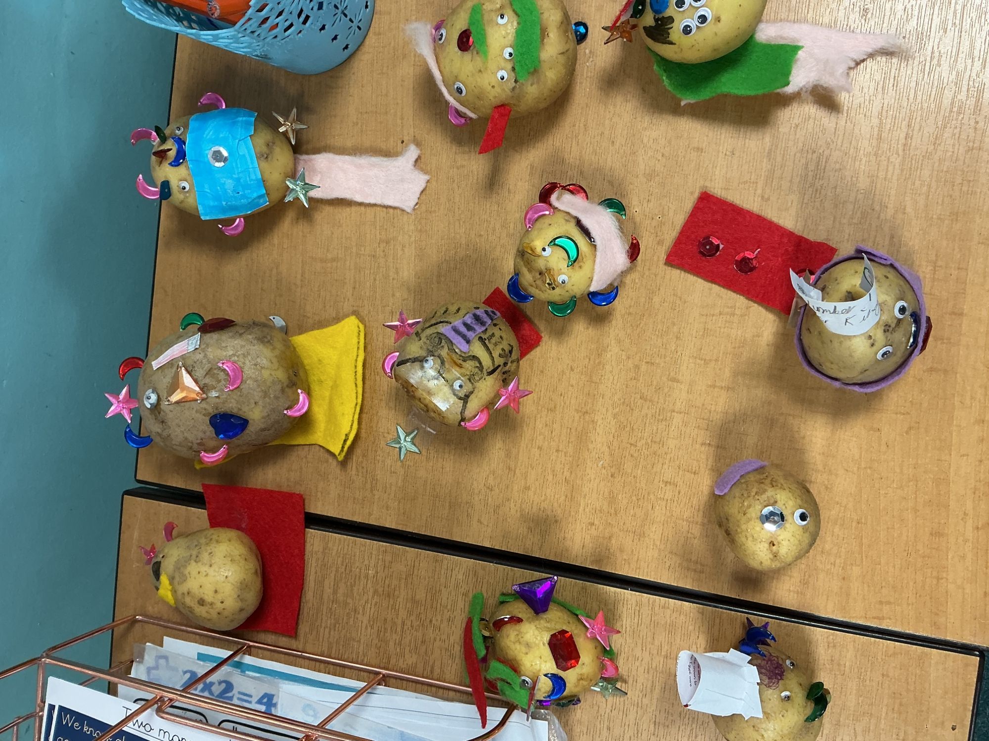 In PSHE, we also were tasked with a challenge to work in a group and design the funniest potatoes. We were extremely lucky to have Mrs Willis pick our winners. Take a look at some of our designs and plans.