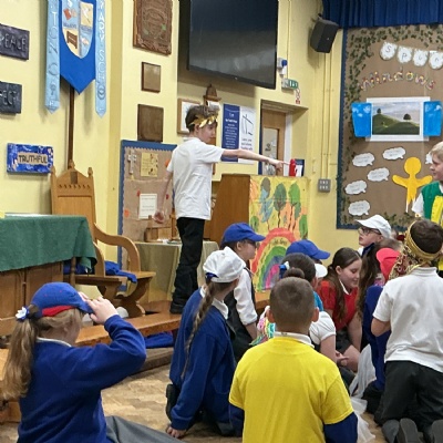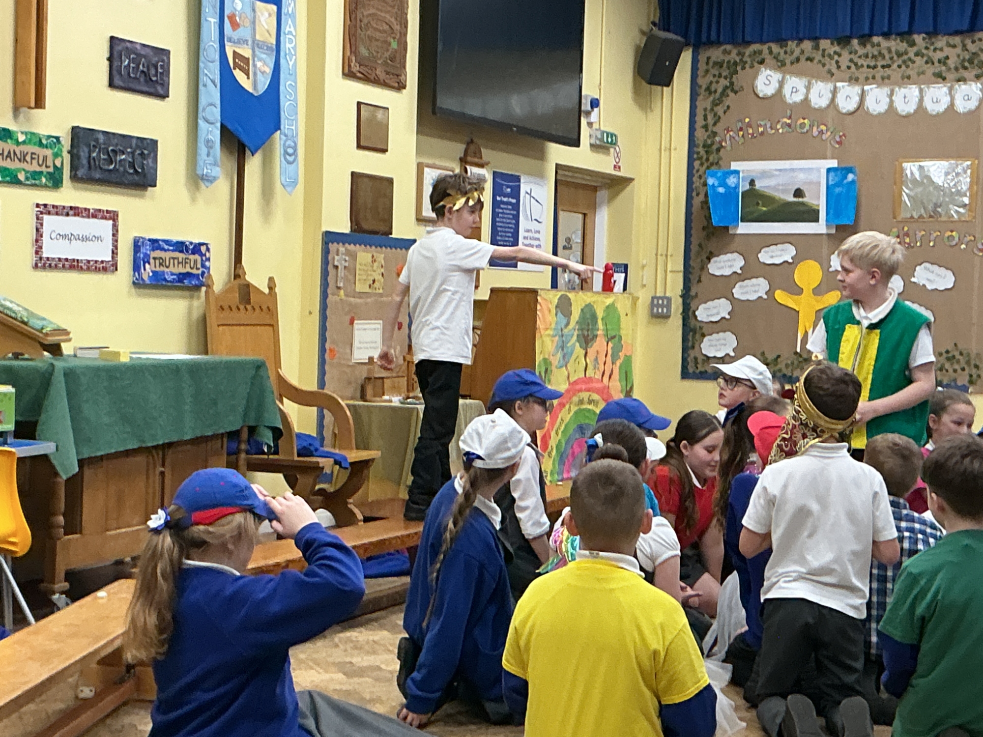 During R.E., we looked at different bible stories where Jesus performed miracles. We acted it out and performed it. The Bible teaches that Jesus is the Son of God through stories, words and miracles that show God’s power working through him. God calls Jesus his Son at his baptism and Jesus shows God’s love by caring for people and performing miracles, such as Jesus feeding the 5,000 with a small amount of food, walking on water to help his friends not be afraid and curing people with leprosy to make them well again. These stories helped us understand who Jesus is and why Christians believe he is special.