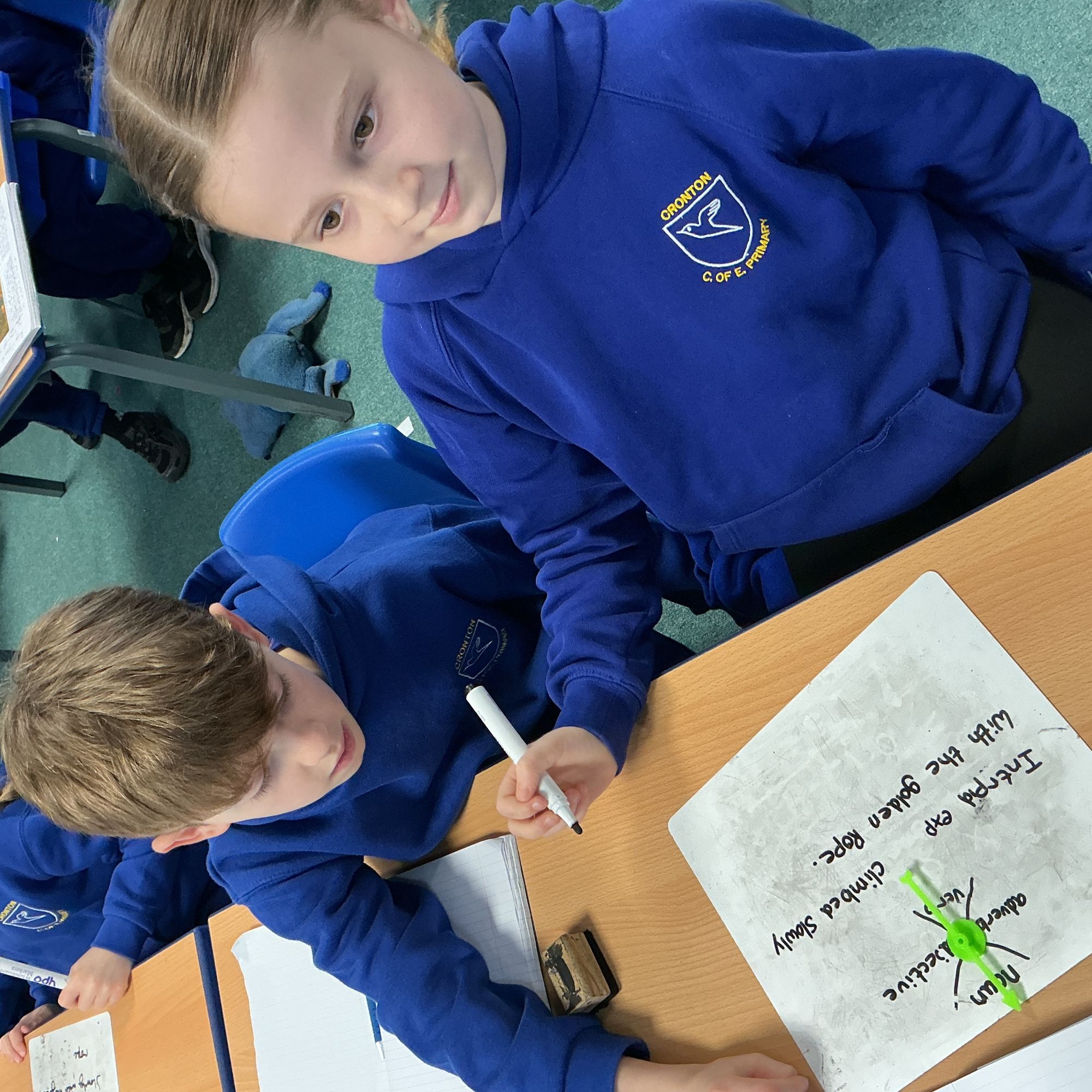 To develop some of our sentences further and explore different word classes, we used a spinner to amend them and experiment with them.