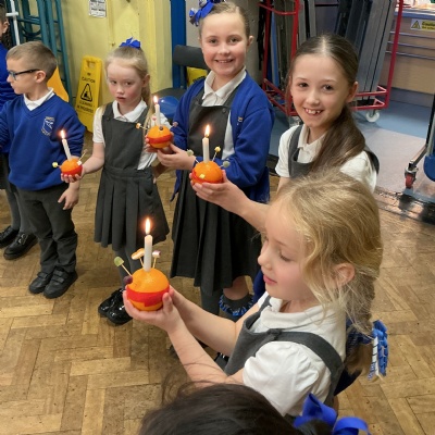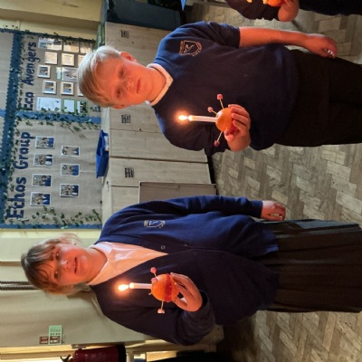 In R.E., we have been continuing with our topic of 'light' and Jesus. We learnt about Christingles and what they signify.