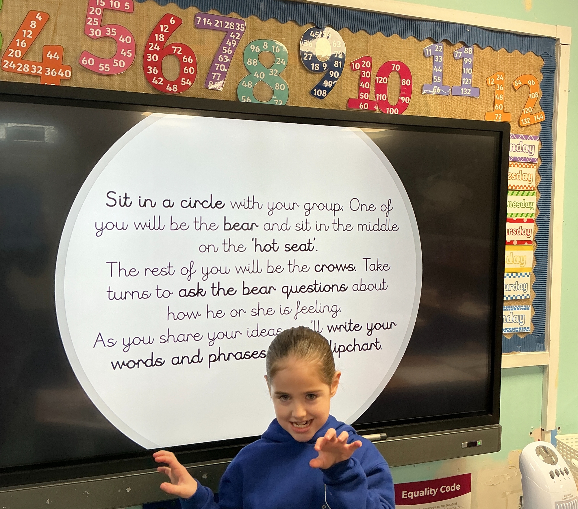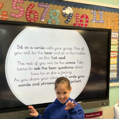 In English, we have continued exploring our vehicle text 'Leaf'. We have started to use role play and hot seating to analyse different scenes within the story using freeze frames. Then, we thought about how Leaf was feeling and started to write a character description.