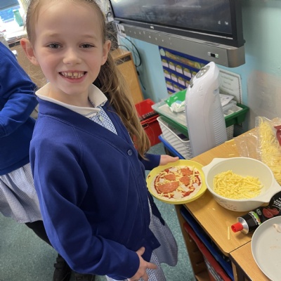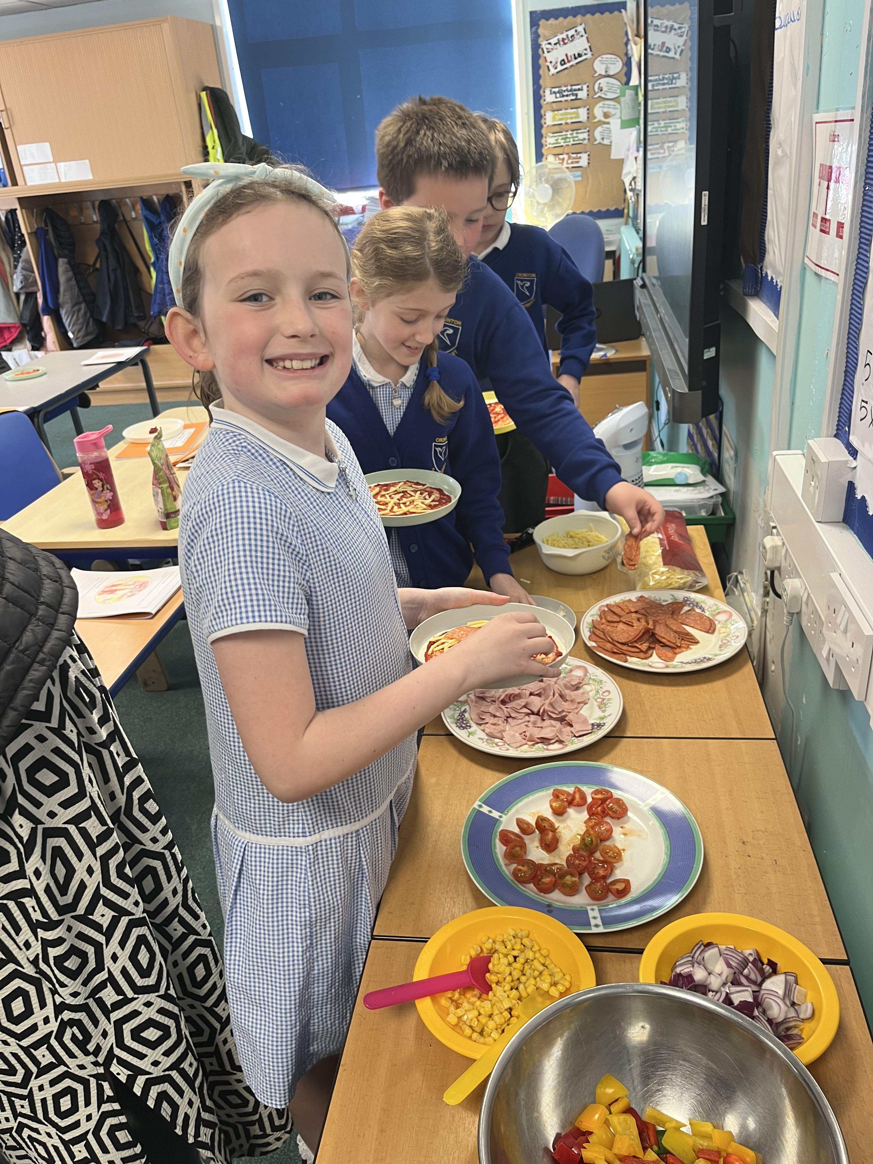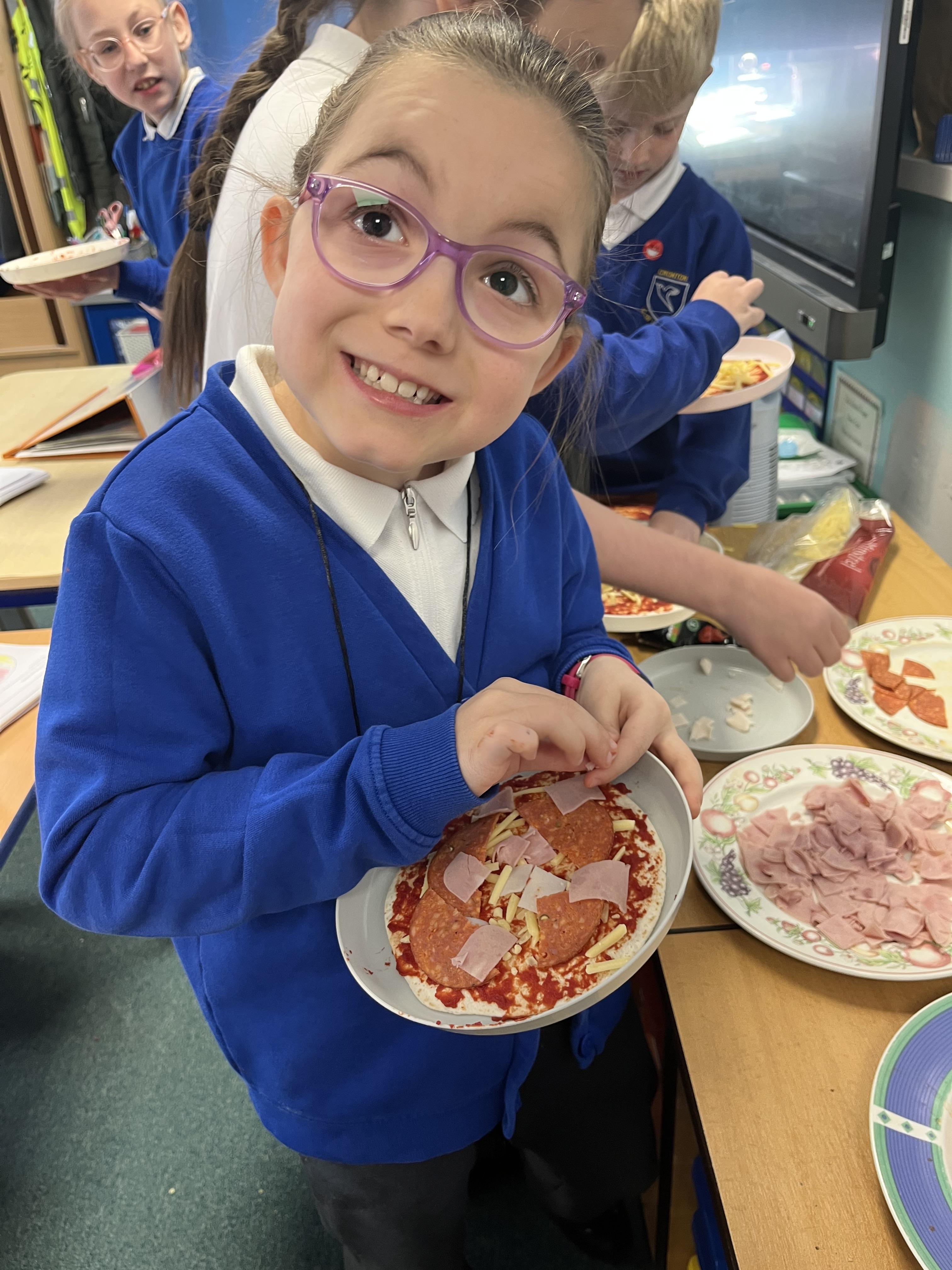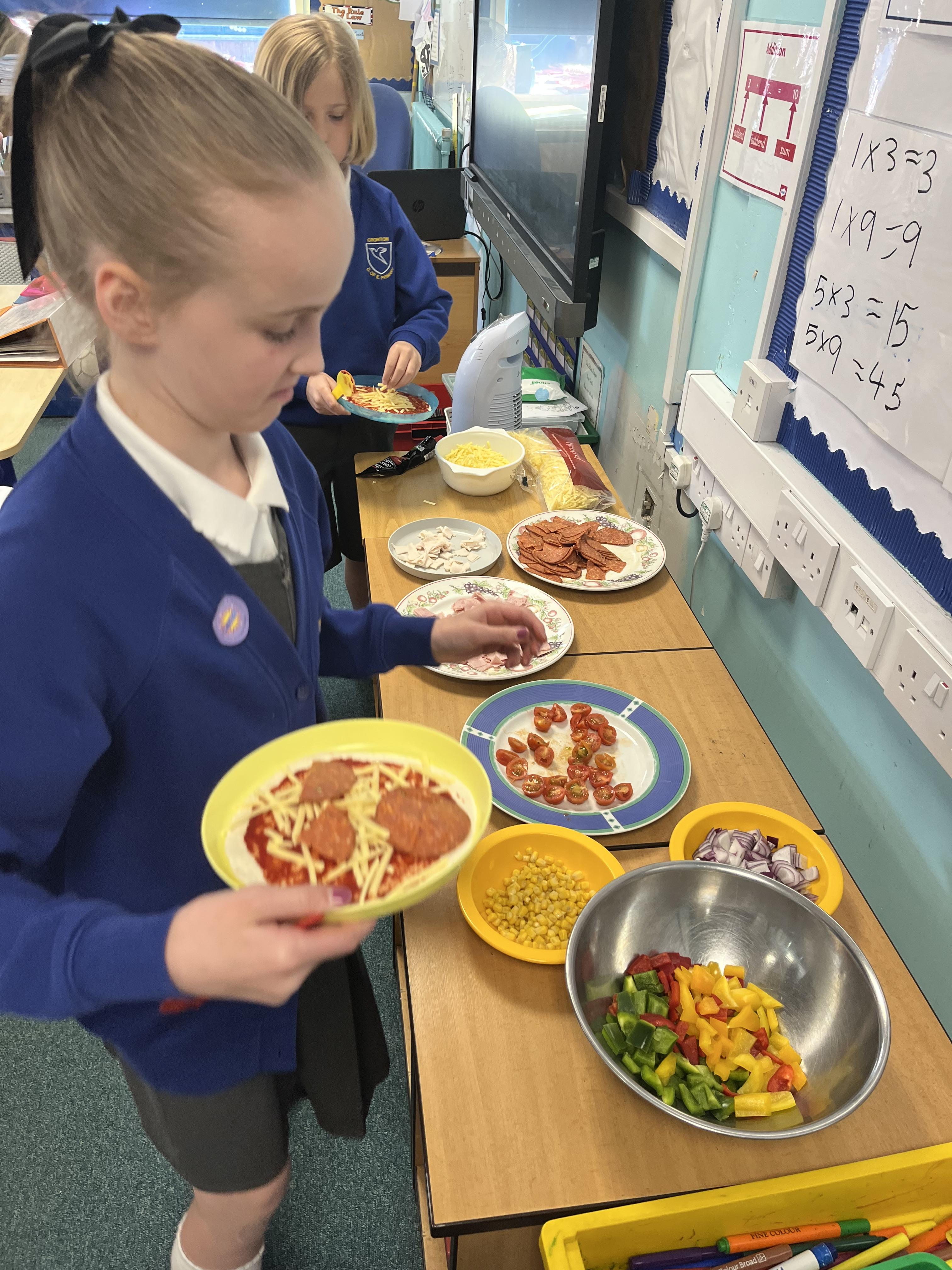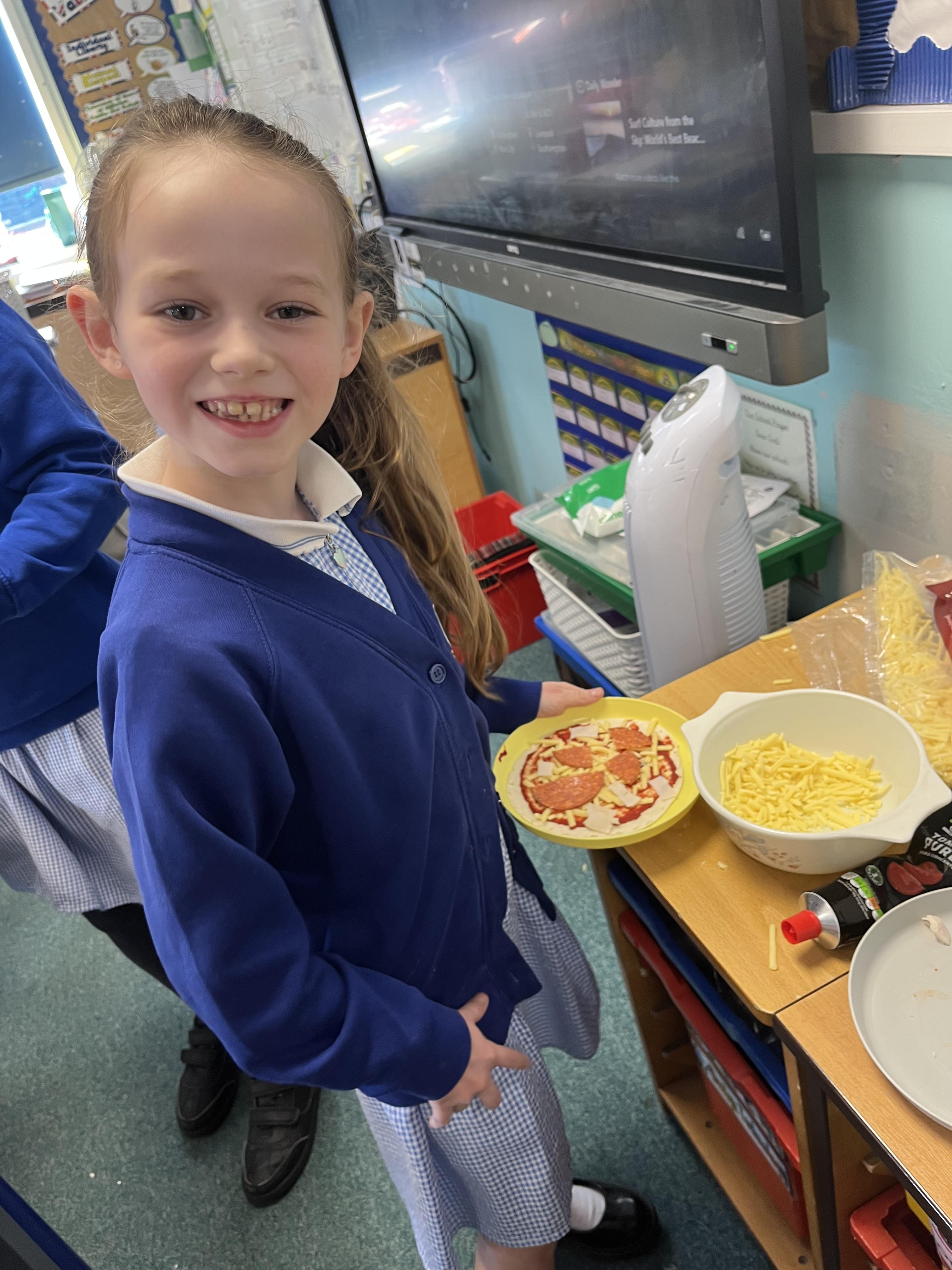 In D.T., we have been making pizzas. The children thoroughly enjoyed this life skill and fully embraced the learning experience and even brought in their own extra toppings!