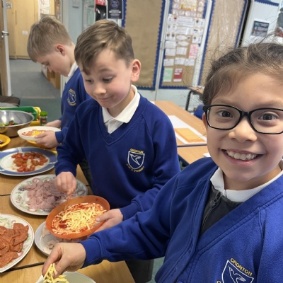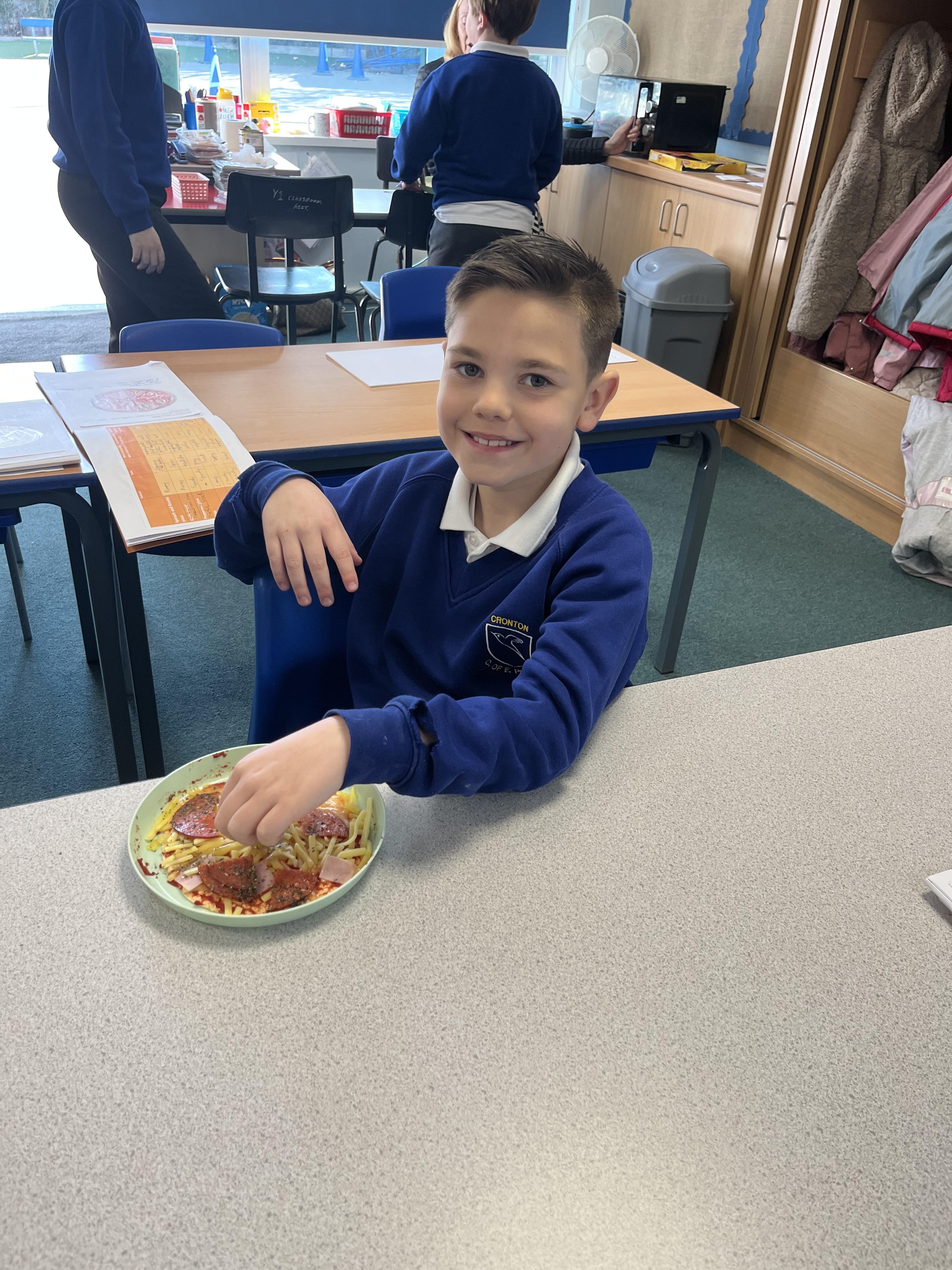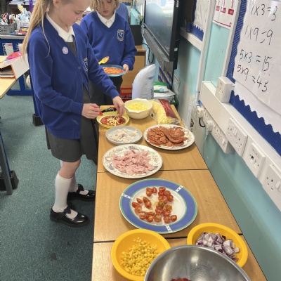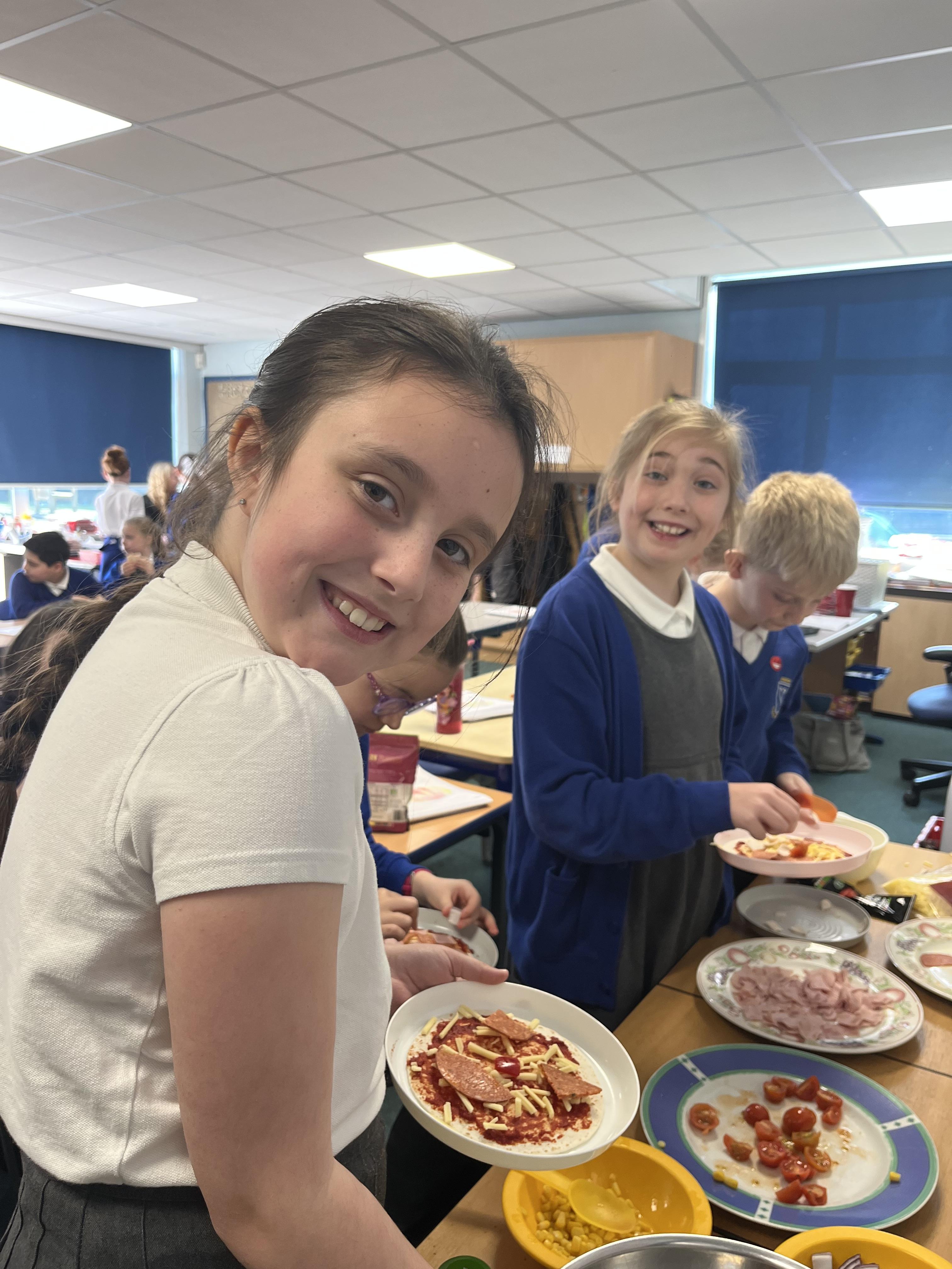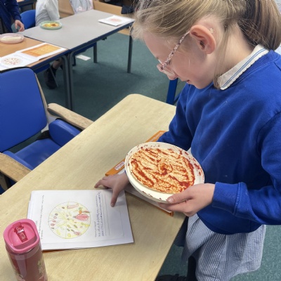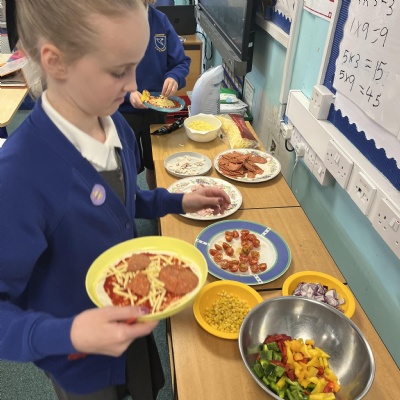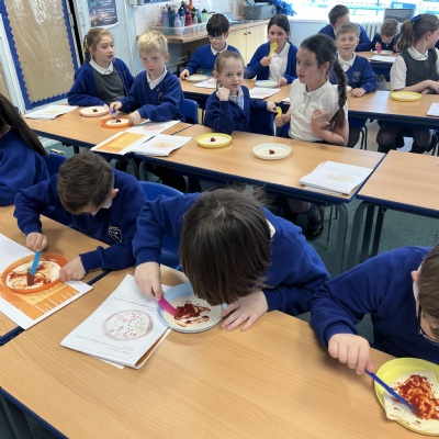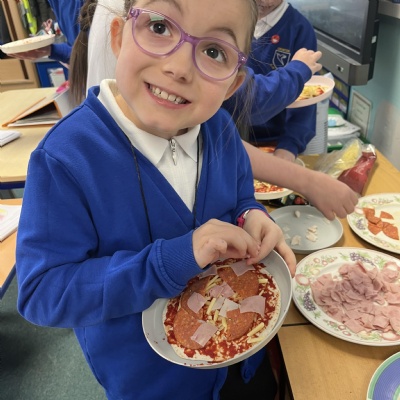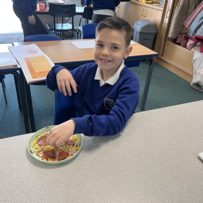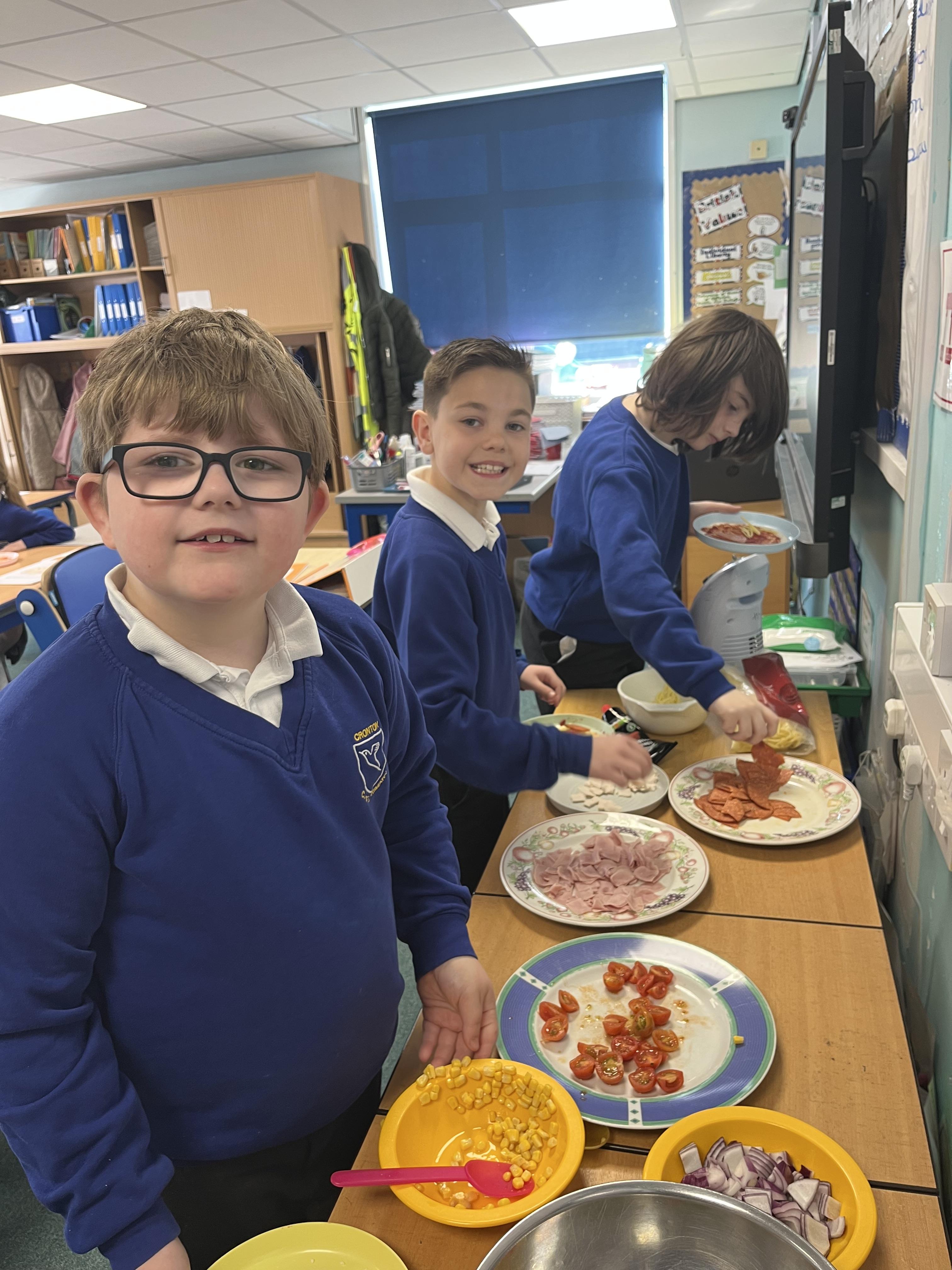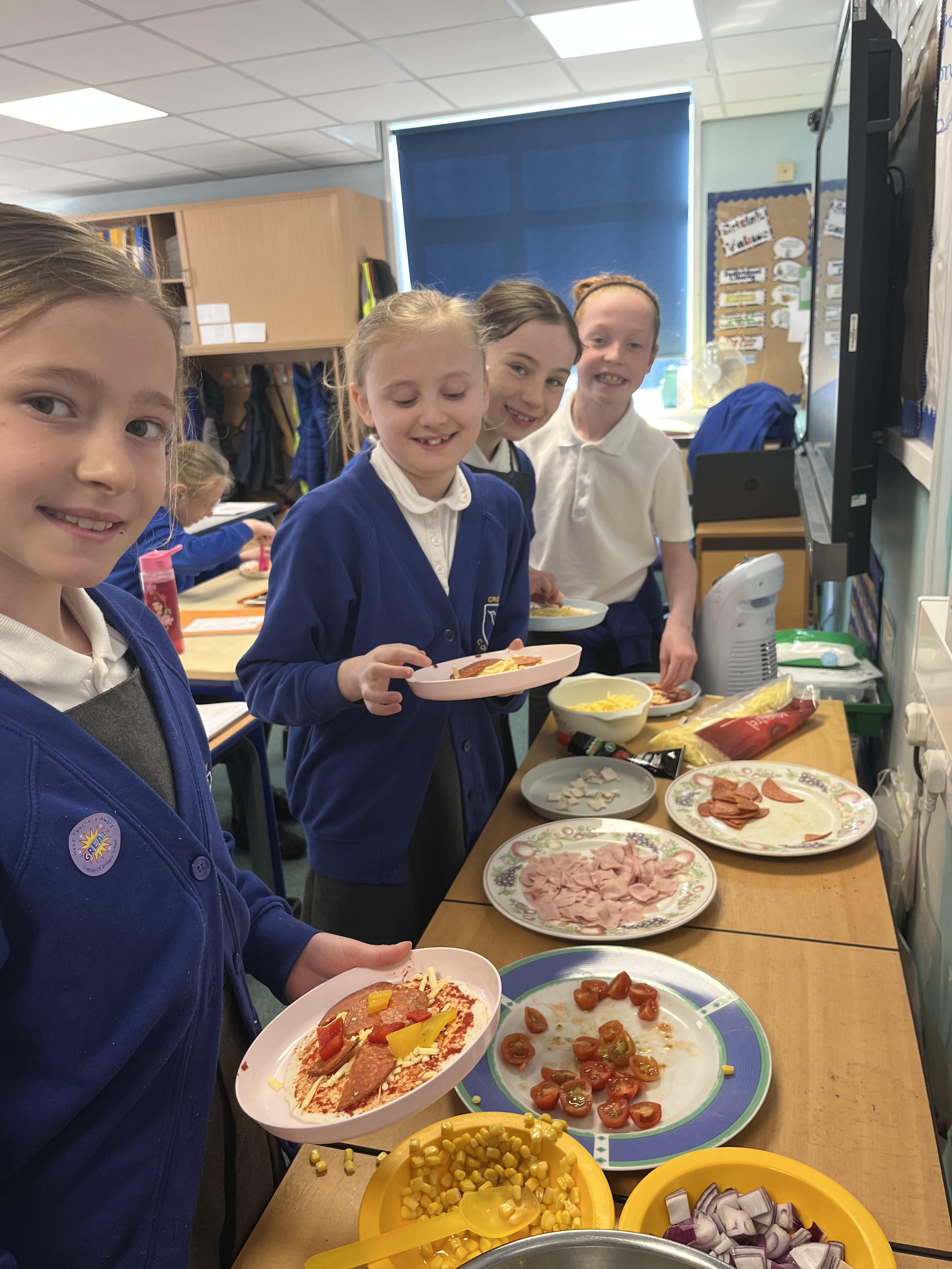 In D.T., we have been making pizzas. The children thoroughly enjoyed this life skill and fully embraced the learning experience and even brought in their own extra toppings!