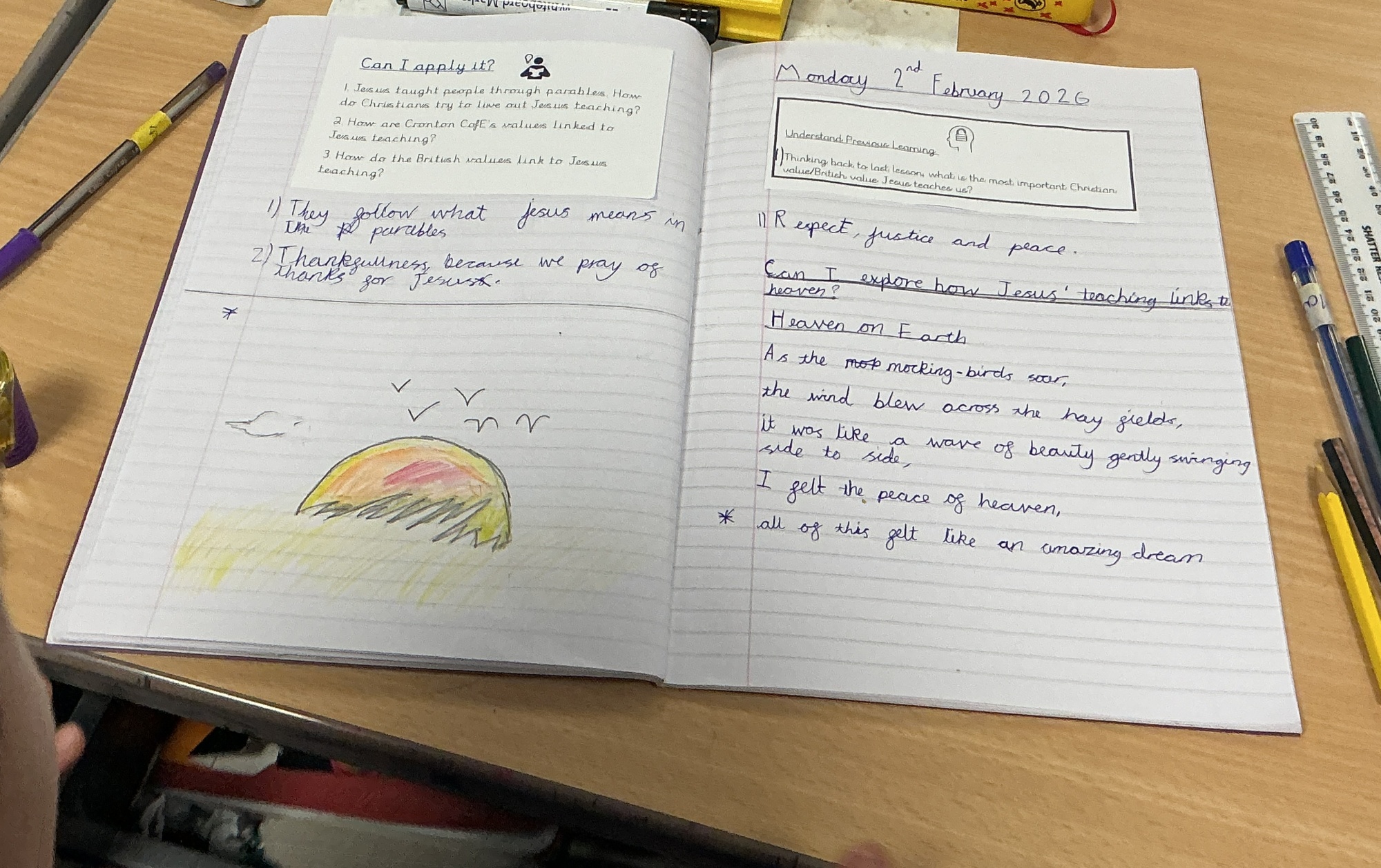 In RE, we looked at what Heaven on Earth would look like and the children wrote some beautiful poetry and drew imaginative images. We looked at our Christian Values and how Jesus teaches them through the Parables.