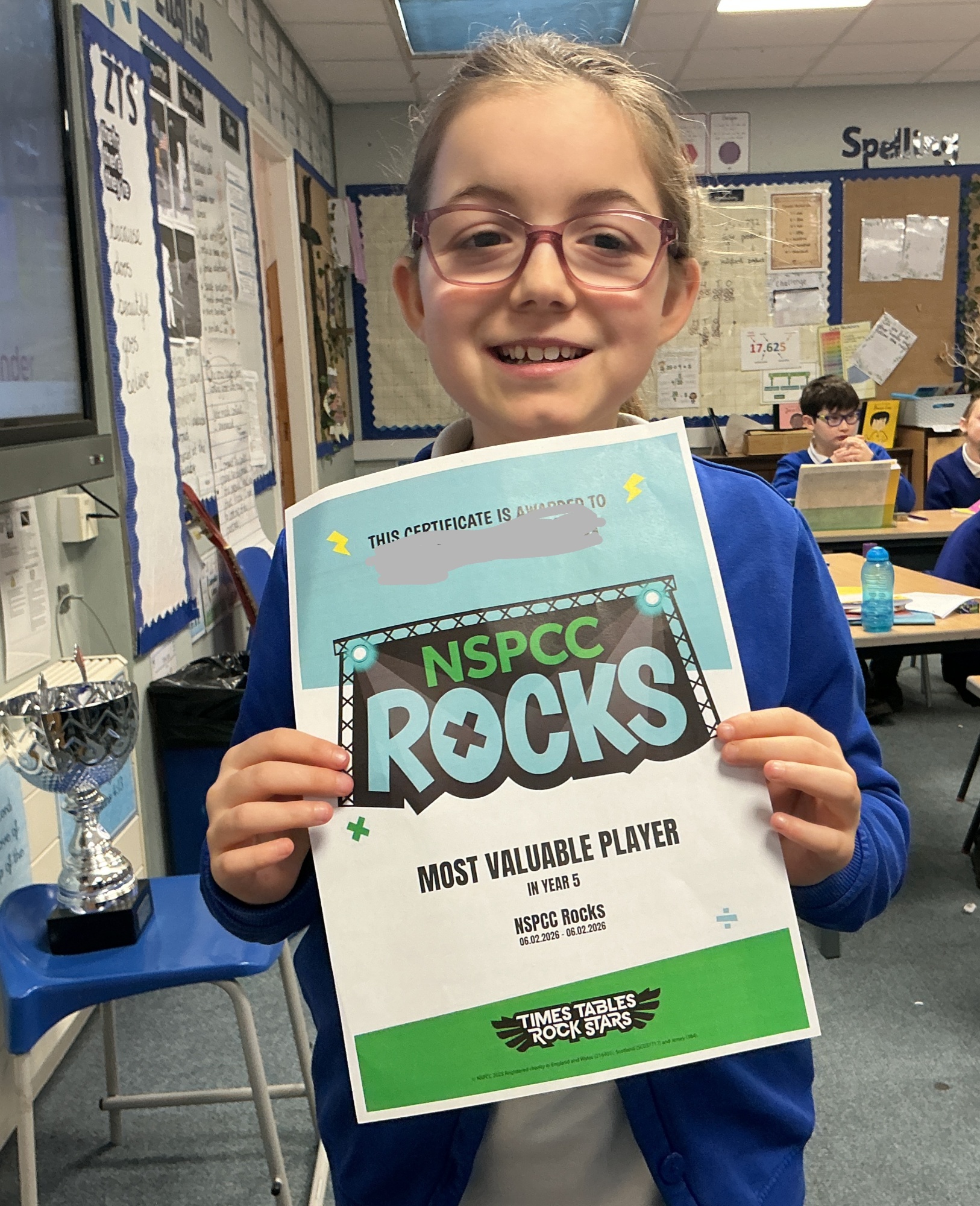 Well done to one of our class who was recognised as Most Valuable player in the NSPCC times table challenge. Well done!