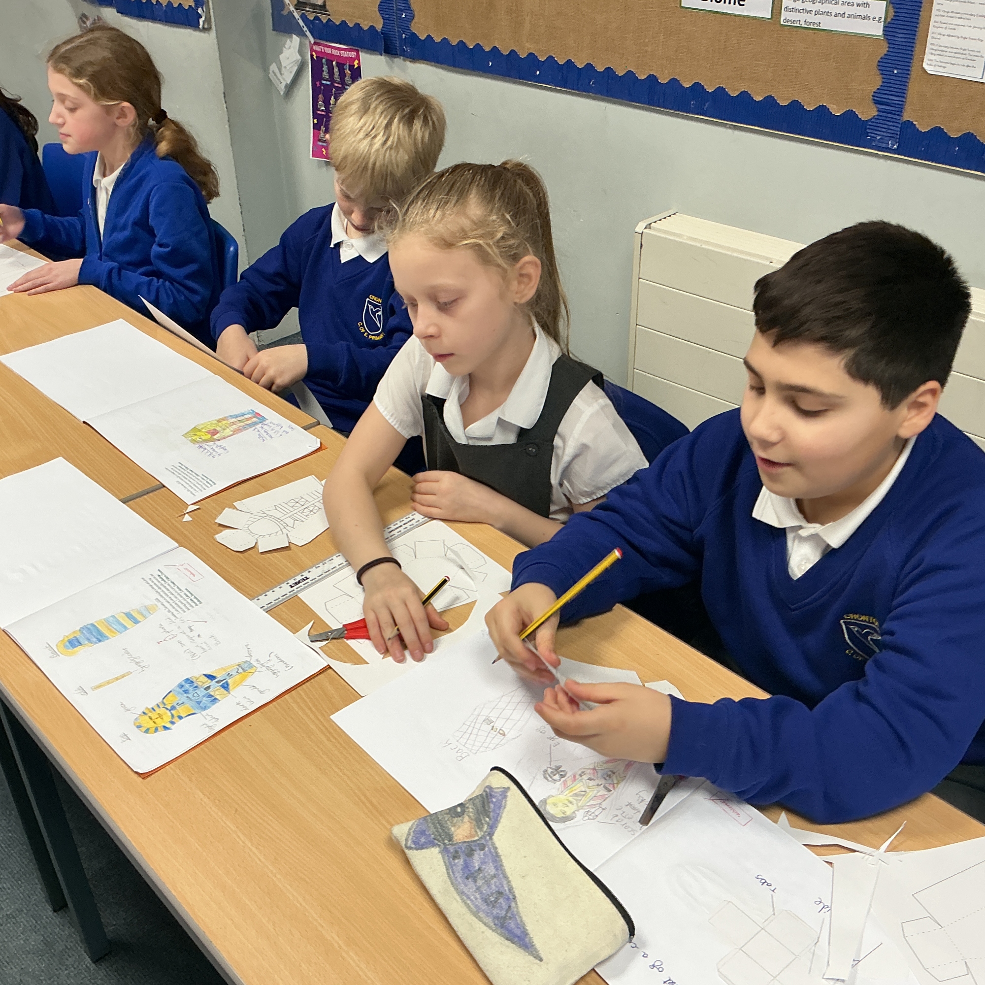 In geography we looked closely at Texas. In science, we have looked at how earthquakes and volcanoes happen. The children completed an end of topic assessment with a double page spread. In D.T. we have started to cut and design our template for our sarcophagus.