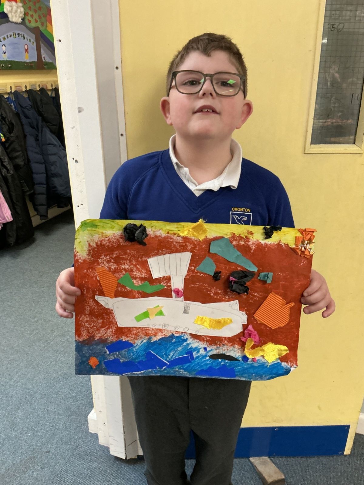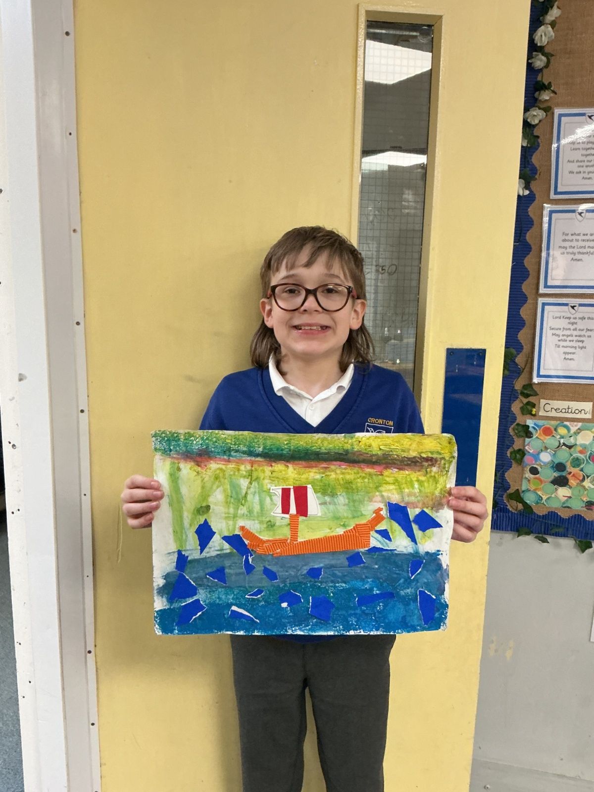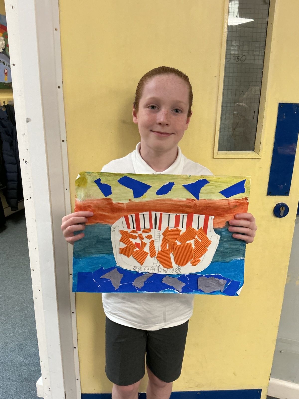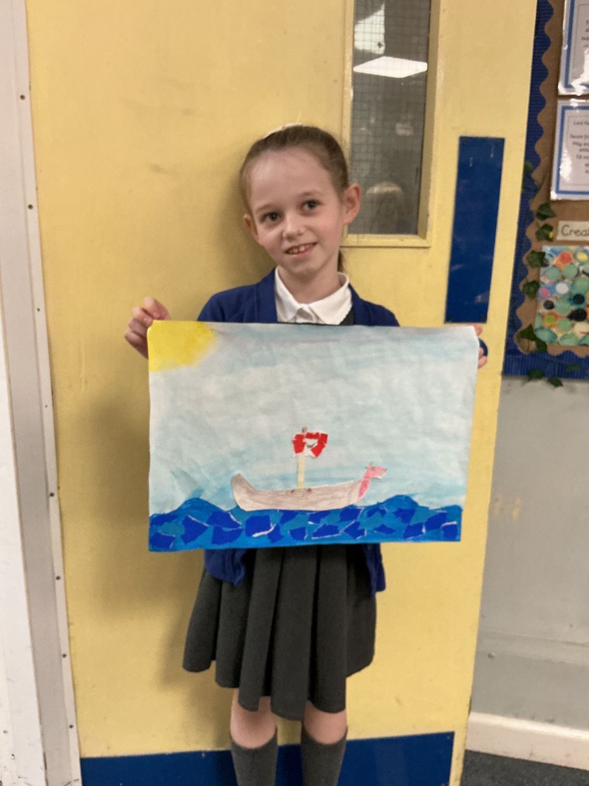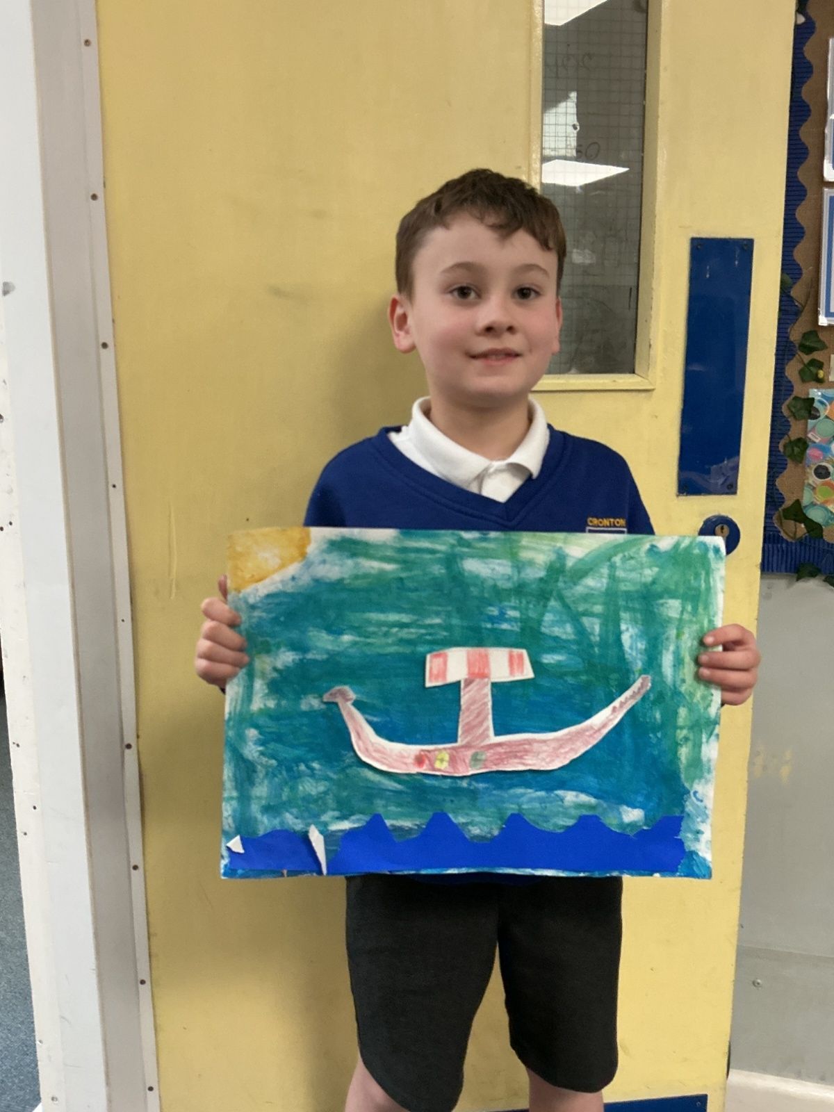 In history, The children have continued to look at the Vikings and in art use this inspiration of the Viking longboat to complete a collage.