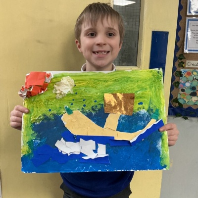 In our art, the children have created some excellent collages using different techniques. Have a look at some of the children's work.