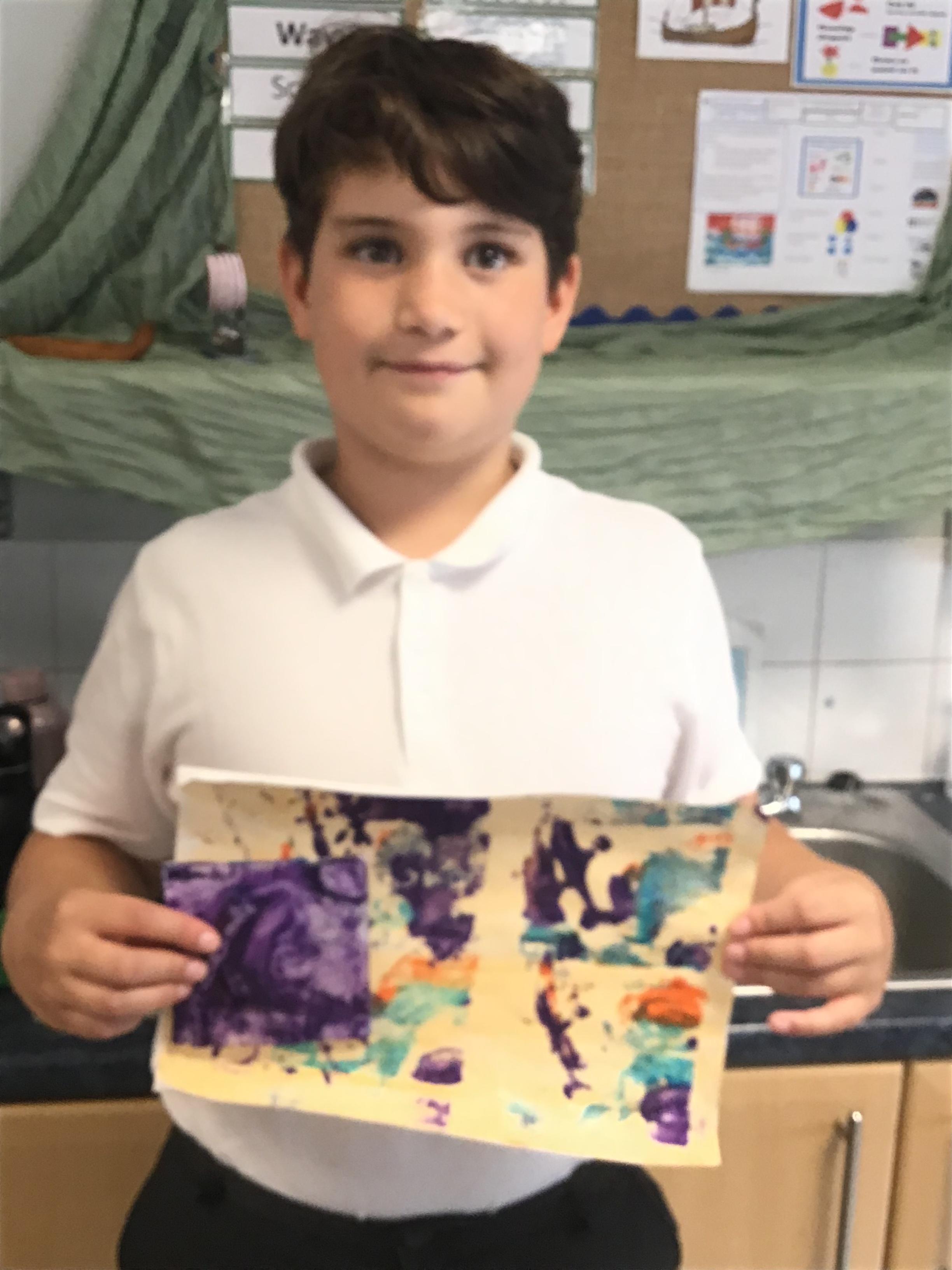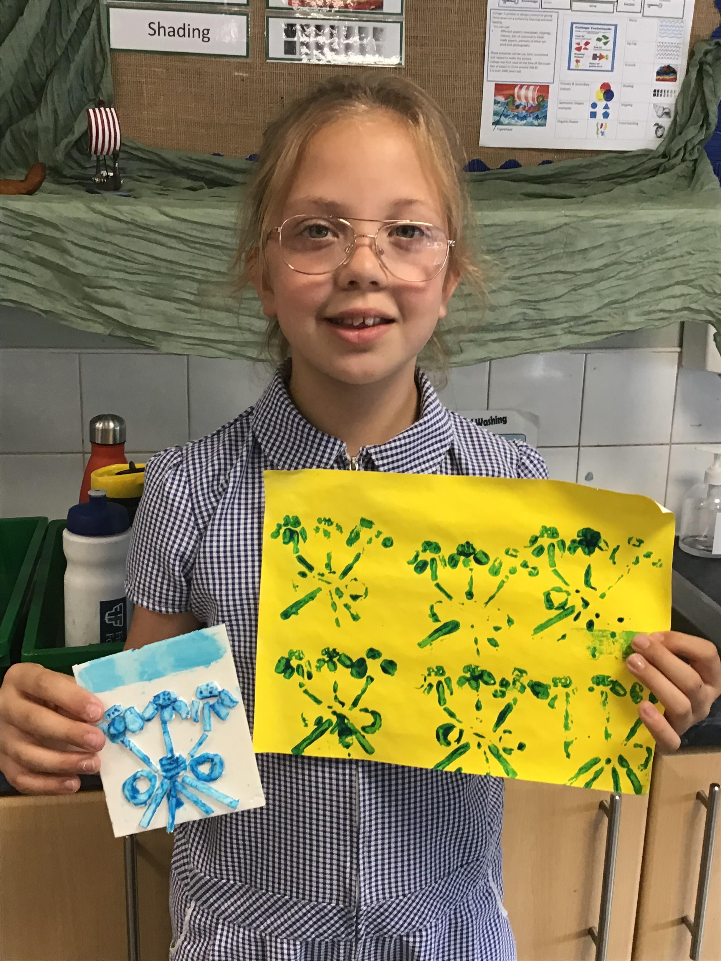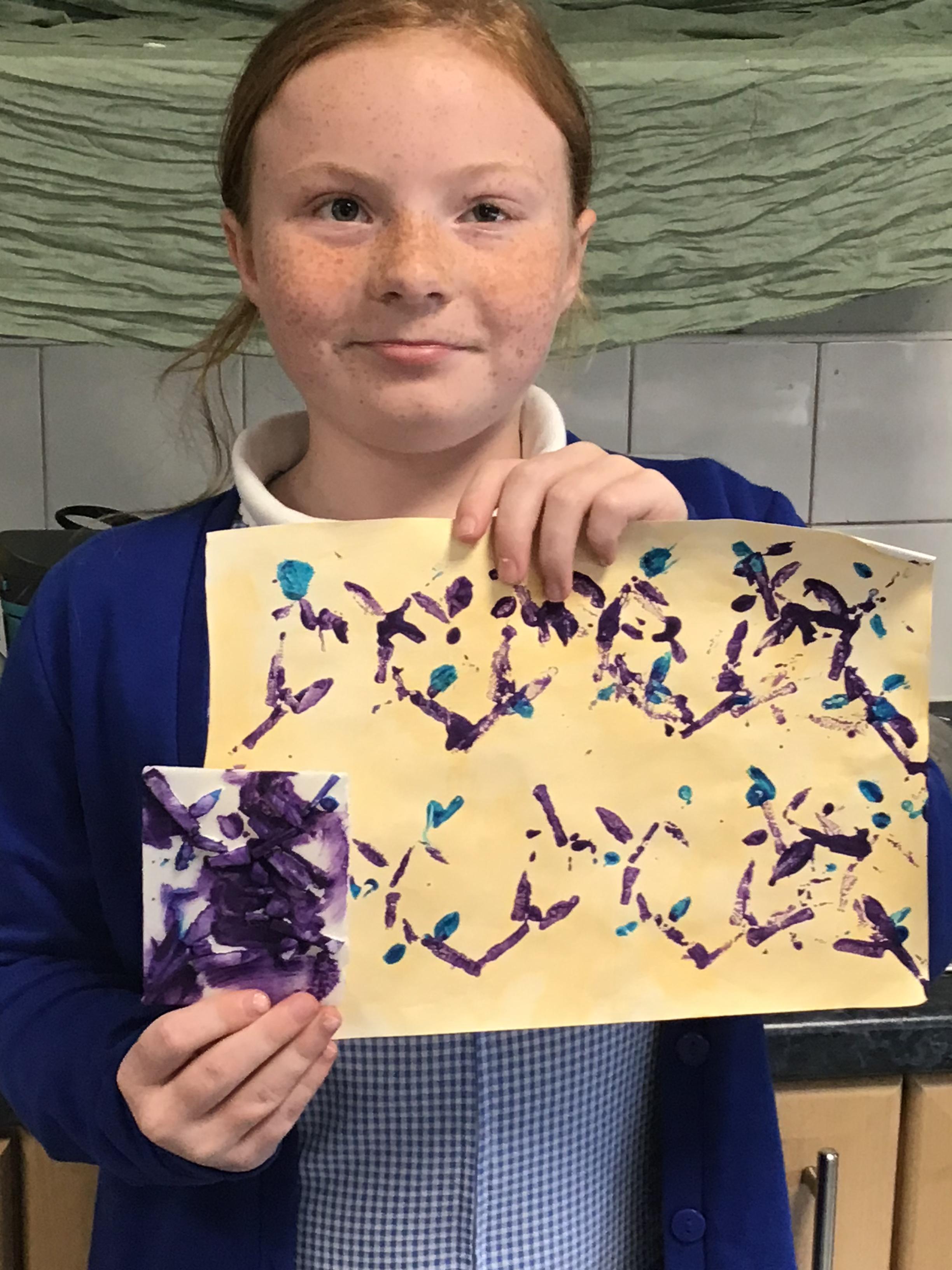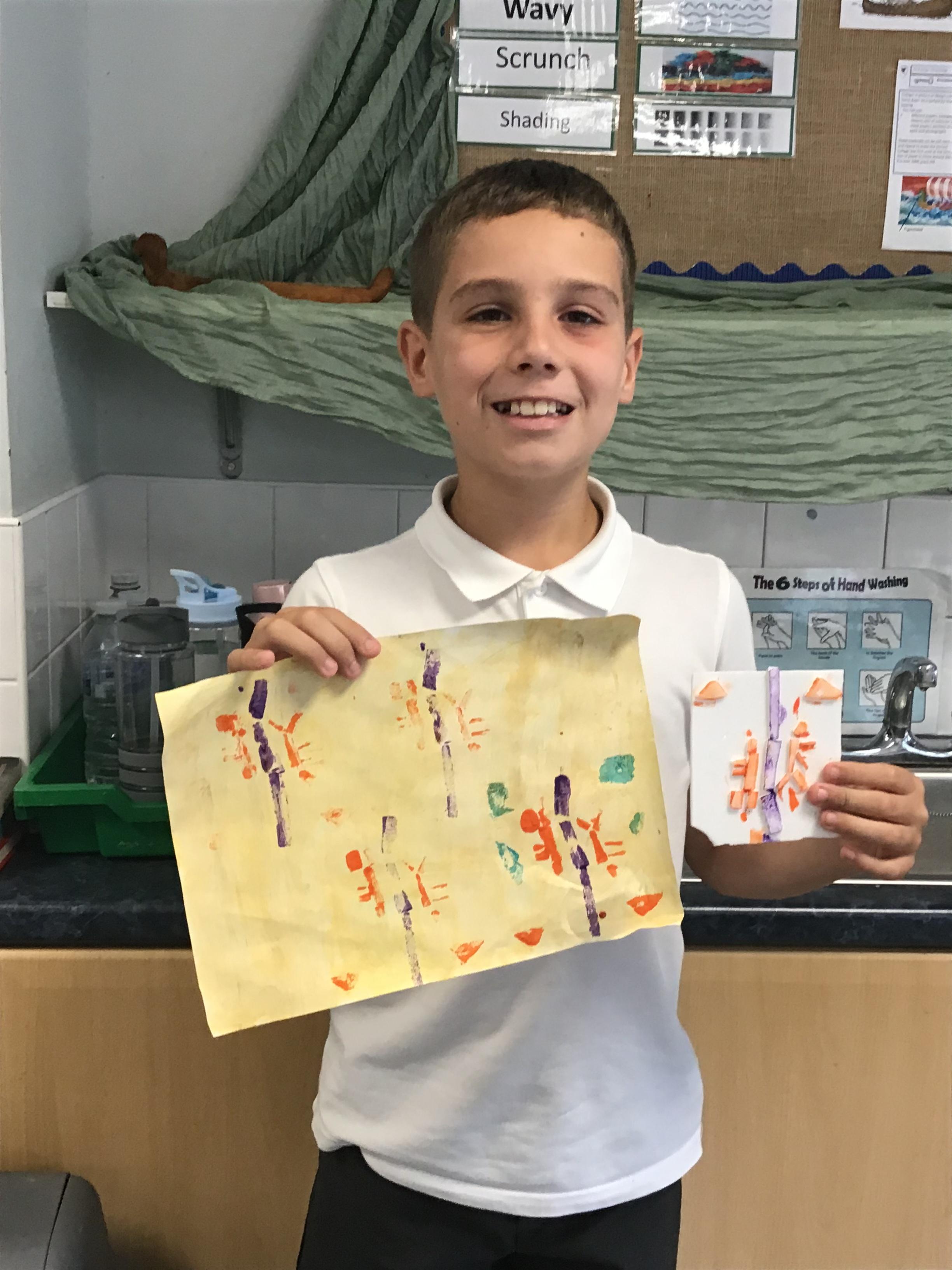 The children finished their printing tiles. Didn’t they do well. They worked hard to create a tile and then layered it for a finished piece.