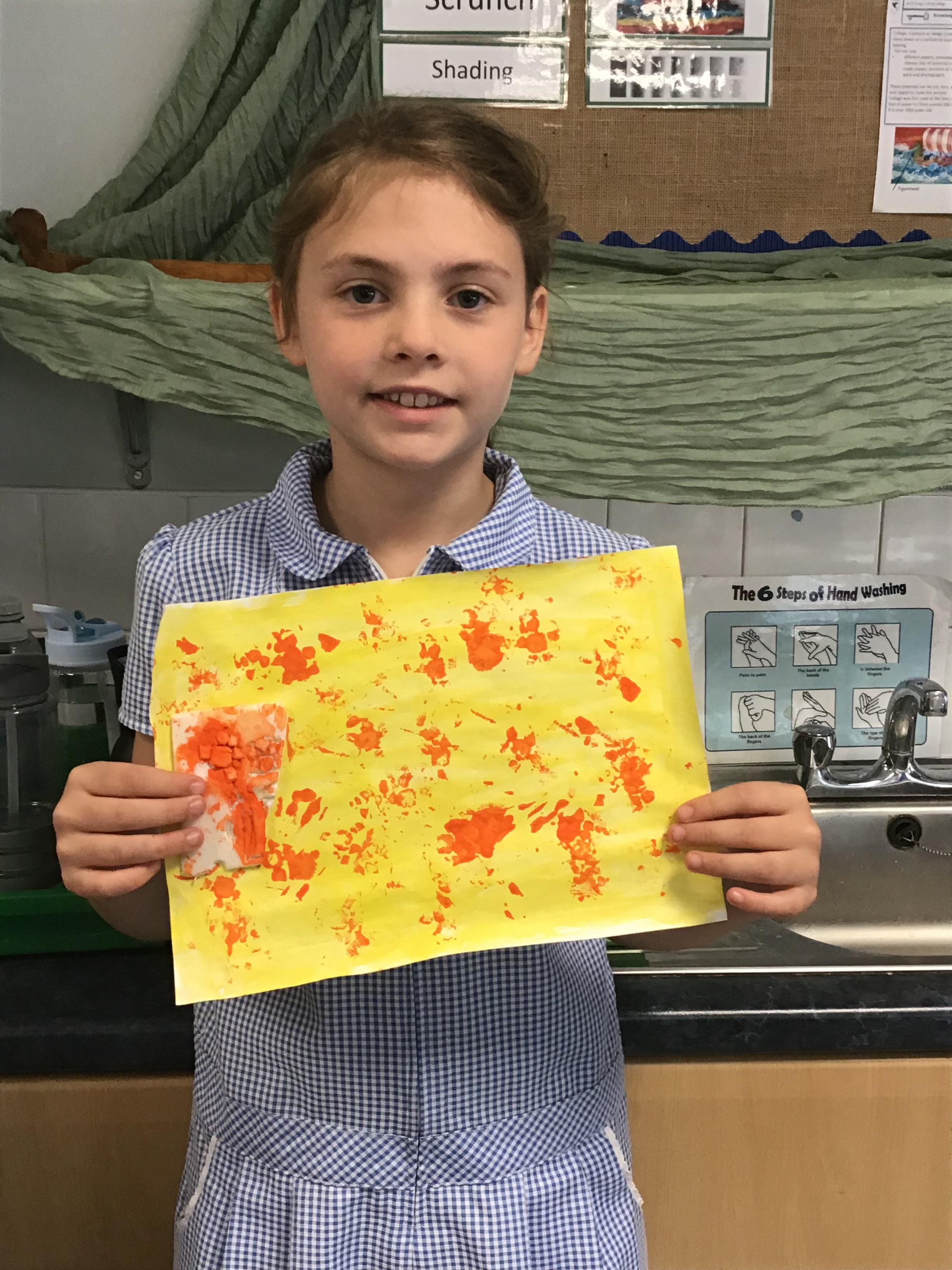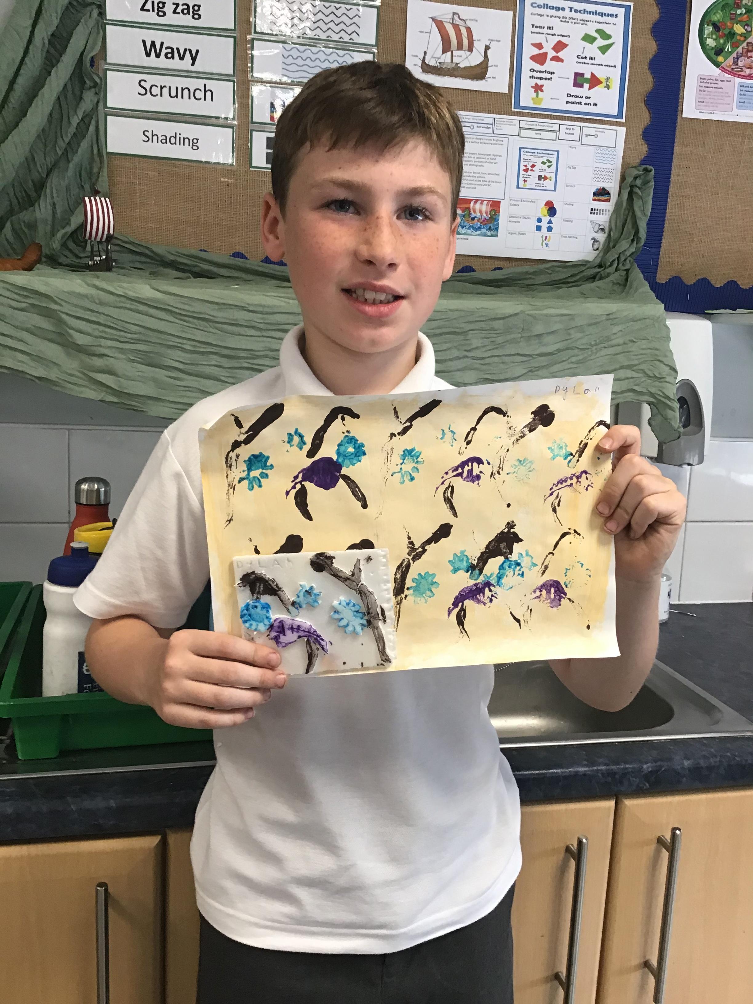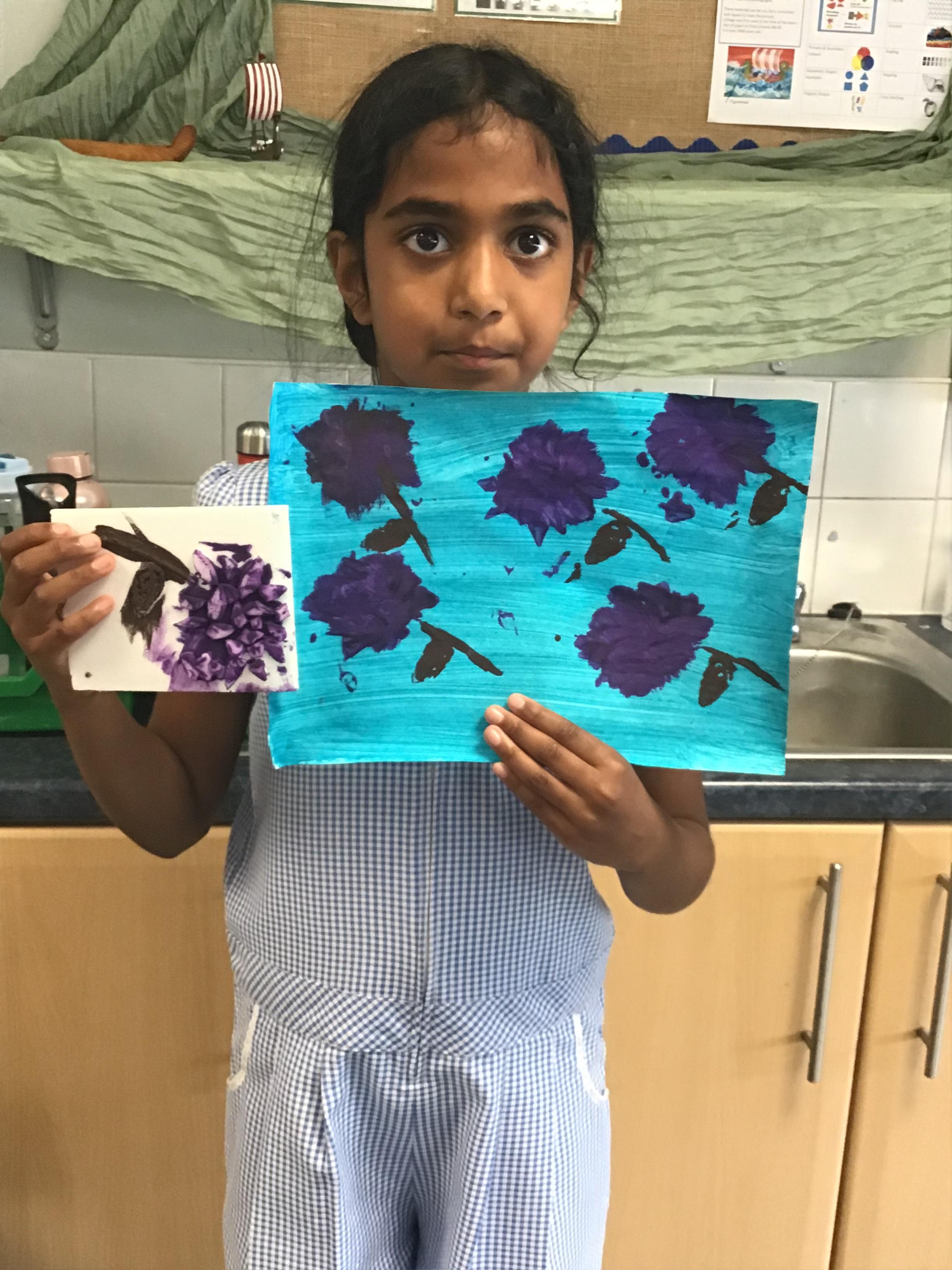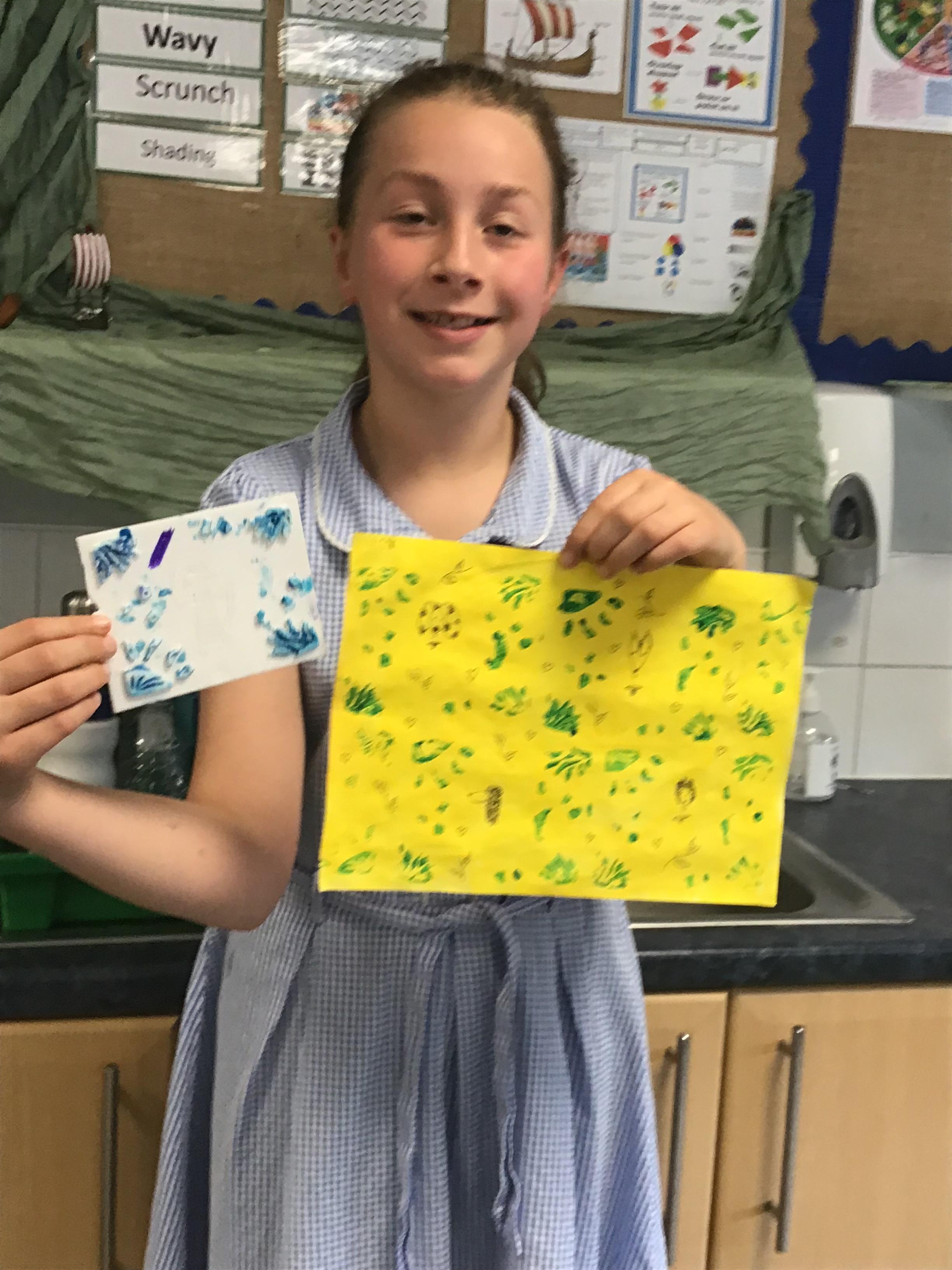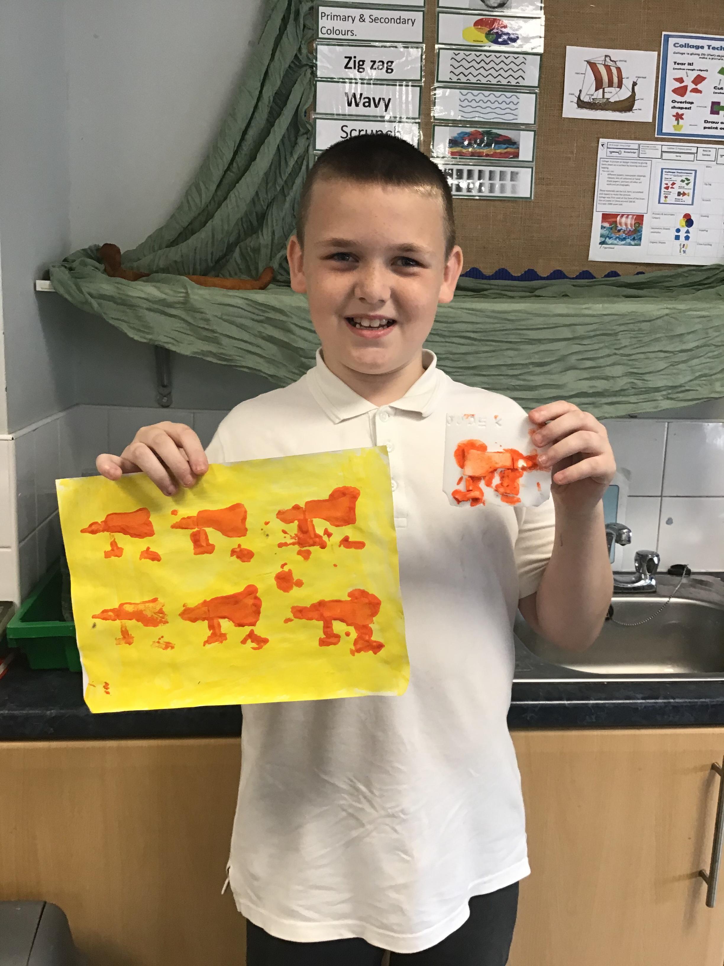 The children finished their printing tiles. Didn’t they do well. They worked hard to create a tile and then layered it for a finished piece.