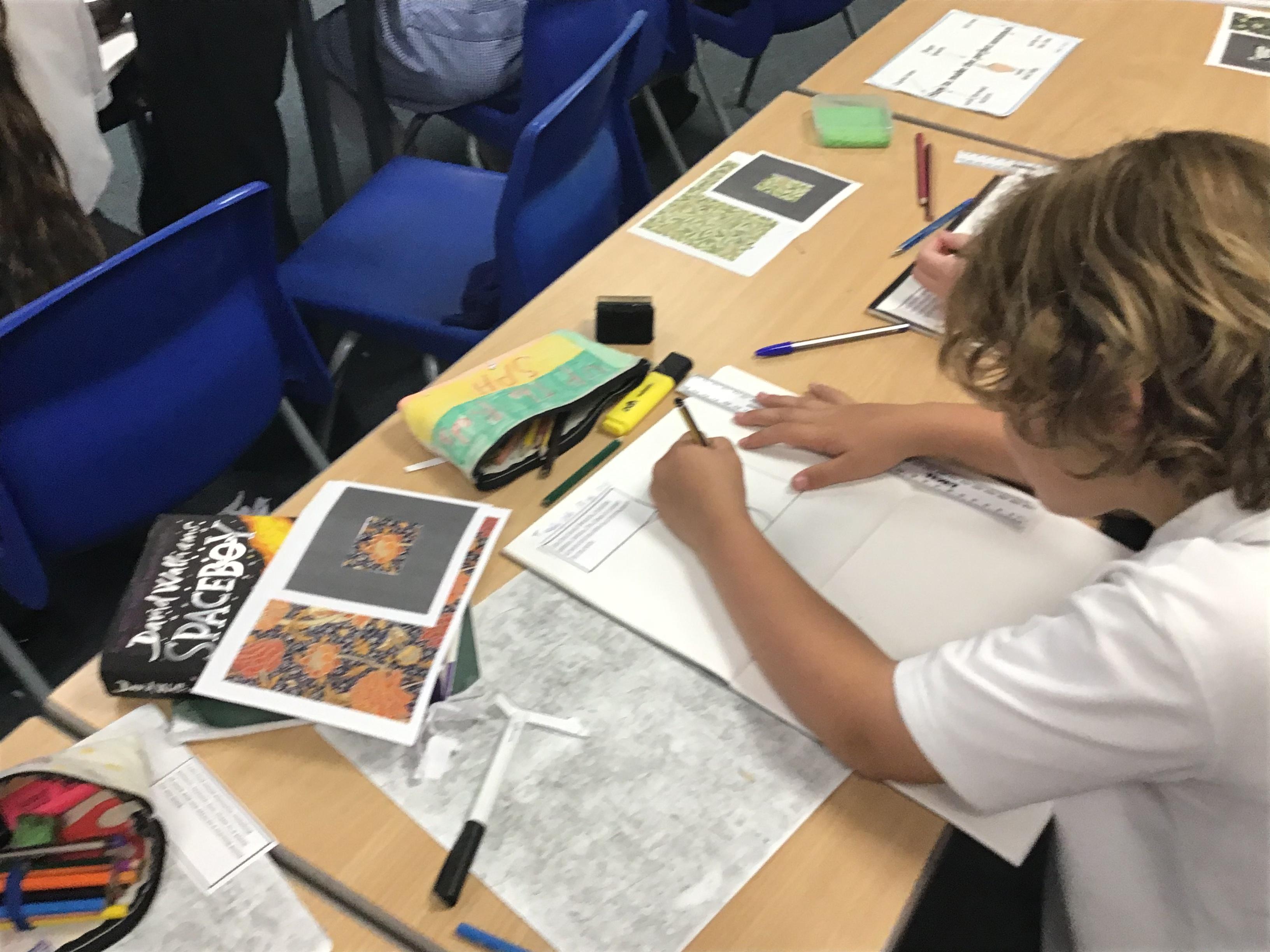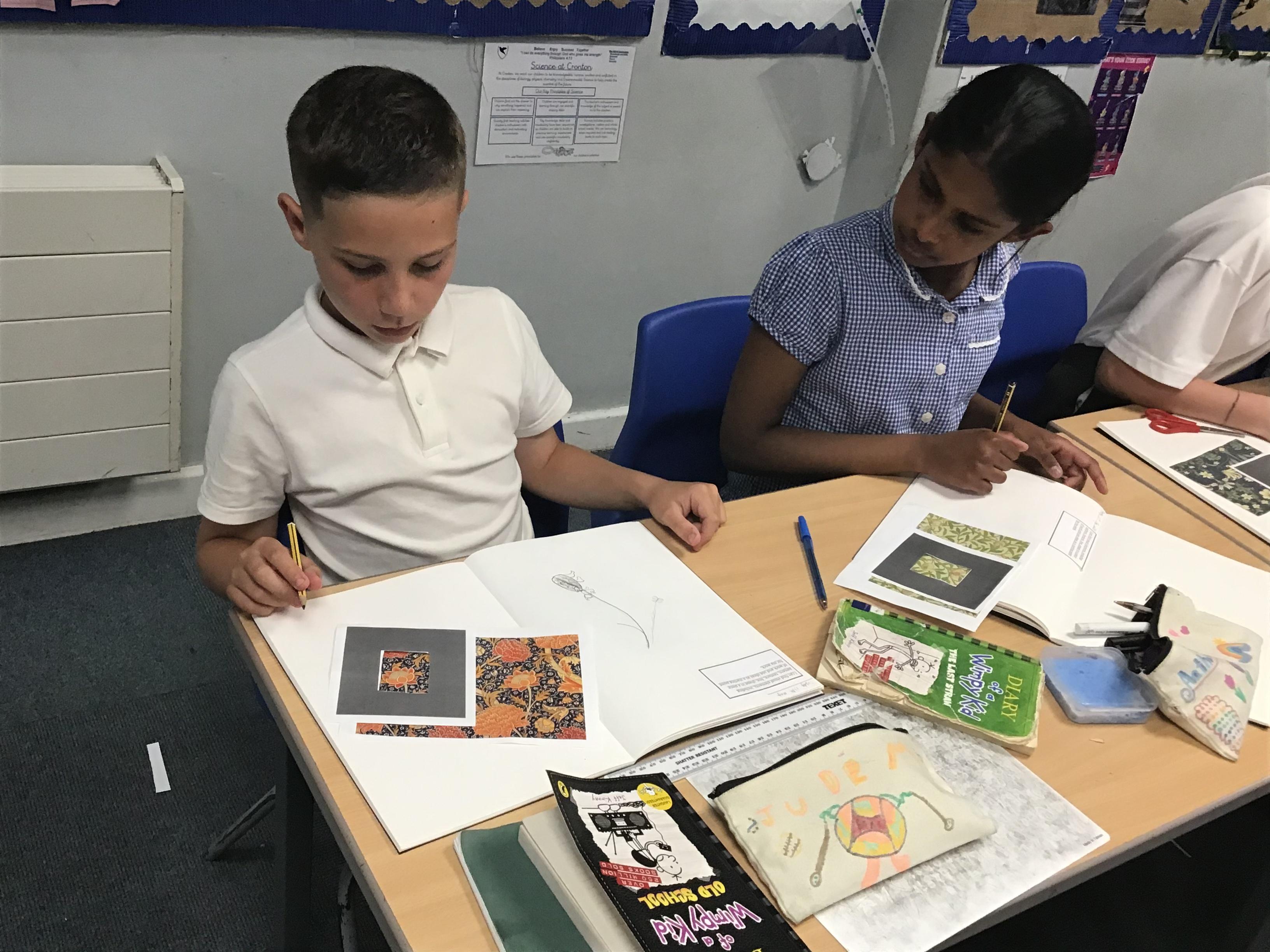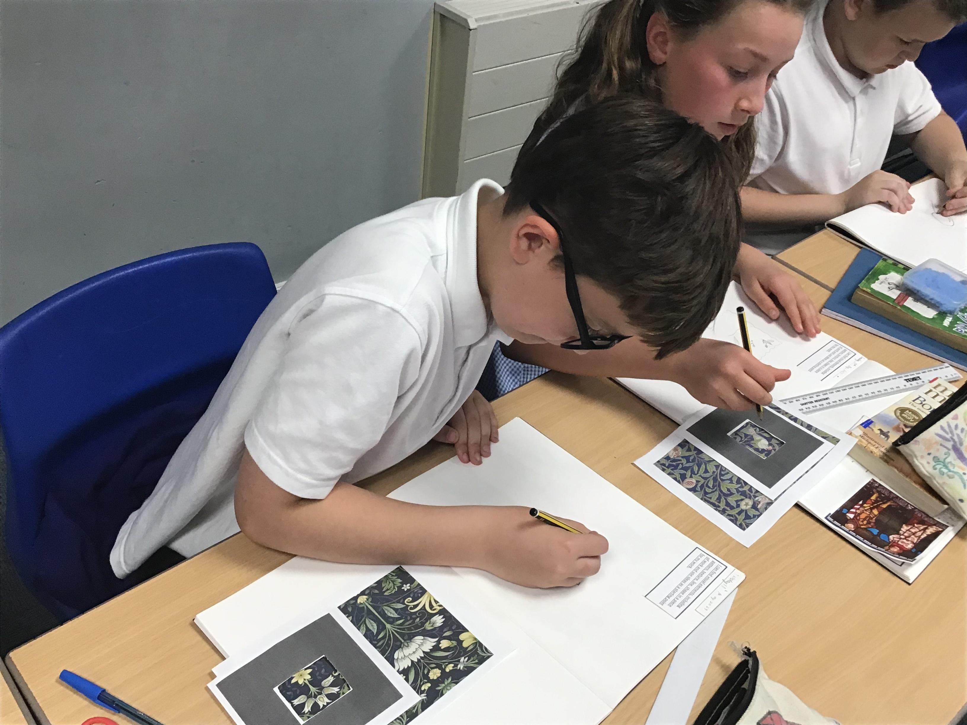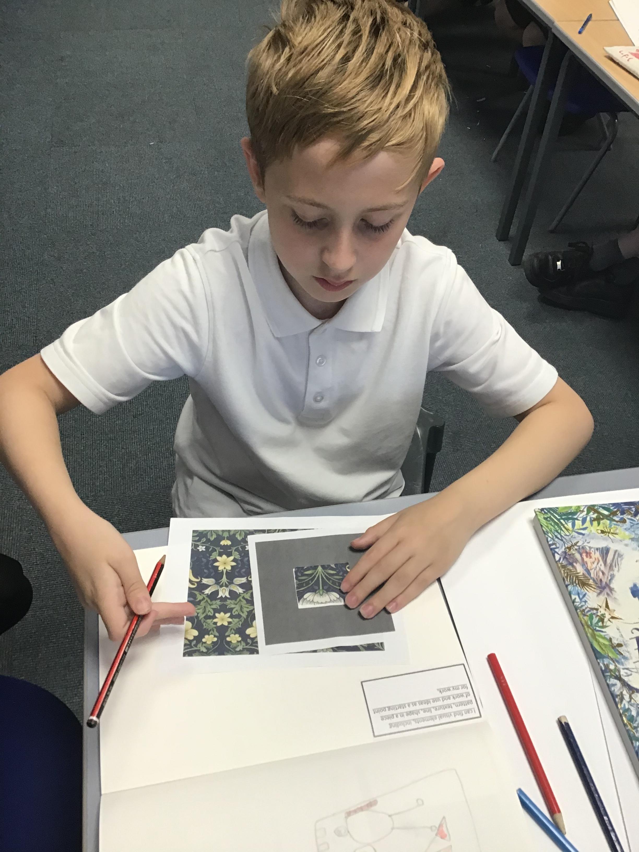 In art we have been looking at William Morris and used his designs to look closely at the intricate work he created. We had a go at replicating it by using a art technique using a view finder.
