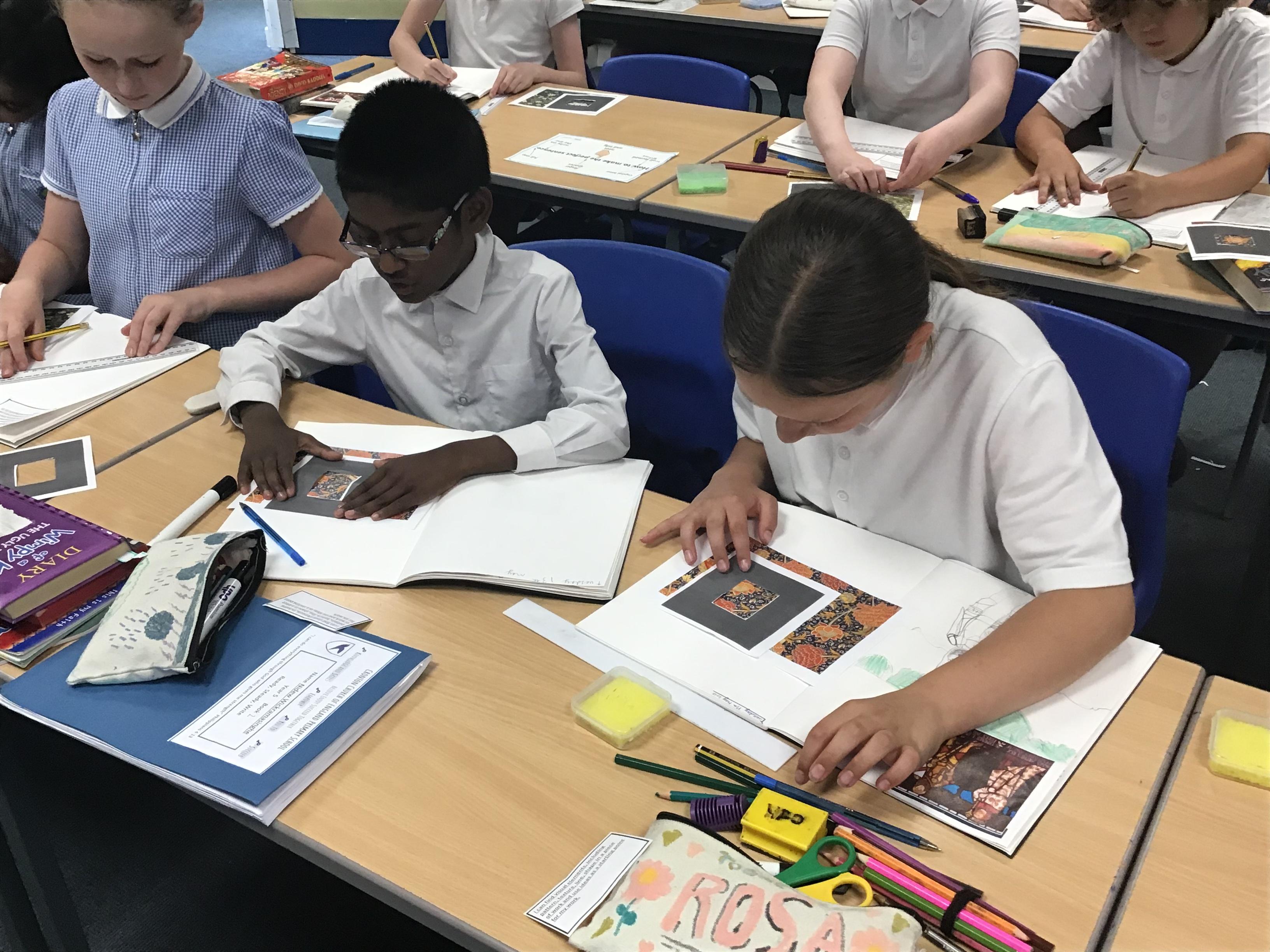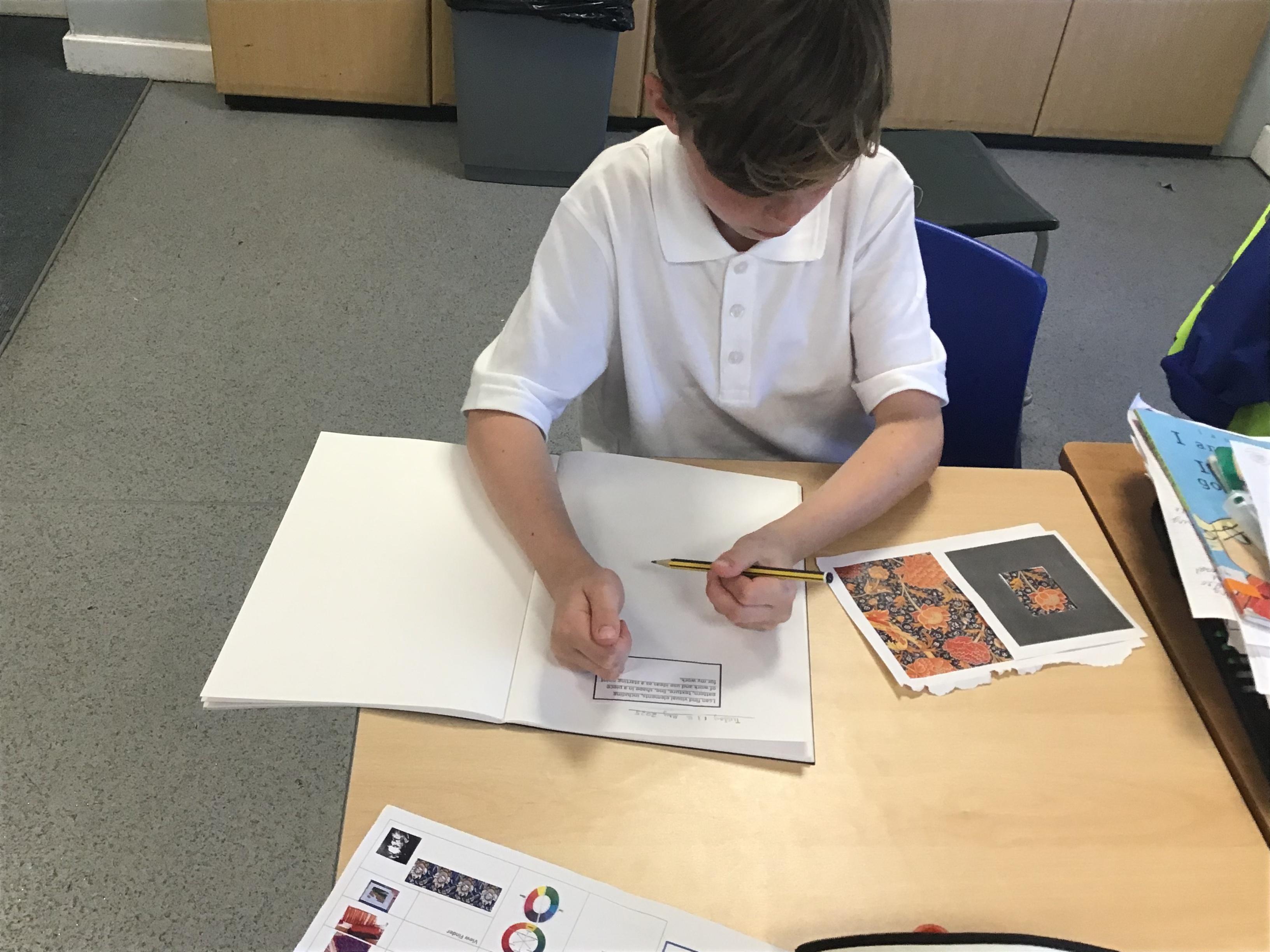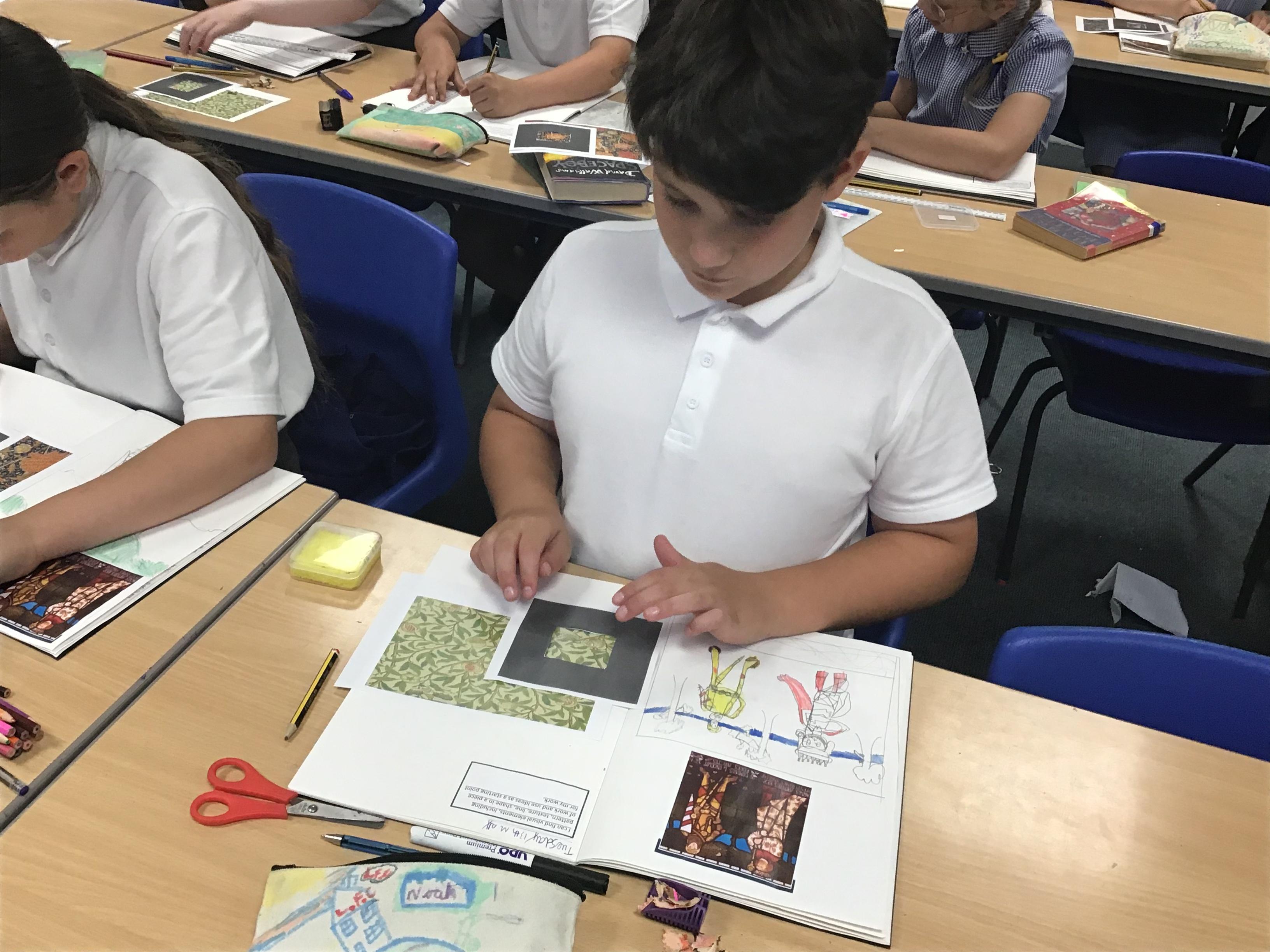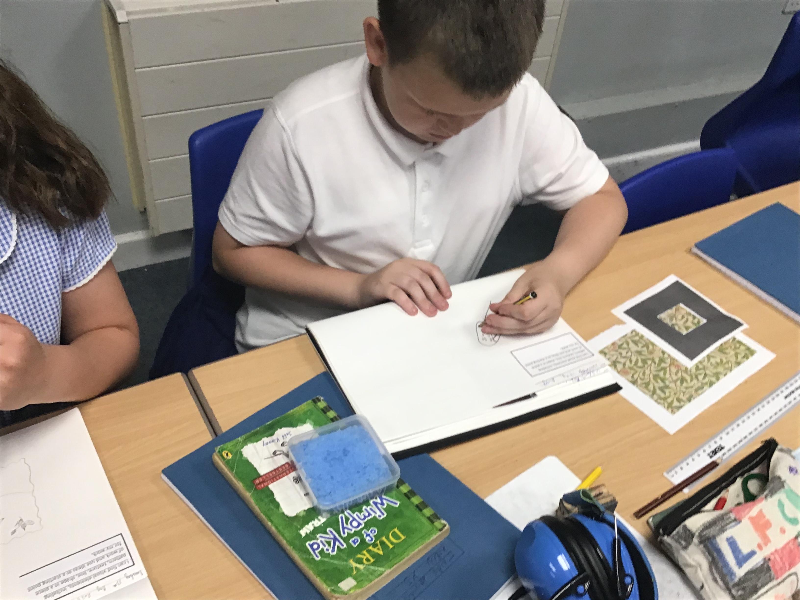In art we have been looking at William Morris and used his designs to look closely at the intricate work he created. We had a go at replicating it by using a art technique using a view finder.