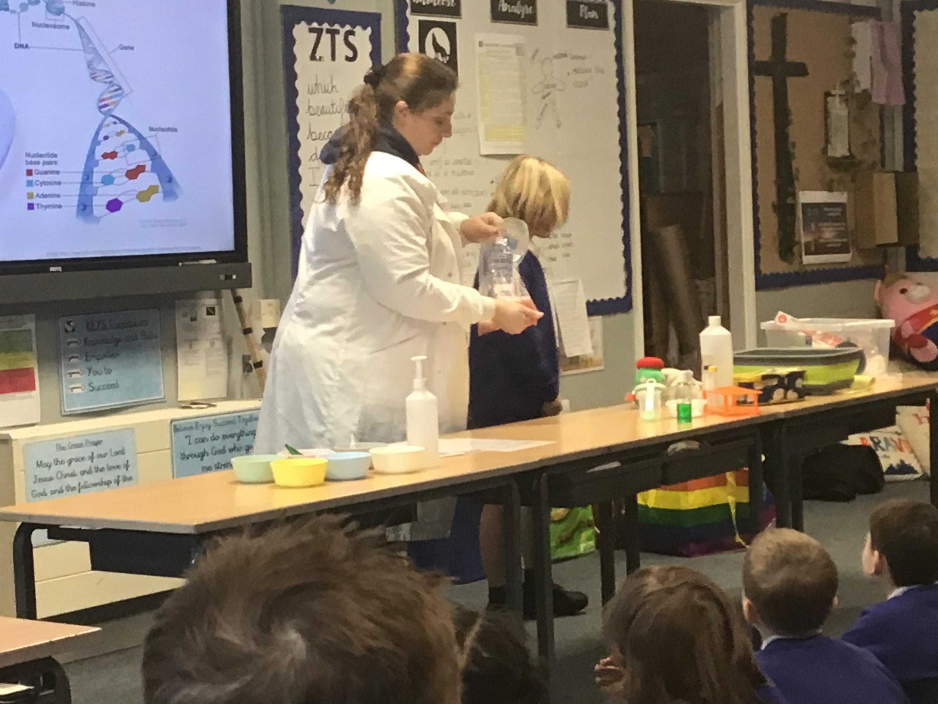 We had a visit from Dr Laura Randle who shared her knowledge of how medicines are made. Each child created a personalised medicine using their own traits.