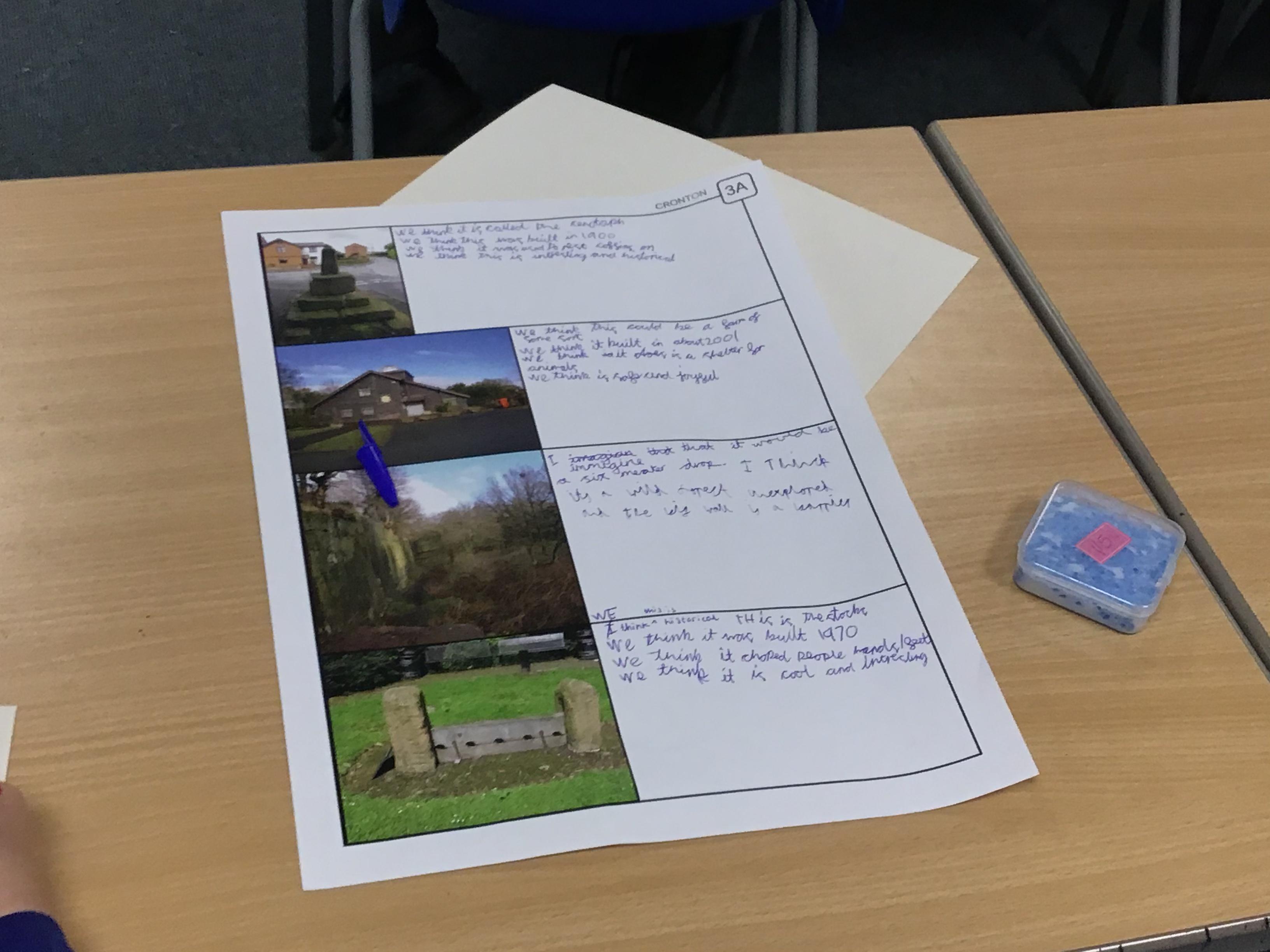We have completed our second part of our Knowsley art work. We looked at Cronton and the surrounding areas and described what was good about it.