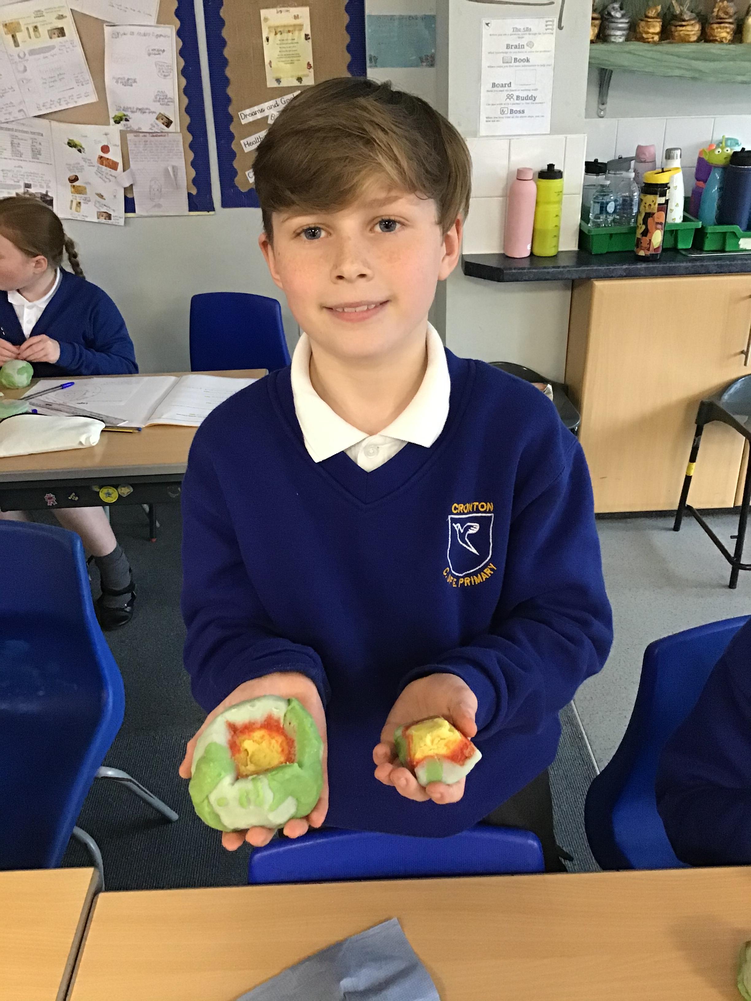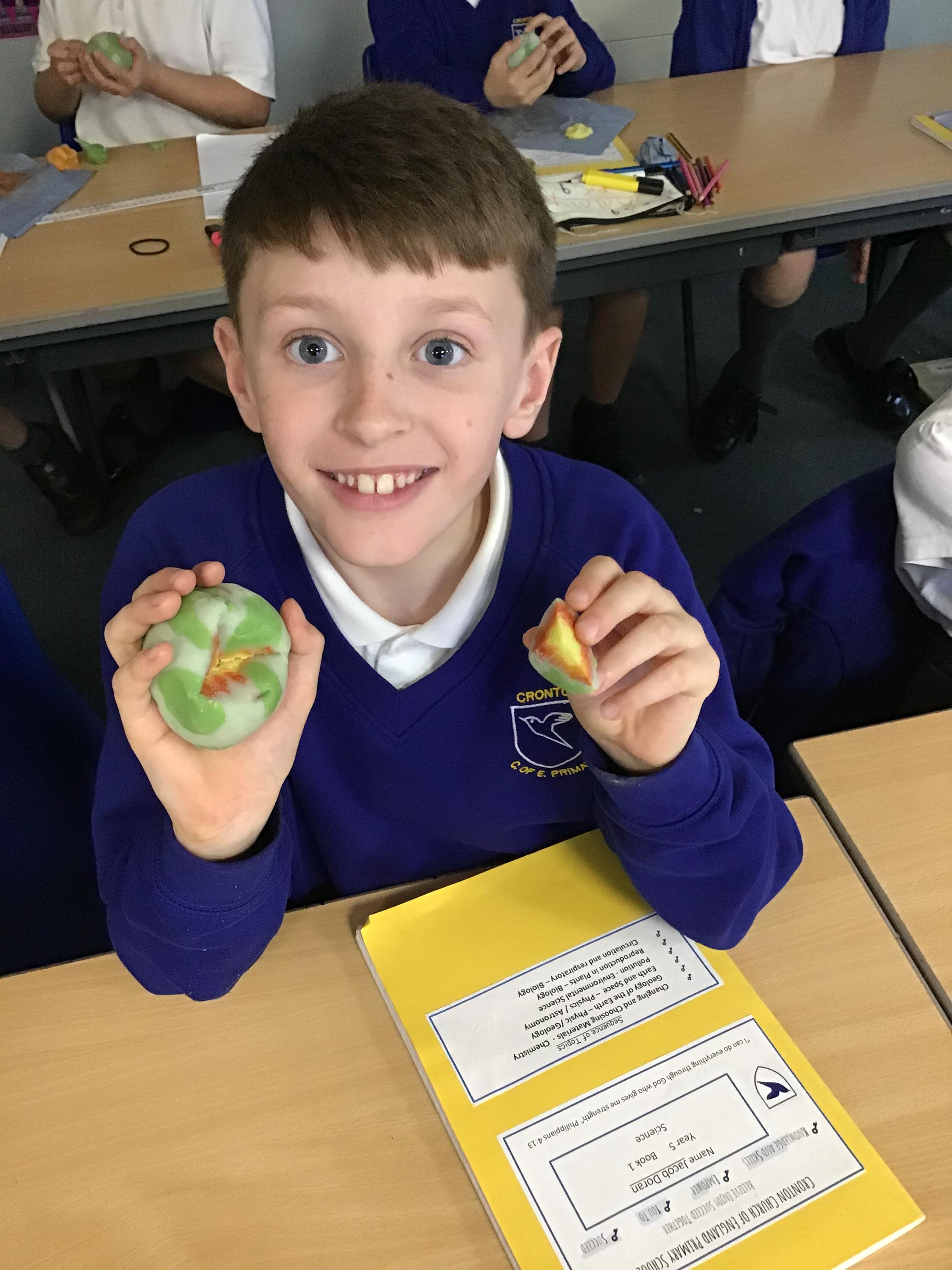 In science, we looked at the geology of the earth and the different layers that it is made of. The children got to make their own earth with playdoh and they did a fantastic job.