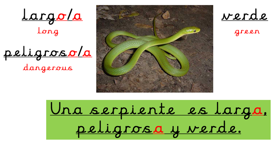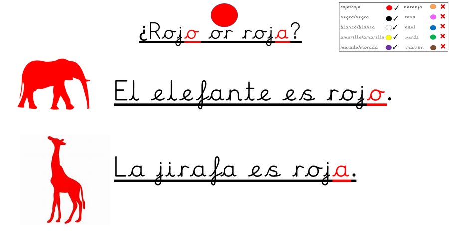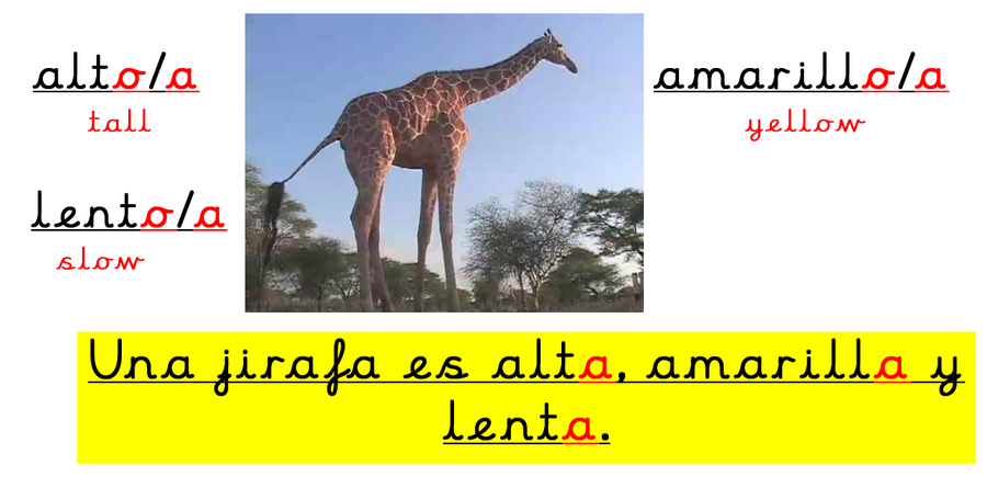 Then, we described each animal with a colour, making the colour (adjective) agrees with the noun.
