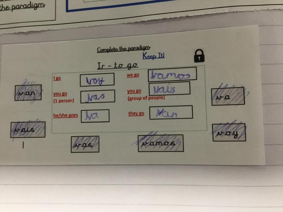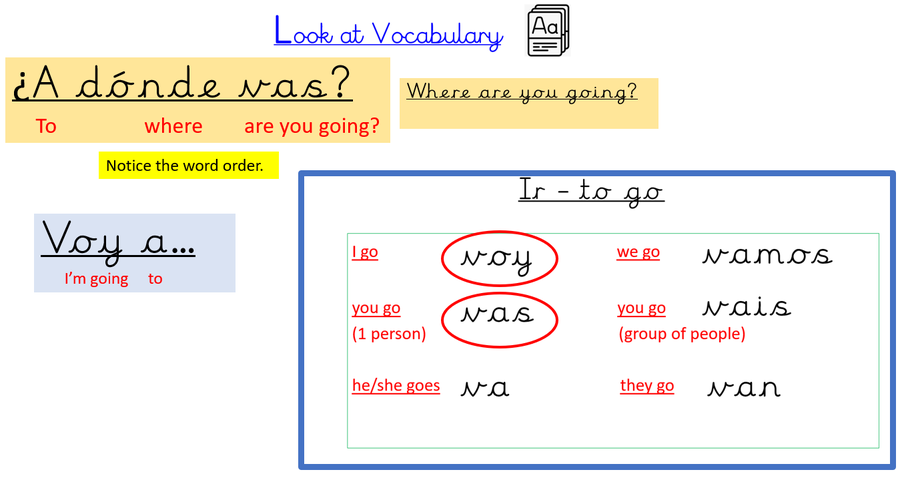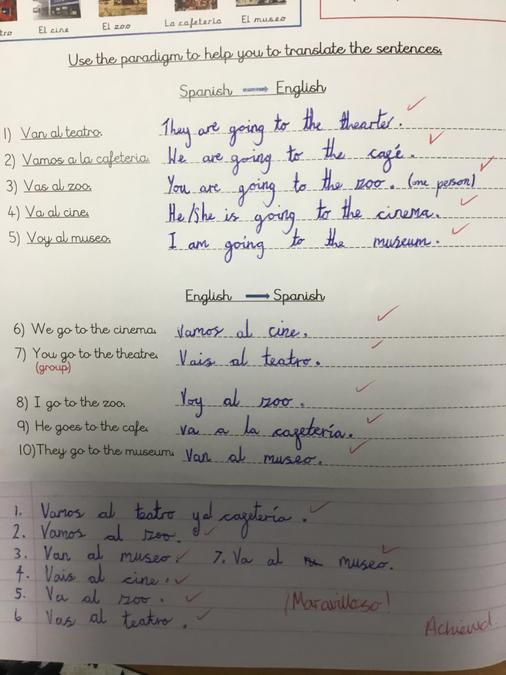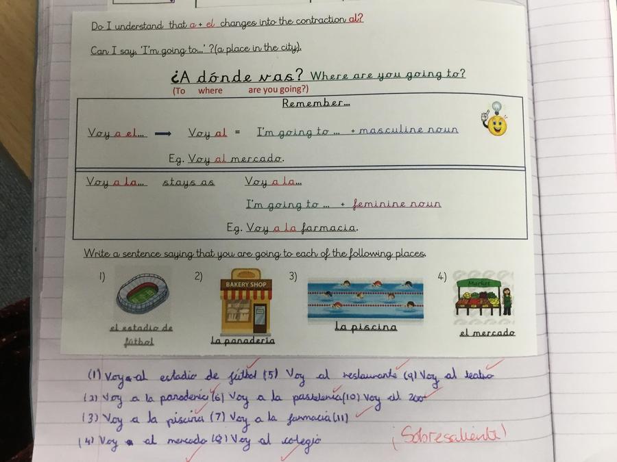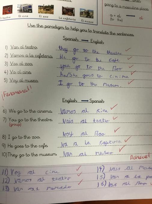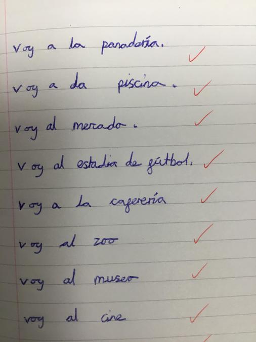 Today we looked at the whole pattern (paradigm) of the verb to go in Spanish, and practised making different sentences, using the places in the city that we know.