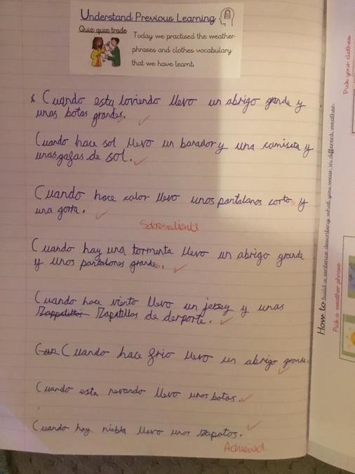 This week, we have been building sentences about the clothes we wear in different weather conditions. We used all the phrases we have learnt this half term.