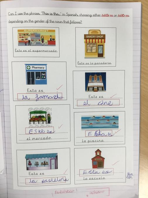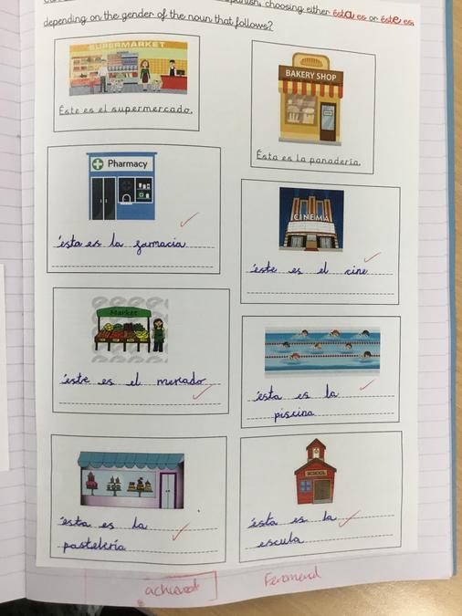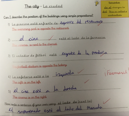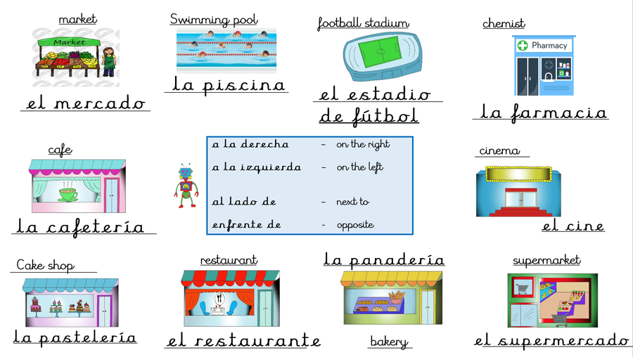 Today we have been learning how to describe position with prepositions in Spanish. We used a simple plan of the town to help us.