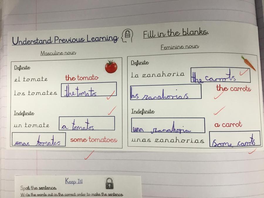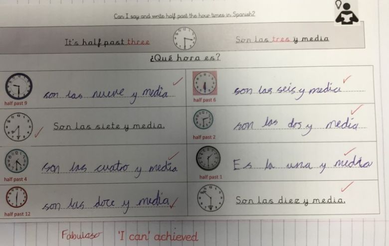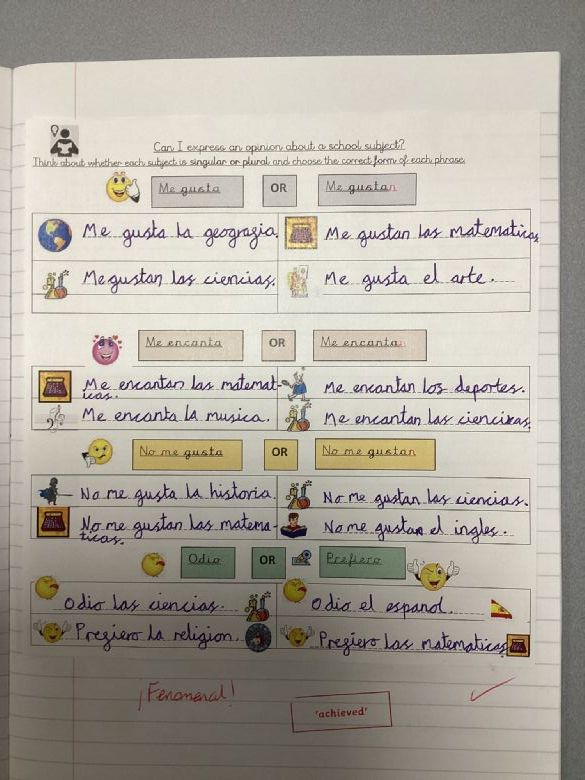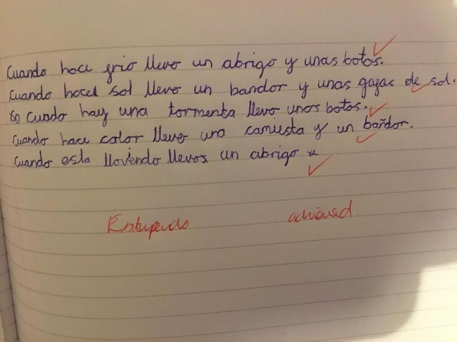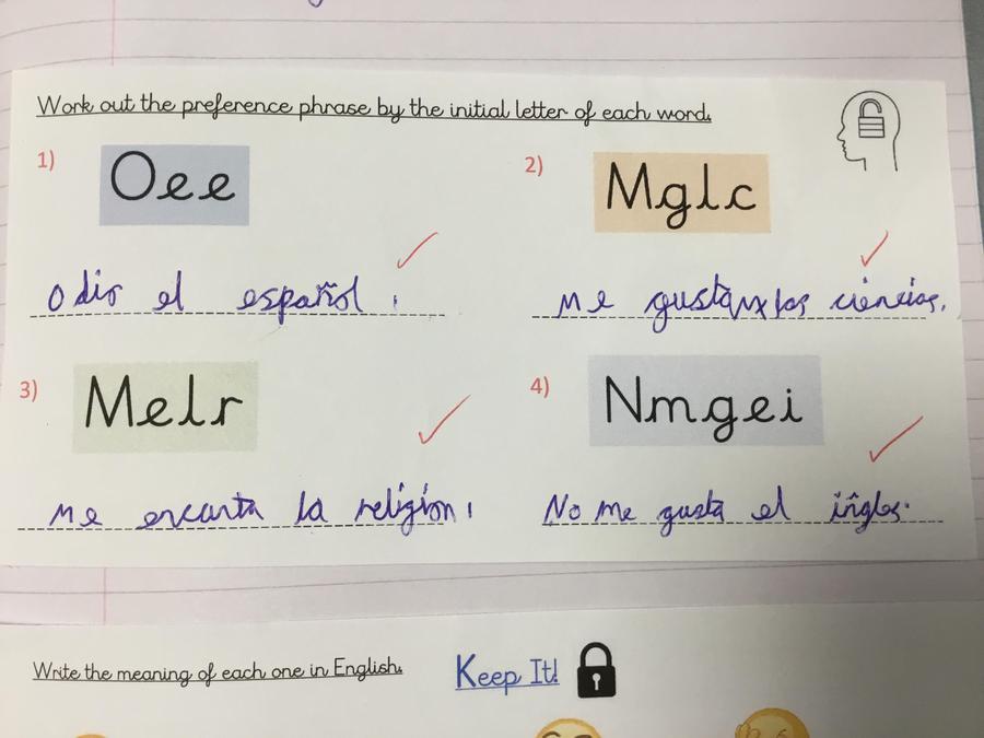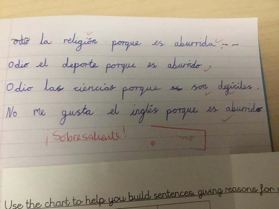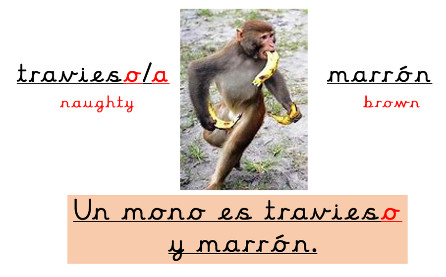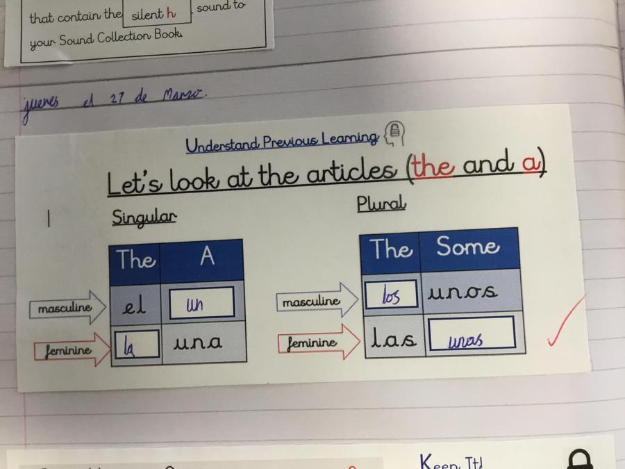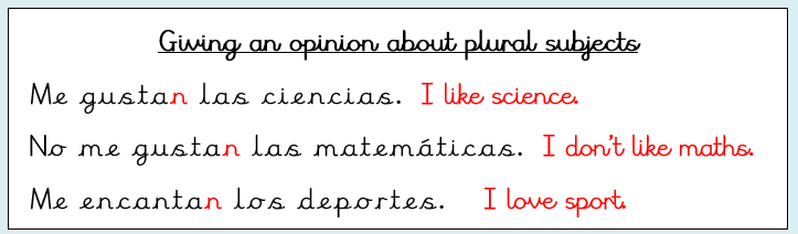 We also learnt some adjectives to describe the school subjects. In Spanish, the ends of the adjectives change to match the noun, depending on whether it is masculine, feminine or plural.