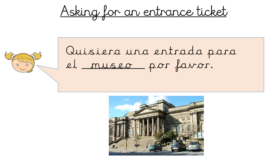 Today, we have been practising how to ask politely for an entrance ticket for different places.