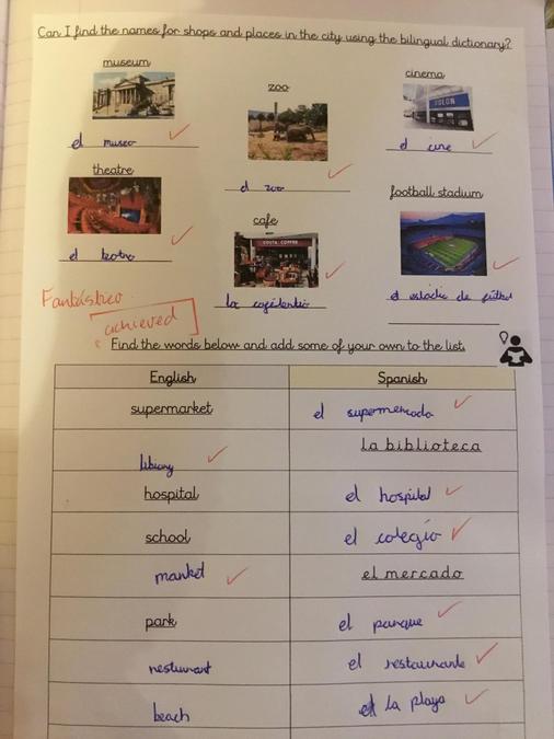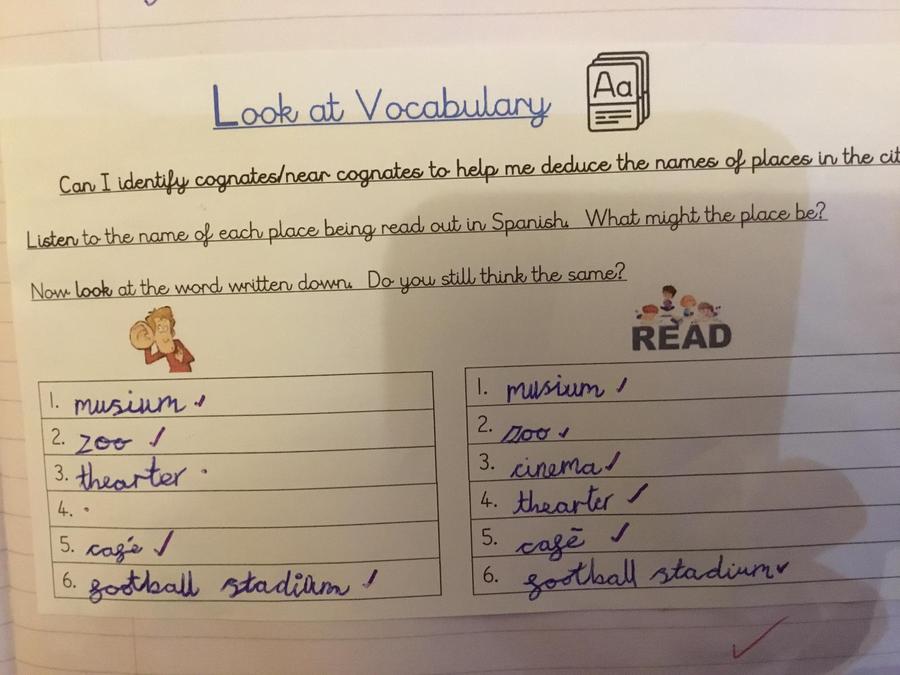 This week, we have started to learn the names of popular places to go and visit in the city. First of all we listened to the vocabulary to see if we could deduce its meaning. Then we looked at the words written down and discovered that a lot of the words are the same or similar to English words. We call these words cognates.
