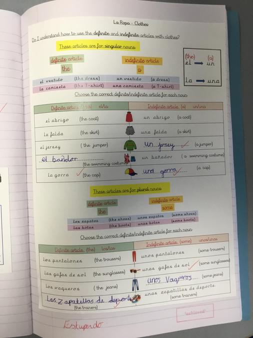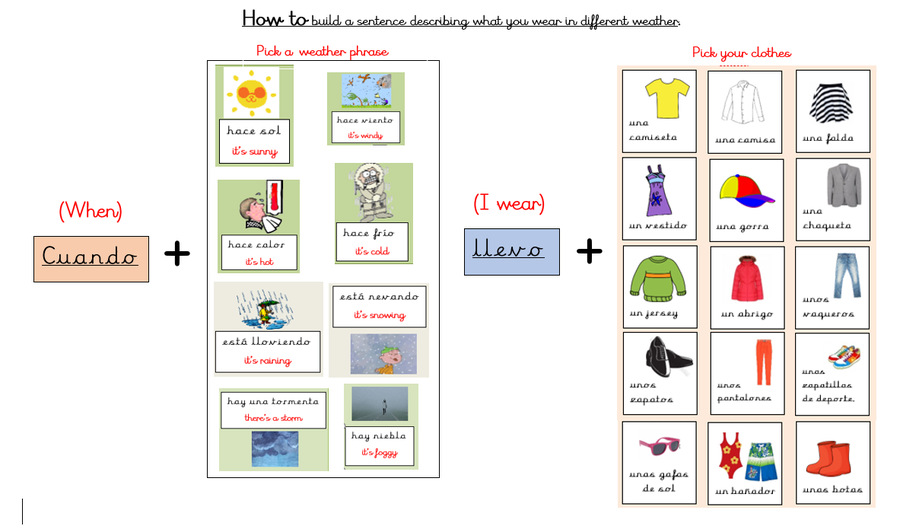 Today we started to learn the names of clothes, and practised using the different words used in Spanish for a and the.