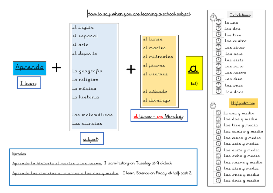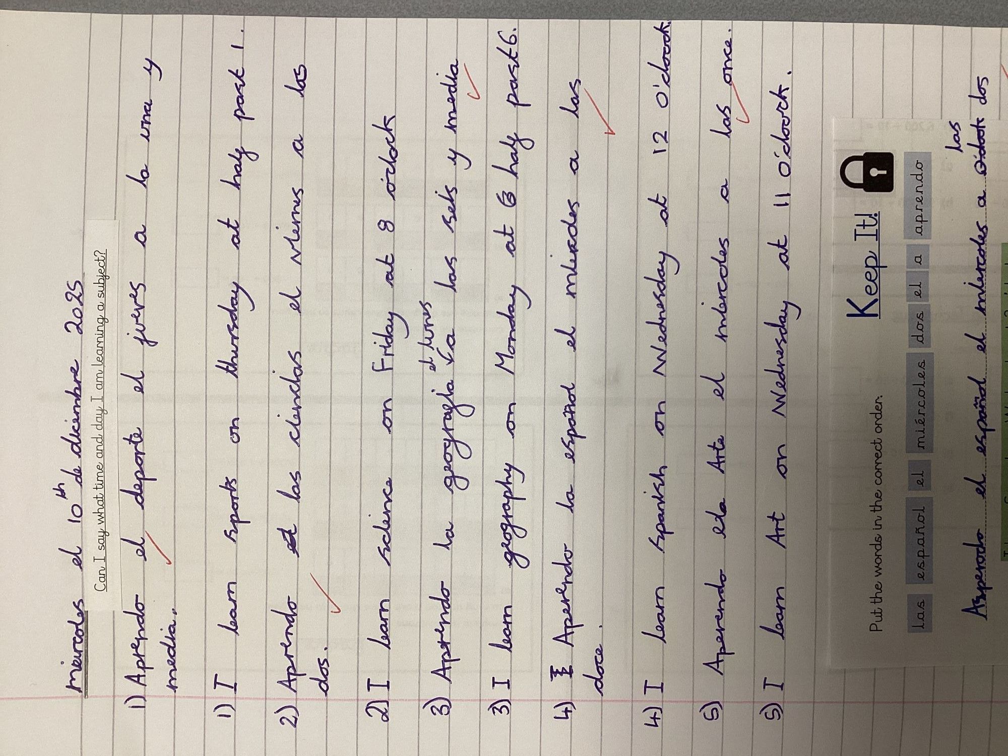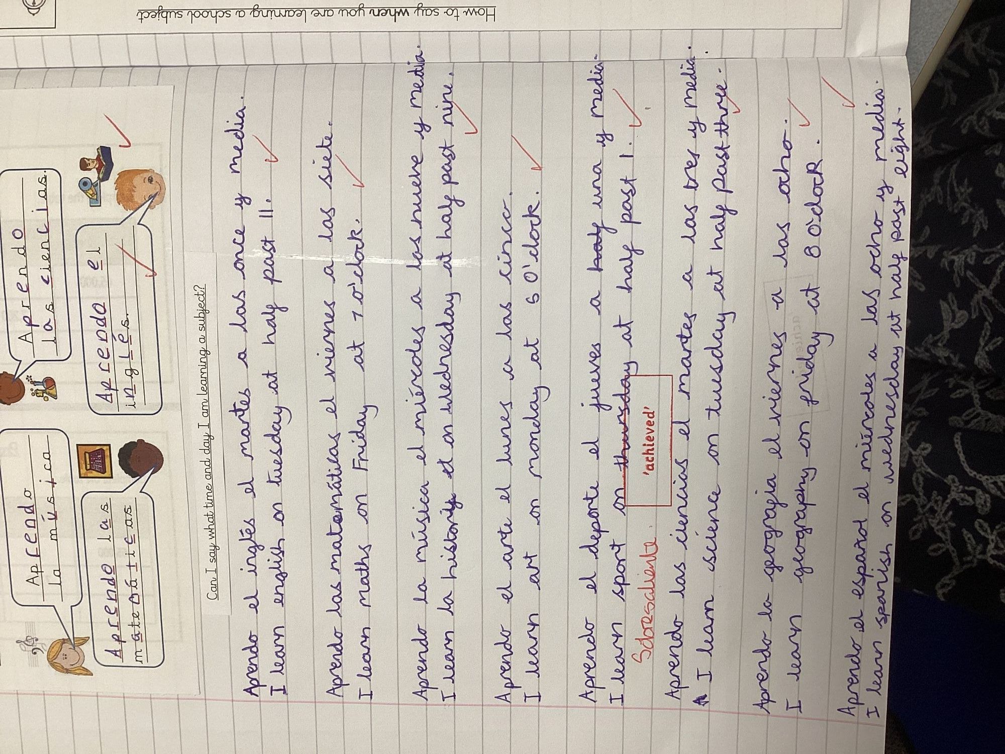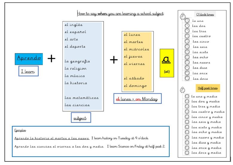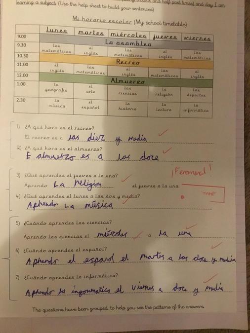 This week, we have been learning how to say when we have different lessons, using the day and the time. We used a sentence builder to help us.