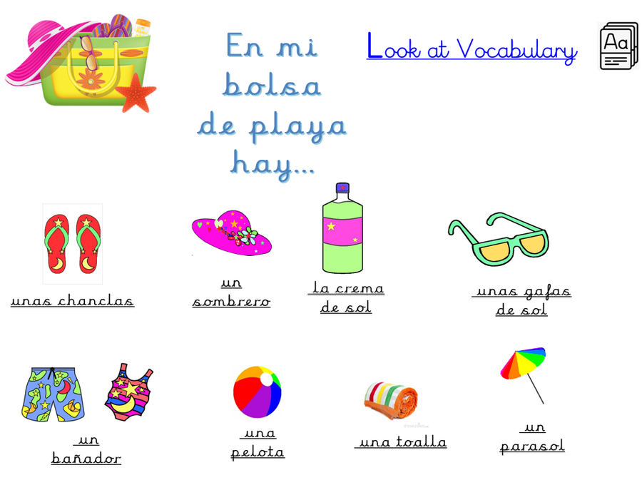 Today, we have been learning some beach vocabulary. We played the memory game En mi bolsa de playa hay...