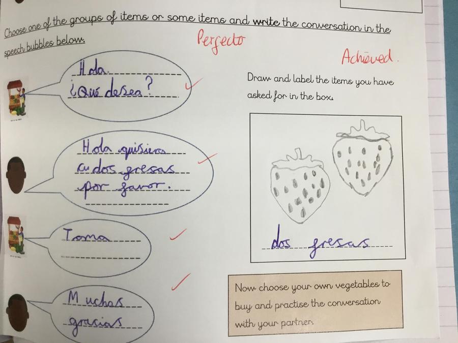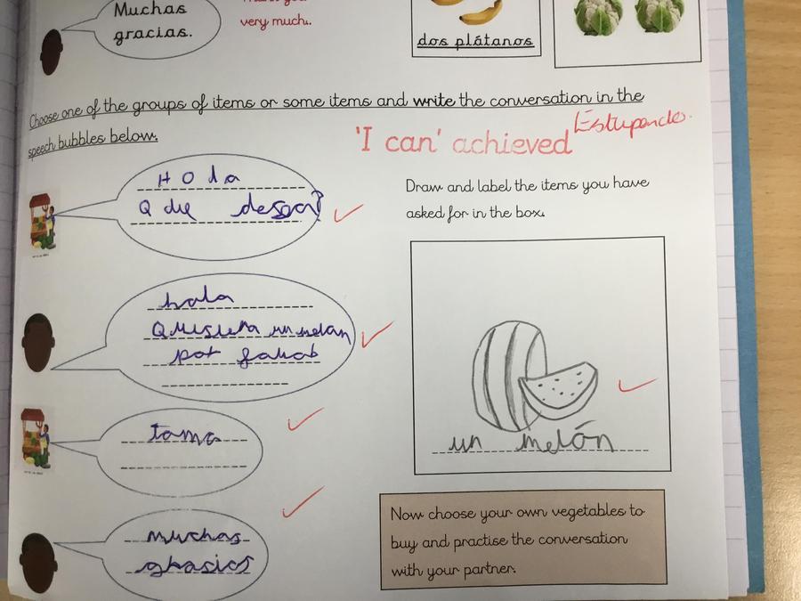 Then we practised conversations at the market, asking to buy fruit and vegetables politely.